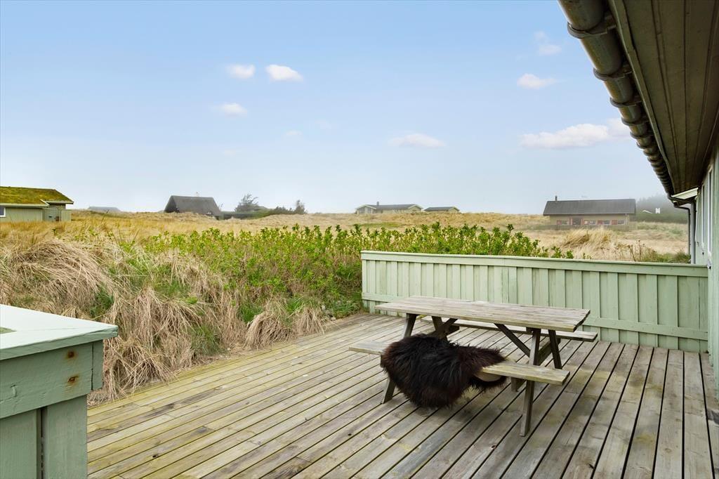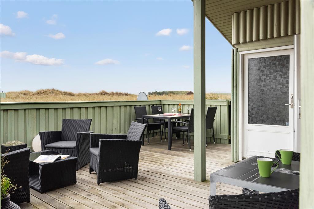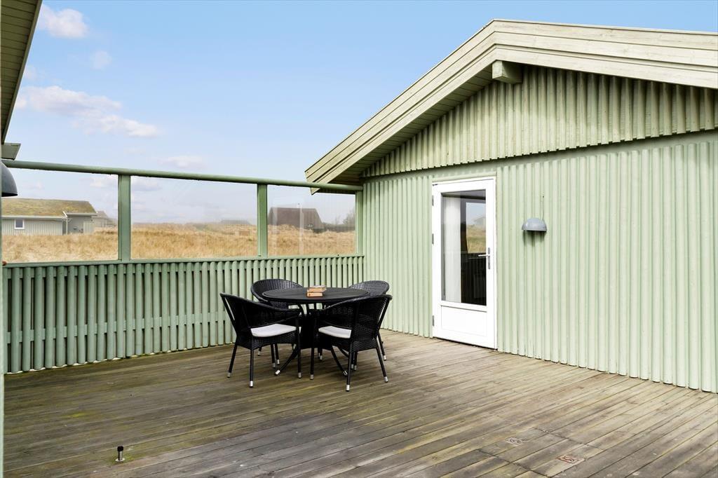 Vom Wohnzimmer aus hat man Zugang zu einer teilweise überdachten und geschlossenen Terrasse. Zwischen dem neuen Nebengebäude und dem Hauptgebäude wurde eine schöne Holzterrasse gebaut, die ebenfalls teilweise geschlossen ist. Hier kann man in Ruhe entspannen und den schönen Blick auf die beeindruckende Natur von Kettrup Bjerge genießen.