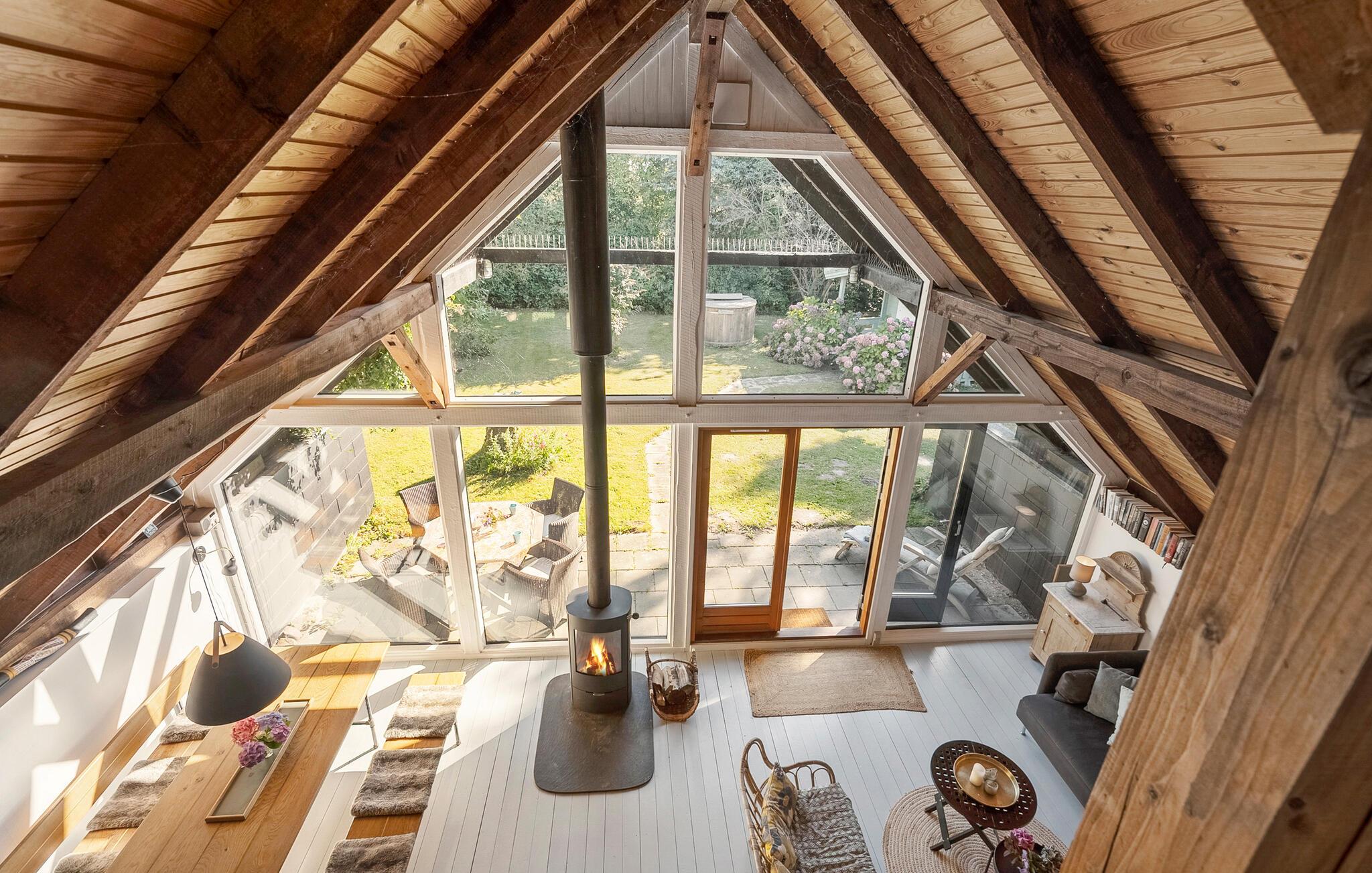 Entfliehen Sie dem Alltag in diesem charmanten Haus, das Entspannung und einen kurzweiligen Urlaub verspricht. Dank seiner großflächigen Fensterfronten sind die Innenräume hell und bieten schöne Ausblicke auf den Garten und von oben auch einen weiten Blick auf die Umgebung. Nehmen Sie nach dem Frühstück und der ersten Tasse Kaffee des Tages, die Sie in der offenen Küche zubereiten können, Platz in der Sitzgruppe und planen Sie Ihren Urlaubstag. Das Wohnzimmer mit einem einladenden Kaminofen verspricht wohlige Wärme an kühleren Tagen. Die behagliche Einrichtung schafft einen Raum, in dem Sie sich gleich wohl fühlen.
