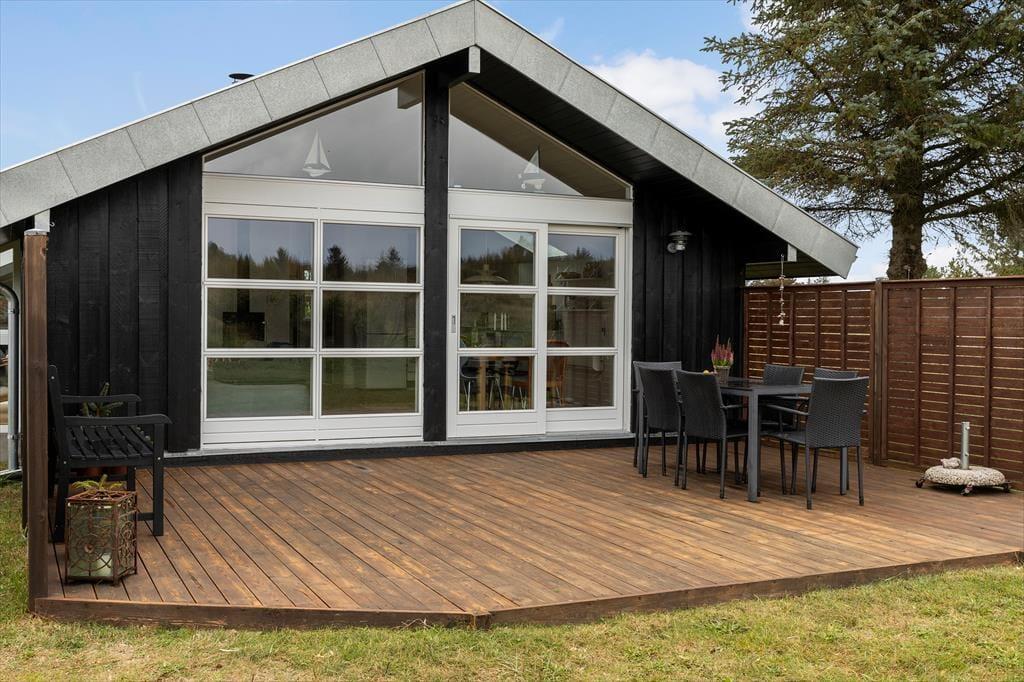Auf dem großen Naturgrundstück rund um das Haus gibt es viel Platz, um das Leben unter freiem Himmel zu genießen. Ein Teil des Grundstücks ist als Rasenfläche angelegt – ideal für Ballspiele, zum Toben oder einfach, um sich in der Sonnenliege zurückzulehnen und die Sonne zu genießen. Die schönen Terrassenbereiche laden dazu ein, den Lauf der Sonne den ganzen Tag über zu verfolgen – vom Morgenkaffee auf der einen Terrasse bis zum Abendessen auf der anderen, während die Abendsonne langsam hinter den Baumwipfeln verschwindet. Hier draußen spürst du die Ruhe einkehren und erlebst, wie nah du der Natur wirklich bist – vielleicht entdeckst du sogar ein Reh, das vorsichtig durch die grüne Landschaft streift.