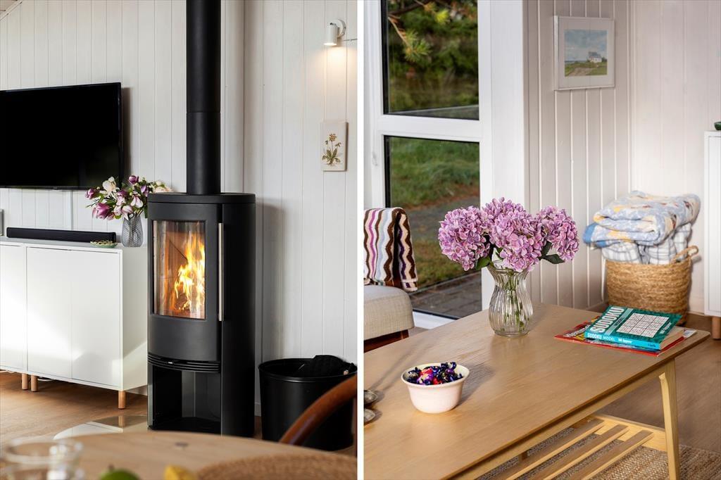 Beim Betreten des Hauses empfängt dich eine helle und einladende Atmosphäre. Die hohen Decken und die großen Fensterfronten lassen die Räume offen und luftig wirken, während die Natur draußen eine wunderschöne Kulisse für deine Urlaubstage bildet. Hier kannst du die Schultern fallen lassen, ein gutes Buch aufschlagen oder einfach die Stille genießen – nur unterbrochen vom Vogelgezwitscher und dem Rascheln des Windes in den Baumwipfeln. Der Holzofen ist der natürliche Mittelpunkt des Hauses – besonders an kühleren Tagen, wenn das Knistern der Flammen und die wohlige Wärme die ganz besondere Ferienhausstimmung verbreiten, die man nur an der Nordsee findet. Die Einrichtung ist schlicht und funktional, mit Fokus auf Komfort und ein allergikerfreundliches Raumklima, das Entspannung leicht macht.