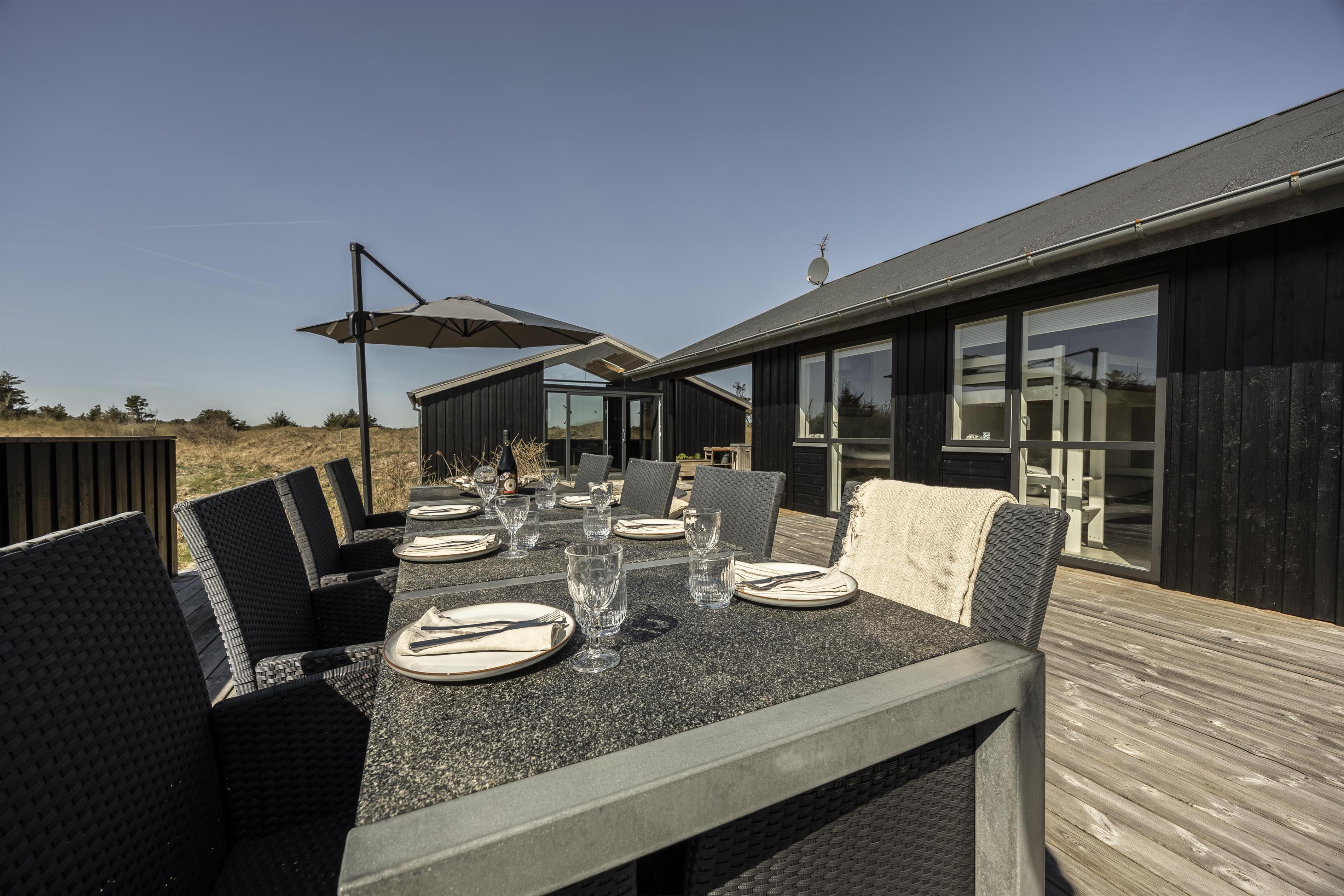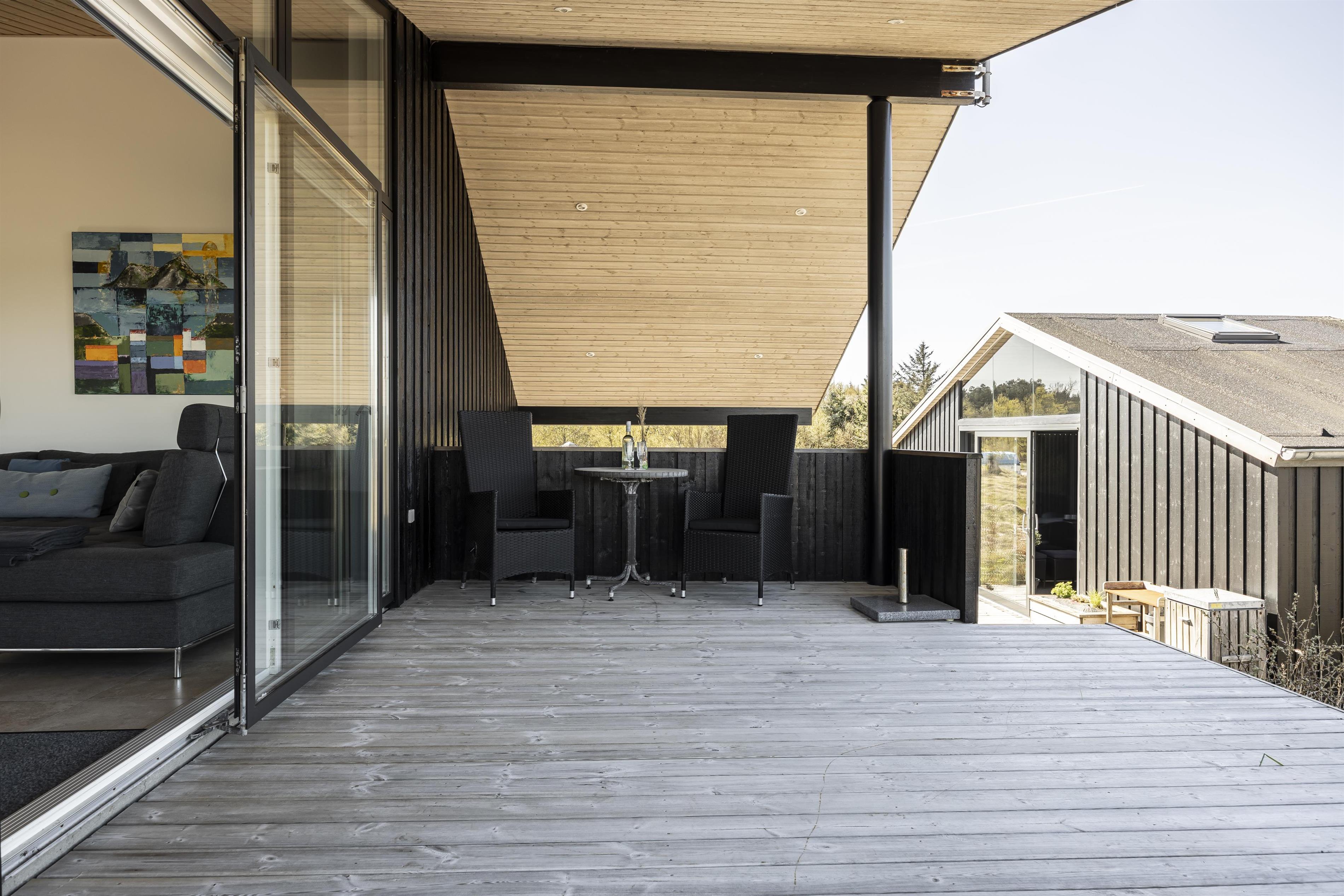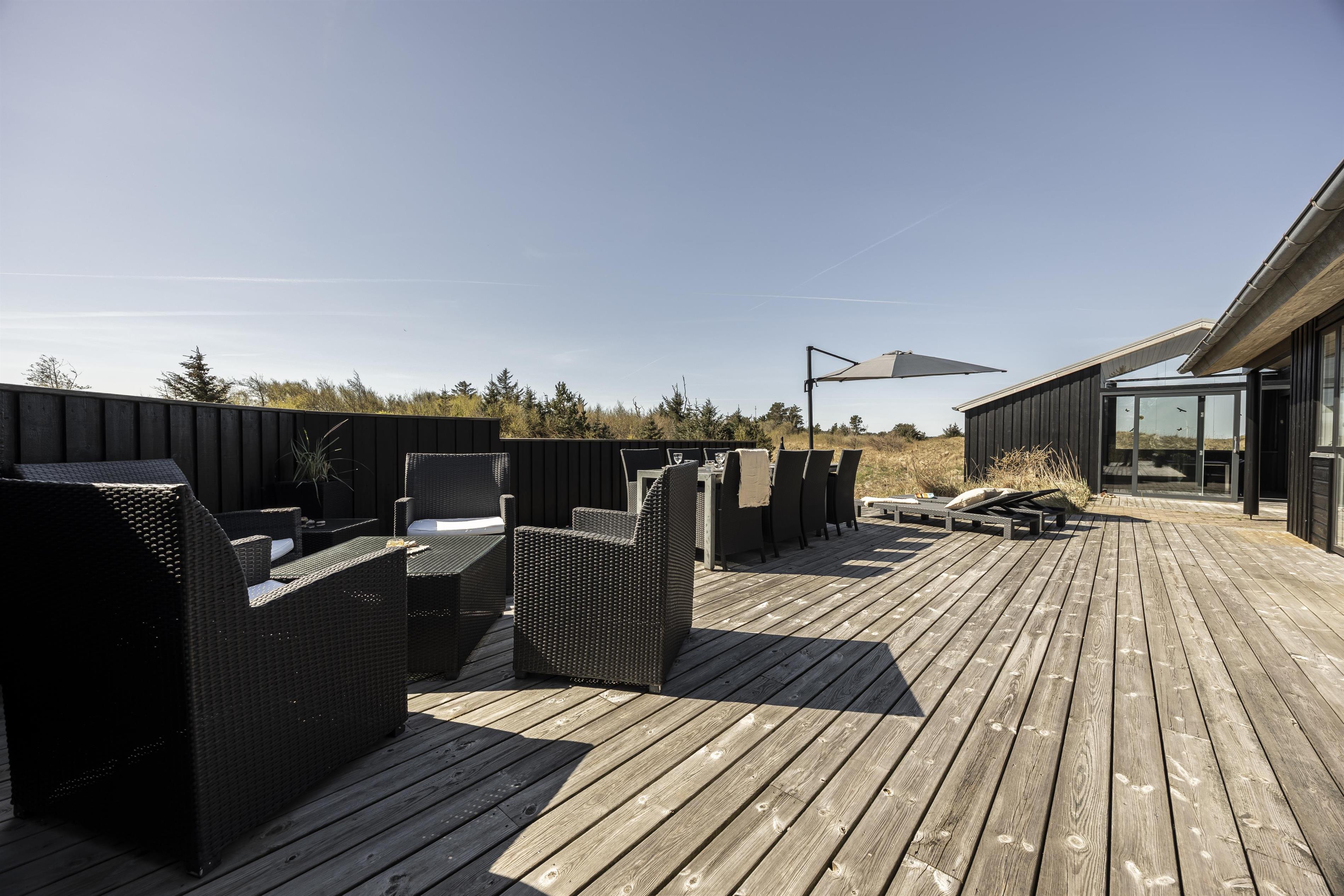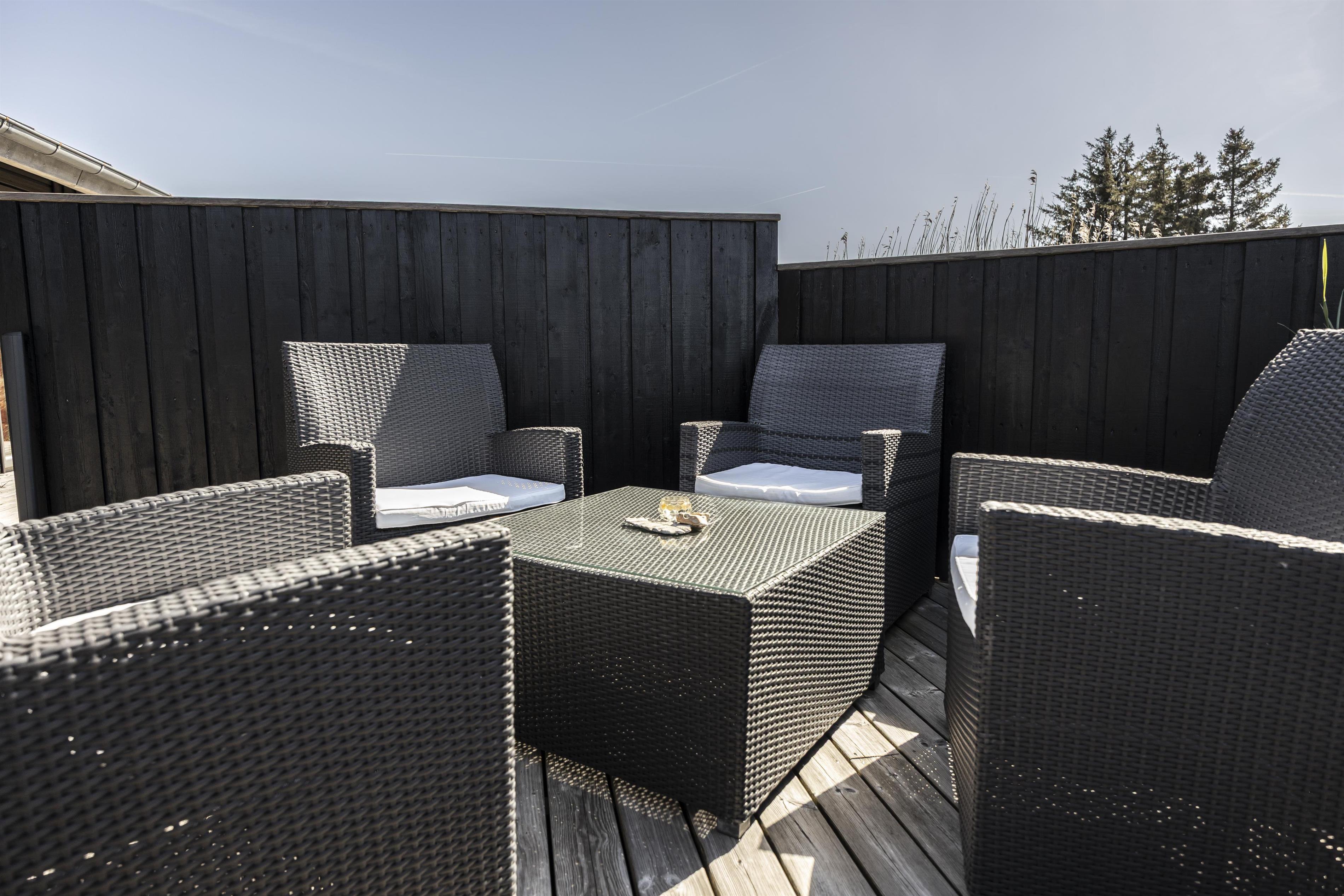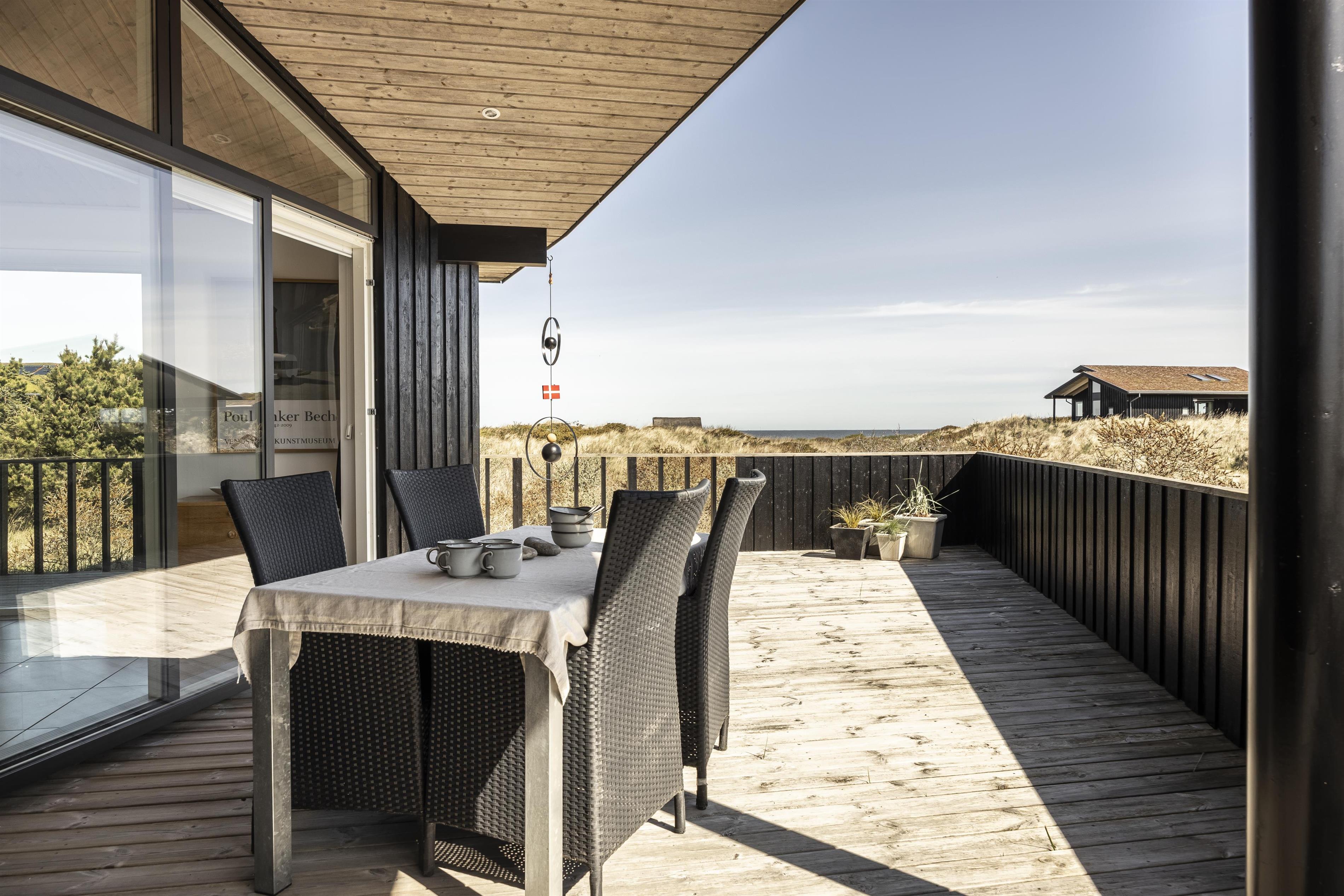 This holiday home offers not only high-quality interiors but also a fantastic outdoor space with multiple terraces surrounding the house. You can follow the sun throughout the day, enjoy the fresh sea breeze, or find shelter from the occasionally strong west coast winds. The front terrace is the perfect spot to enjoy your morning coffee while taking in the breathtaking sea view. Later in the day, the spacious terrace on the other side of the house provides ample room for the whole family to relax and dine together.