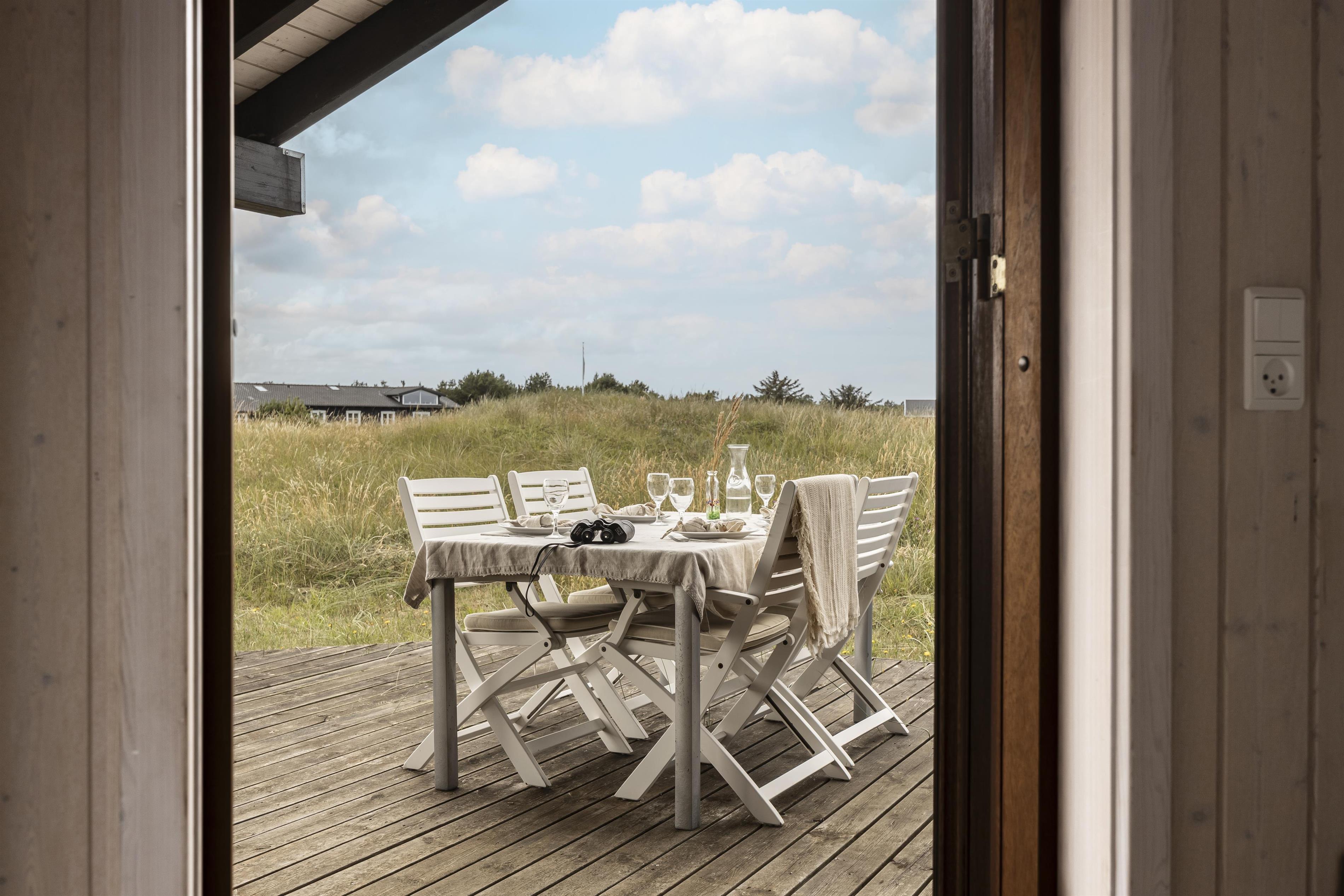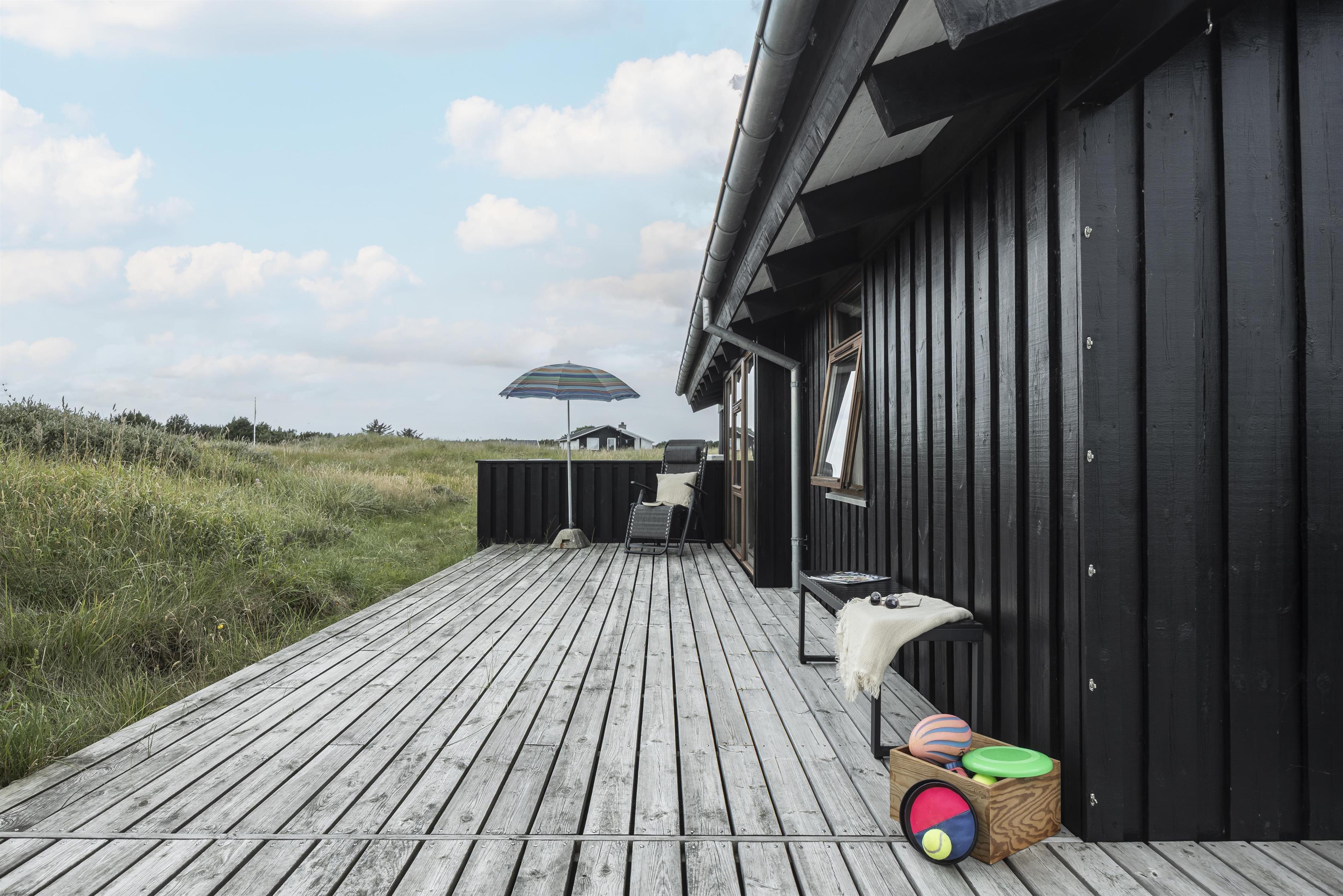 The outdoor facilities are just as appealing as the interior. The holiday home features lovely terraces on both sides of the house, ensuring you can always find either sunshine or shelter – or simply enjoy a quiet moment with a coffee and a good book. The covered terrace offers extra comfort regardless of the weather, and here you can sit in privacy with a view of the surrounding dunes. With only 125 metres to the beach, you can hear the sound of the waves and take evening walks to the top of the dunes to witness the sun setting over the North Sea.