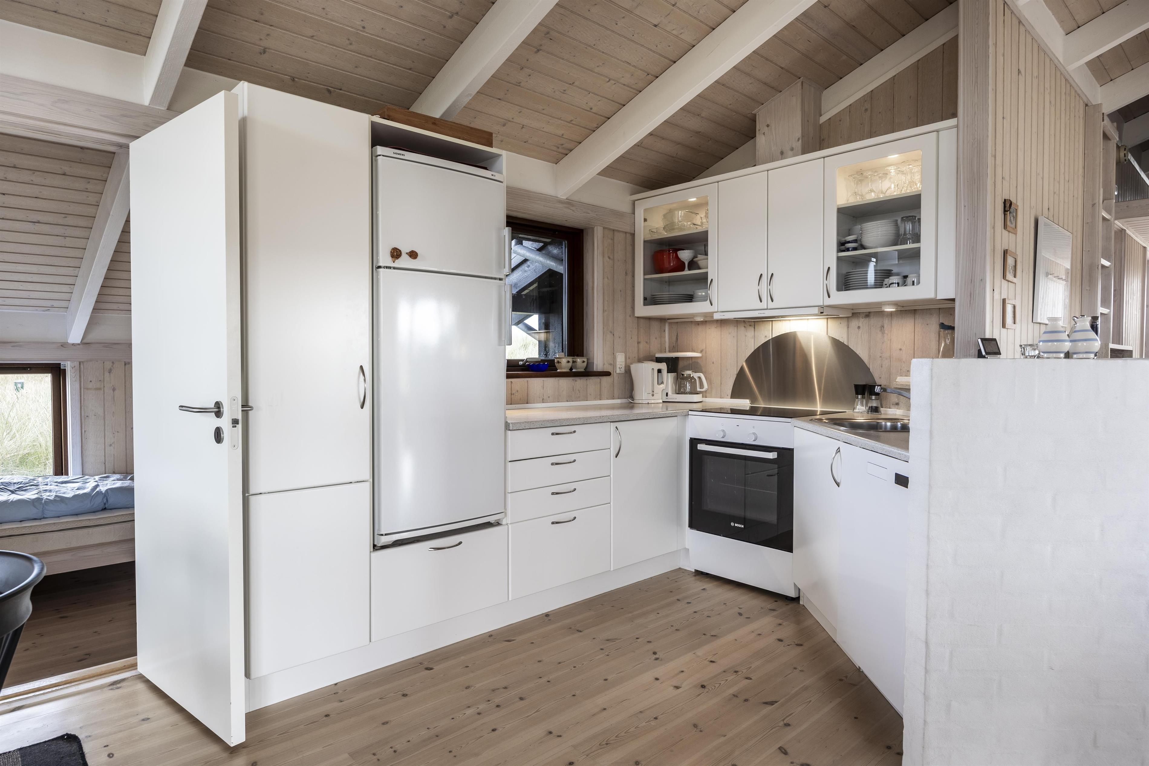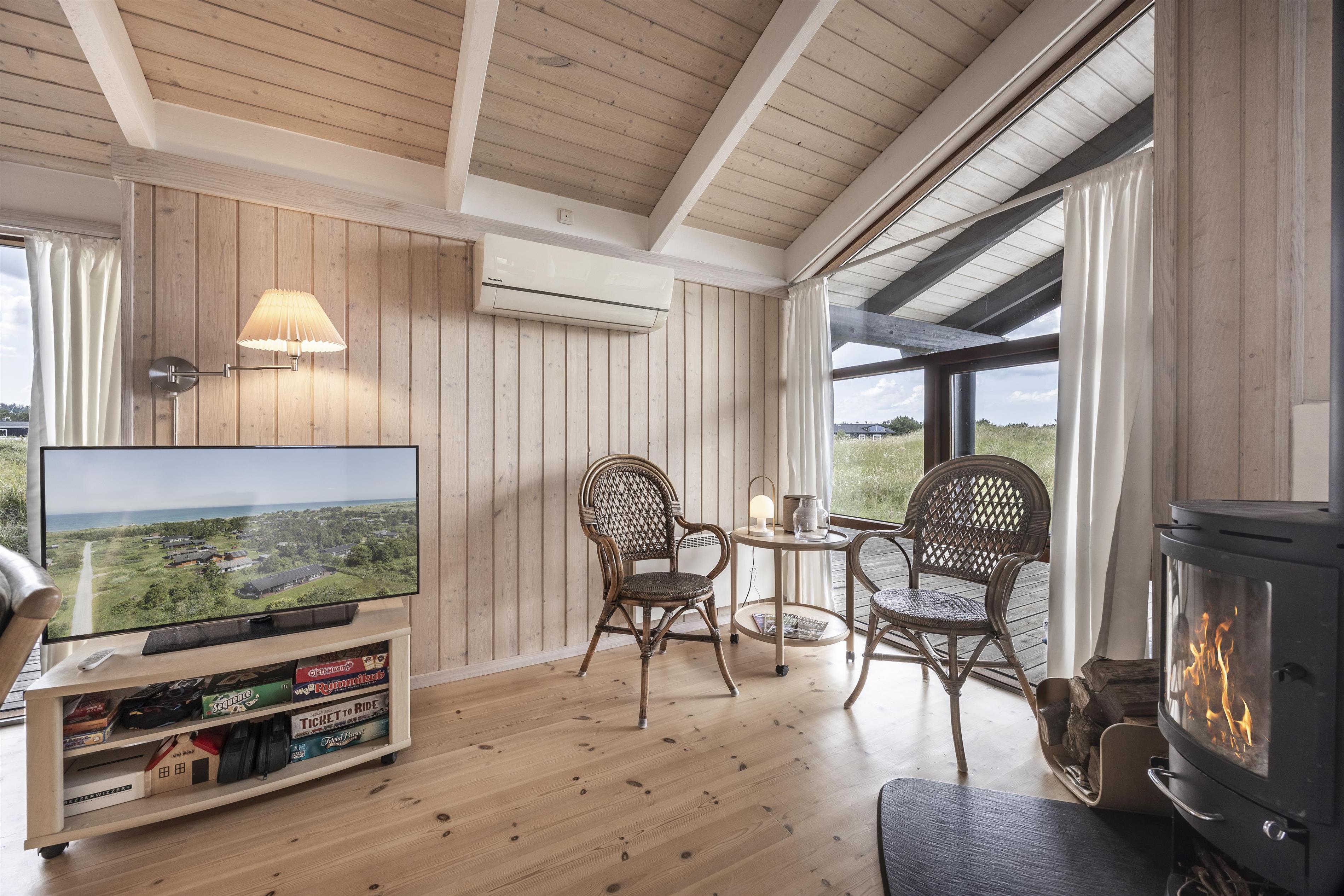 Welcome to an inviting and well-maintained holiday home on the west coast of Denmark, ideal for families or groups of friends seeking peace and quality time close to nature. The house accommodates up to 8 guests and is thoughtfully furnished with a focus on comfort and functionality. In the living room, a wood-burning stove creates a warm and relaxing atmosphere – perfect for cooler evenings. The open-plan living area features comfortable seating and is connected to a fully equipped kitchen with everything you need for a convenient and enjoyable stay. Large windows let in the beautiful North Jutland light and enhance the sense of being close to nature – all year round.