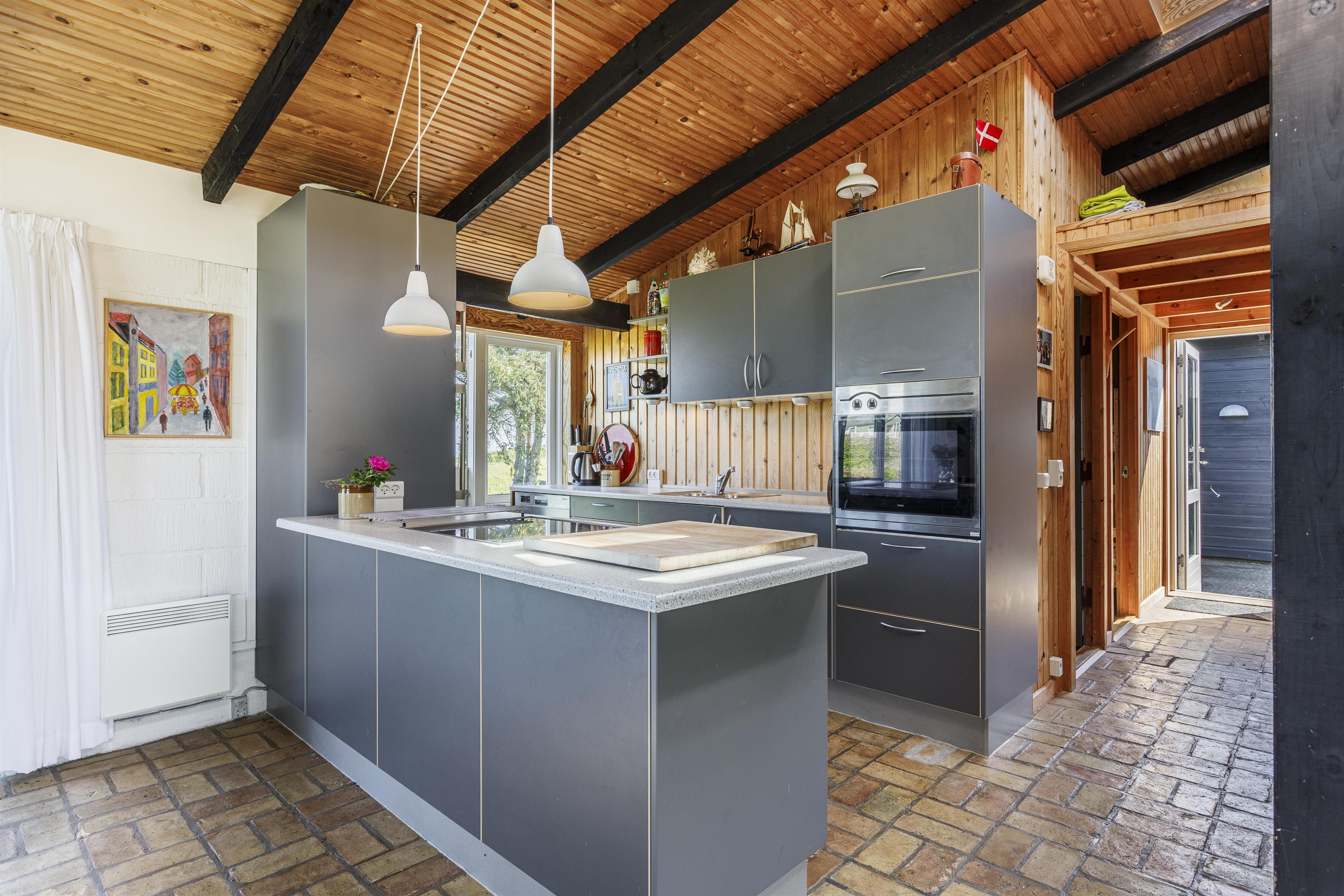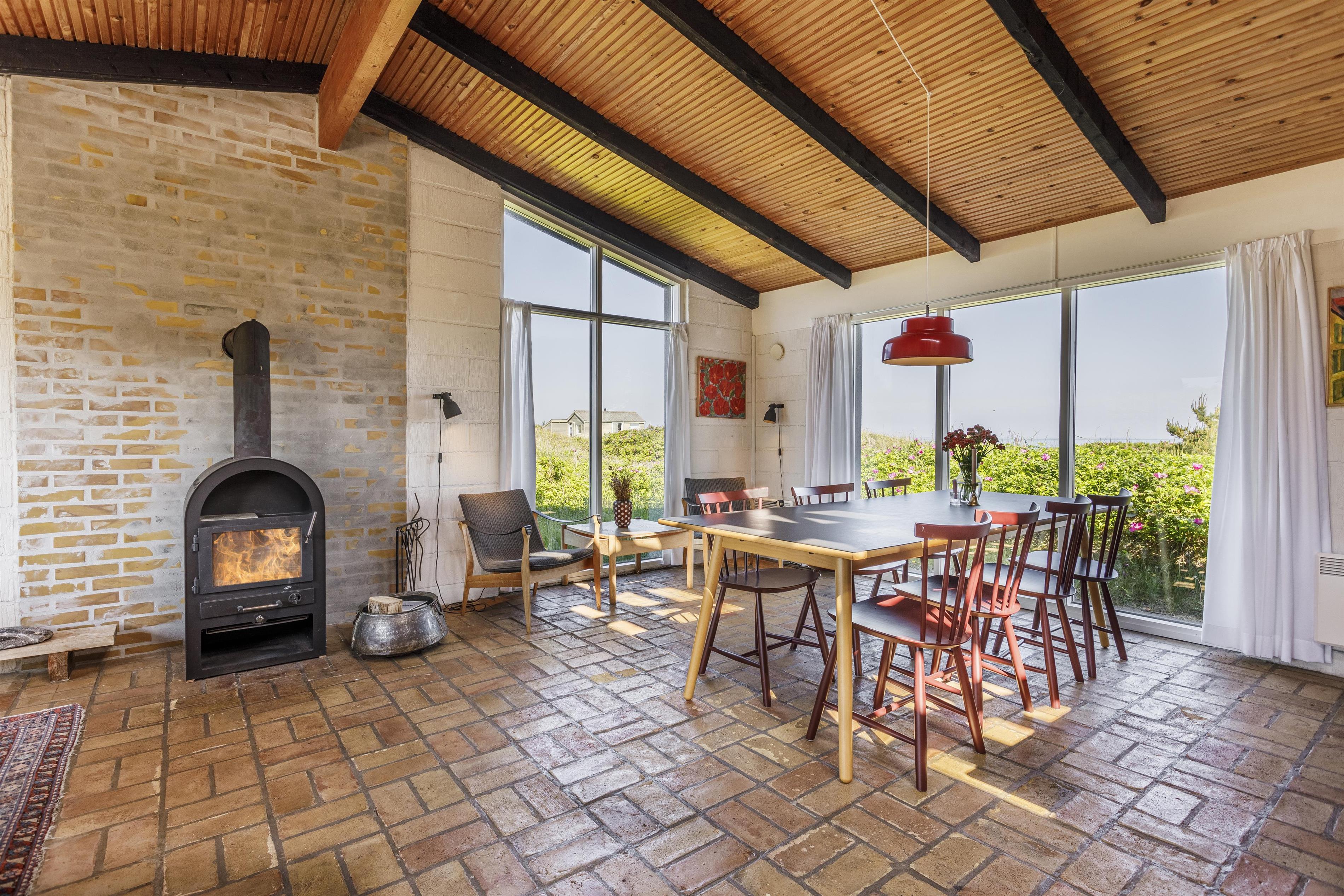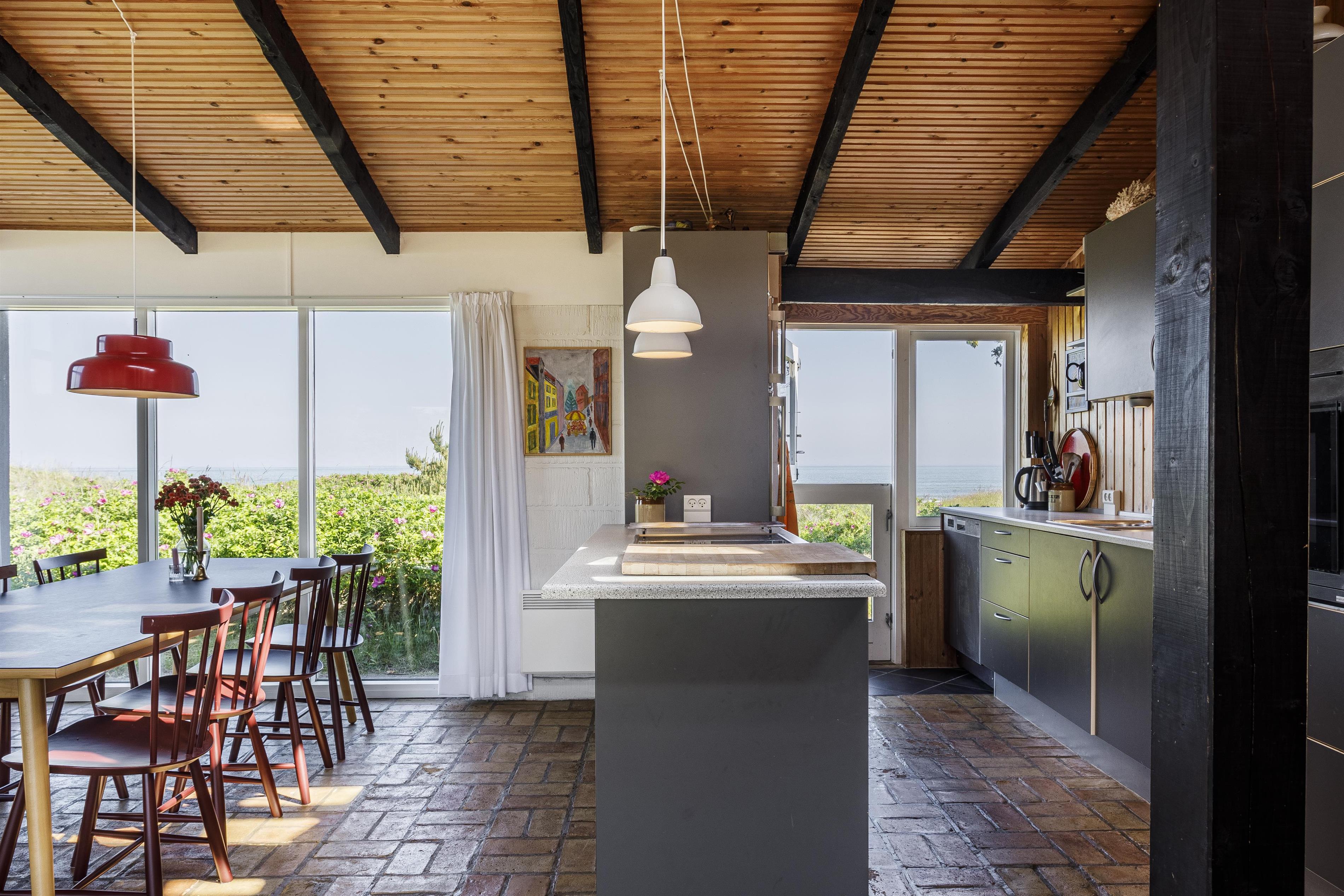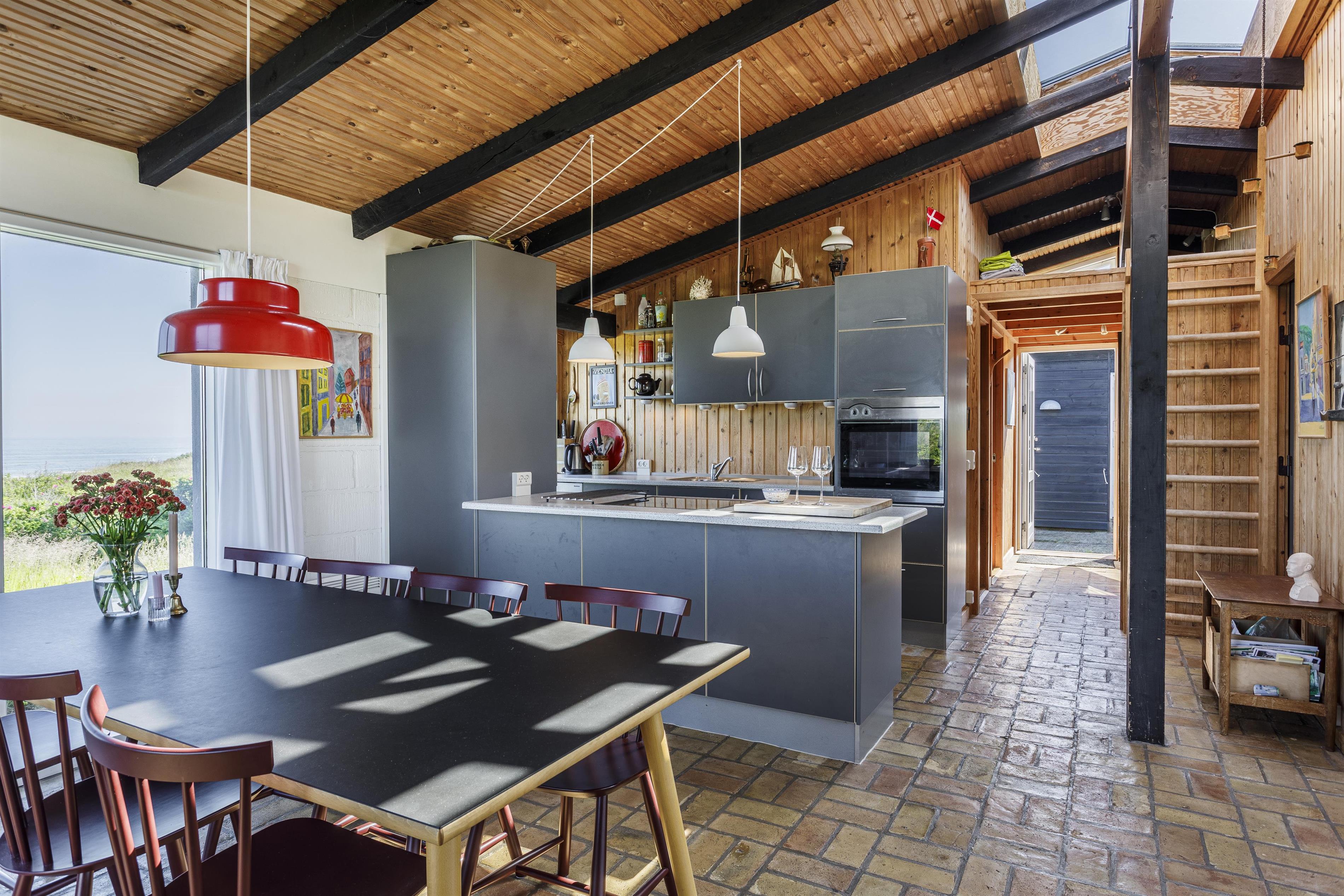 This charming holiday home is designed with a focus on coziness and functionality. The house features three practical bedrooms, a bathroom, and a living area with an open kitchen. Large windows bring in natural light, and from several rooms, you can enjoy sea views. The wood-burning stove in the living room creates a warm atmosphere on cool evenings, while the spacious kitchen and dining area invite communal cooking and togetherness. The living room offers plenty of space for everyone – perfect for family games while reflecting on the day's adventures. This home provides everything needed for a successful vacation. Additionally, the annex adds extra flexibility with additional sleeping options, making it ideal for larger families.