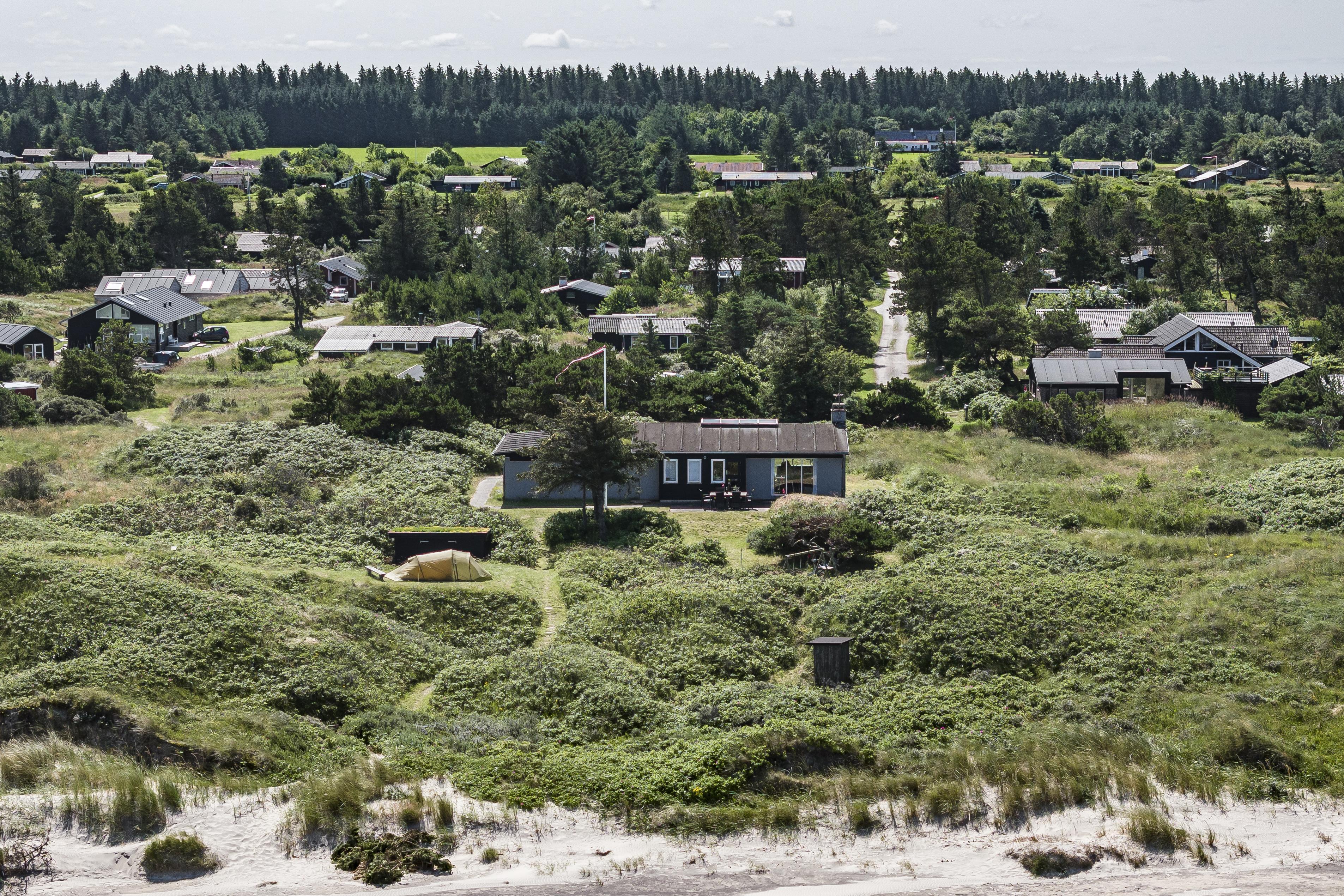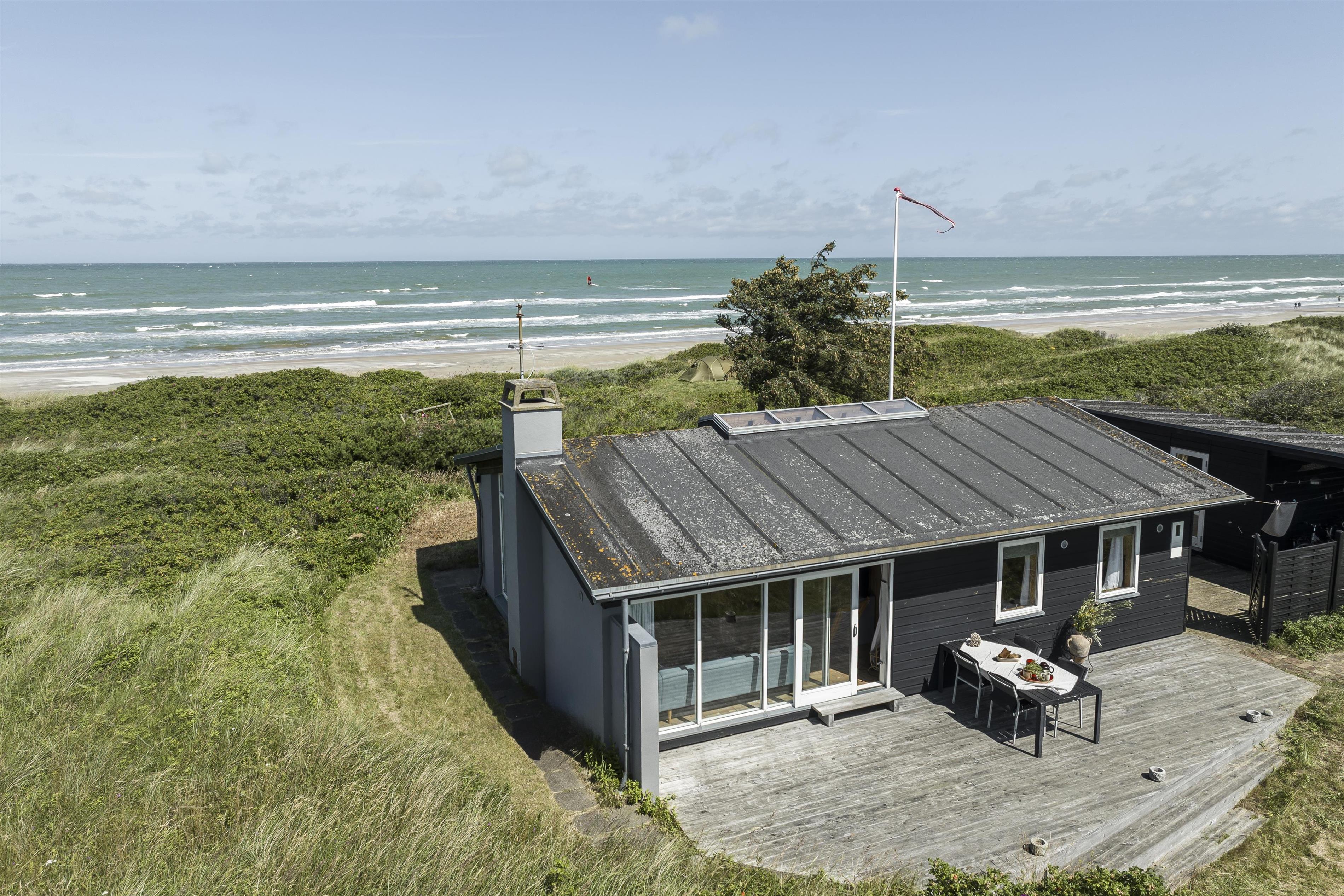 The summer house is surrounded by beautiful nature in Kjul, with breathtaking sea views from most of the house. Outside, you’ll find multiple terraces and a cozy courtyard where you can enjoy the sun all day, depending on the wind and weather. From the property, there’s direct access to the beach via a path – perfect for a morning jog or a refreshing swim in the sea. Experience a summer evening on the terrace with the sunset over the North Sea as your backdrop – an unforgettable moment.