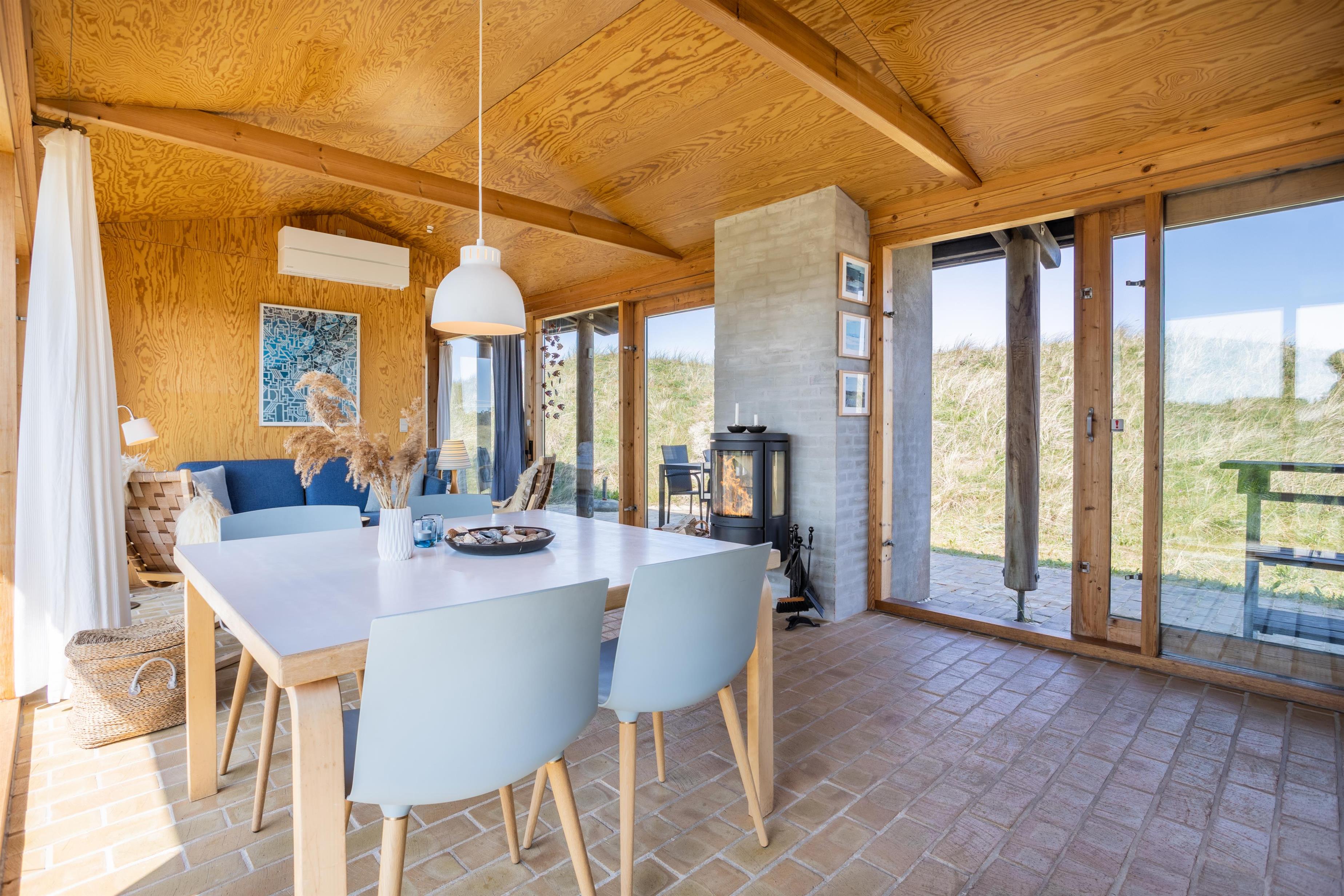 Experience ultimate relaxation in this charming holiday home, situated just 75 meters from the crashing waves of the North Sea. Here, comfort meets nature in an architect-designed summer house, where terraces and large windows bring the beauty of the outdoors up close. Nestled in the rolling dune landscape of Kjul on a large and secluded natural plot, this unique home is the perfect base for a delightful vacation in North Jutland.