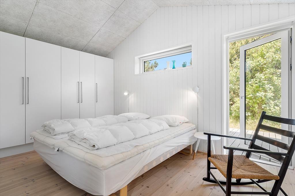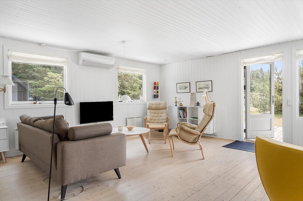 Wenn Sie den Tag nicht am Strand, am Fjord oder in den Dünen verbringen, können Sie sich wunderbar zu Hause im 80 m² großen Haus entspannen. Die Aufteilung ist für sechs Personen geeignet, da drei Schlafzimmer, ein Duschbad und ein schönes Wohnzimmer vorhanden sind. In der Küche haben Sie gute Arbeitsbedingungen, wenn Sie Brunch zubereiten oder das Abendessen zubereiten möchten, und da die Küche ein fester Bestandteil des Wohnzimmers ist, müssen Sie auch bei den Töpfen nicht auf den Urlaubsspaß verzichten. An kühlen Tagen können Sie den Holzofen anzünden und die Wärmepumpe nutzen, damit es warm und angenehm ist, wenn Sie es sich auf dem Sofa gemütlich machen oder am Esstisch Karten spielen