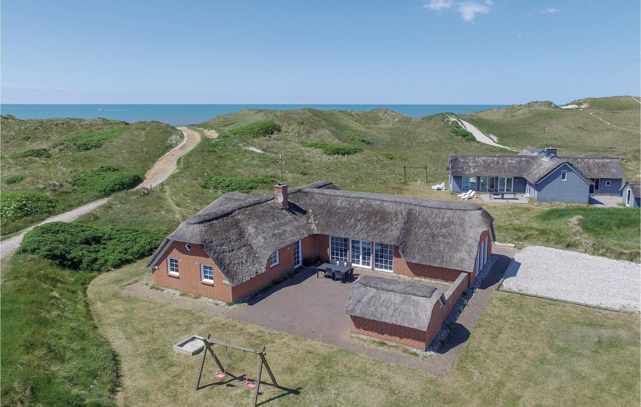 Dieses schöne Ferienhaus mit romantischem Schilfdach liegt auf einem der attraktivsten Grundstücke in Klegod, in der ersten Dünenreihe, nur 50 Meter vom Meer entfernt. Das Haus ist aus besten Materialen gebaut und bietet modernsten Komfort. Gleichzeitig ist es funktionell eingerichtet, unter anderem mit zwei Badezimmern mit Bodenheizung, und ist somit auch für mehrere Familien ideal geeignet. Am Ferienhaus liegt eine große, fliesenbelegte Terrasse mit windgeschützten Ecken. Nach einem schönen Strandspaziergang empfehlen wir Entspannung im Poolraum mit dem Whirlpool für sechs Personen, eine angenehmen Sauna sowie im einladenden Swimmingpool mit Gegenstromanlage, etwas für sportlich aktive.
