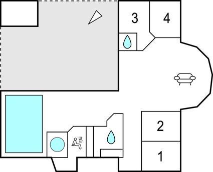 Badezimmer (nr. 1) - WC. Warmes und kaltes Wasser. Dusche