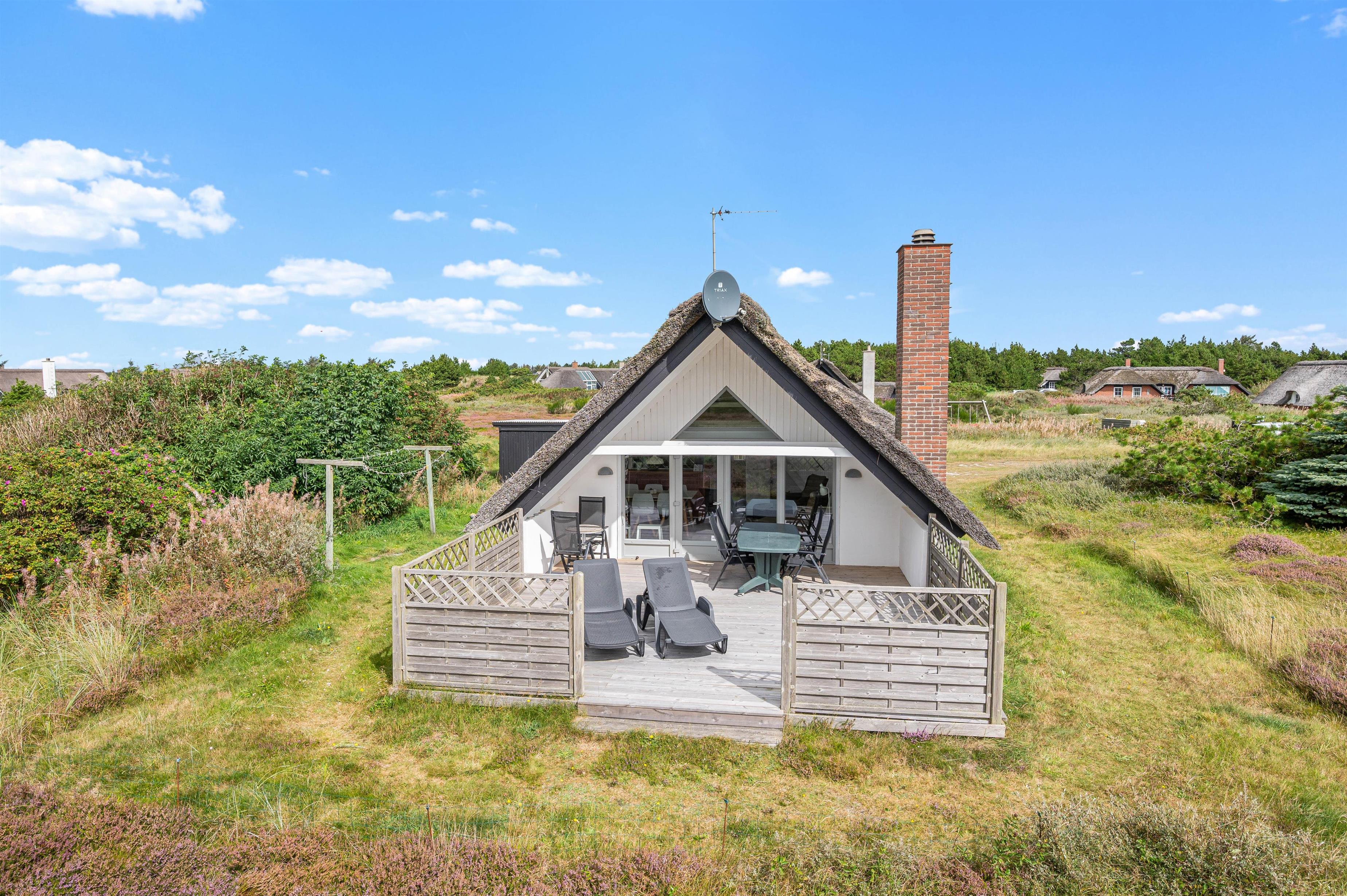 This charming thatched holiday home is located at Nordsø Ferievej 54, just 600 metres from the roaring North Sea. Situated in Klegod, slightly north of Lyngvig Lighthouse, you'll stay in this lovingly designed triangular cottage.