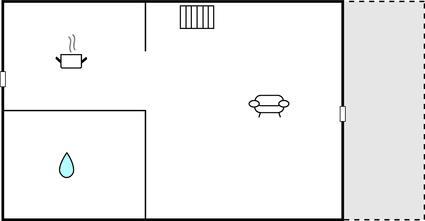 Wohnraum/Küche 28m2 - 2 Schlafmöglichkeiten. (Doppelbett(en)).