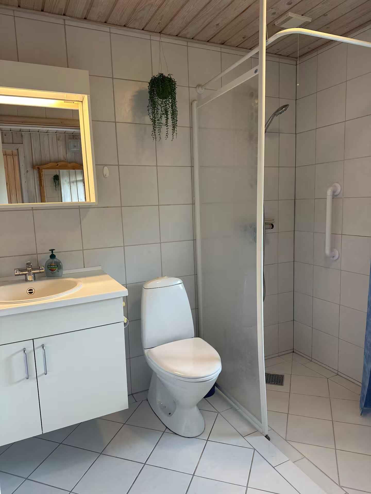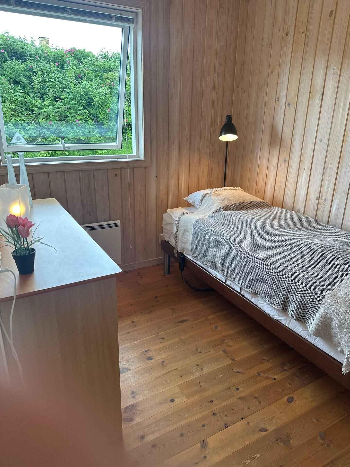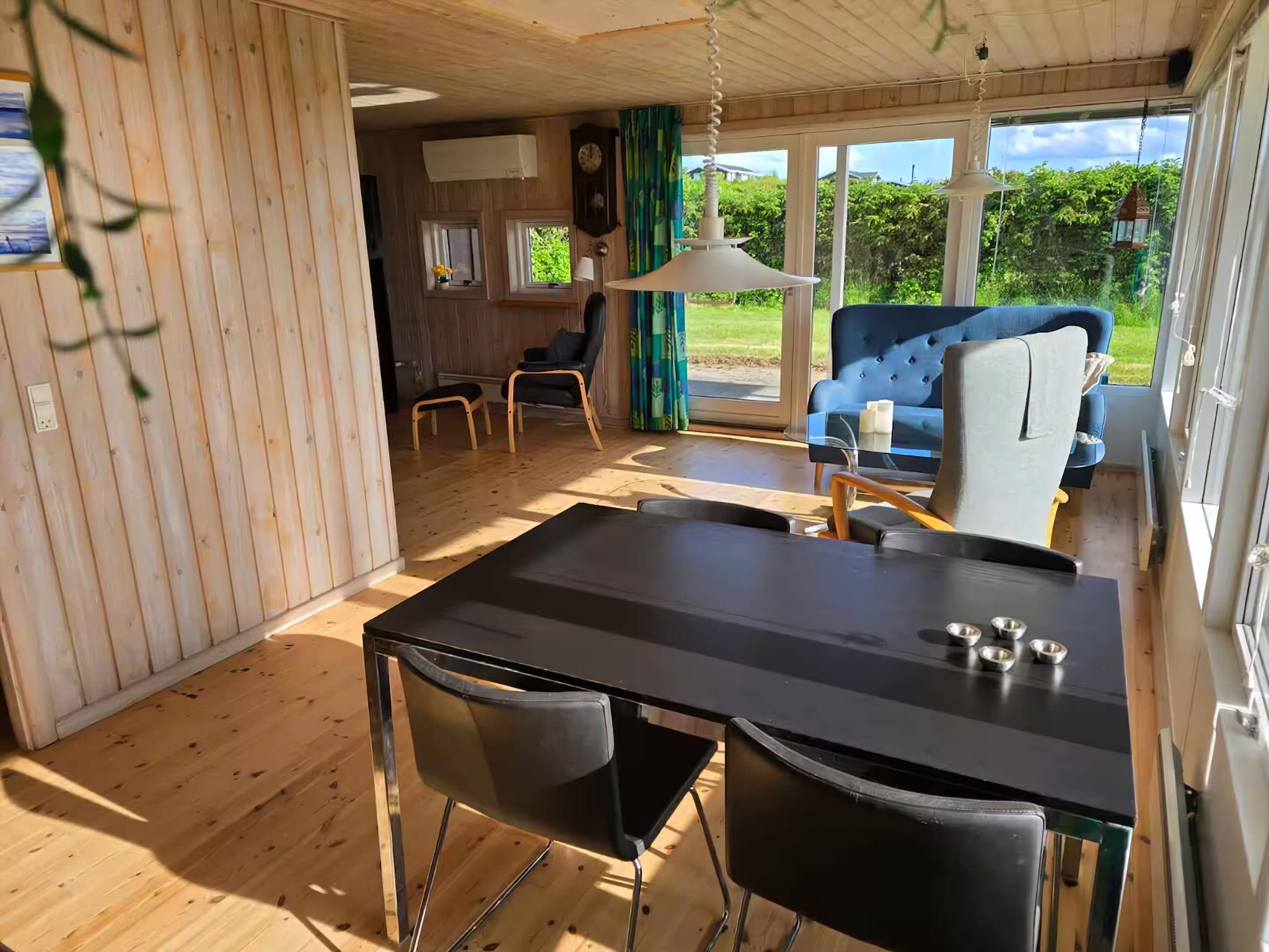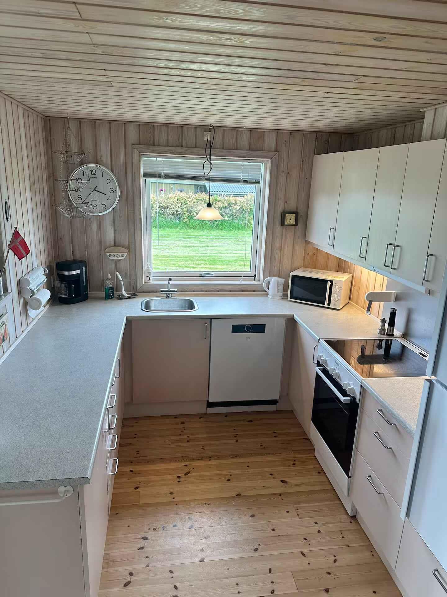 This bright 78 m² holiday home is set in peaceful surroundings with views toward Aarhus Bay. With two bedrooms and three beds, a light kitchen-living area and a closed office with fast internet, it's ideal for couples, small families or solo travellers seeking calm near the water. The interior is simple and functional with a focus on comfort. The living room opens directly to the garden, and the bathroom features a neat shower. Newly prepared for rental, the house is suited for holidays, focused work or quiet retreats. The covered terrace extends outdoor living, and the garden offers space for play, rest and moments with bay views. In season, you can pick fresh blackberries from the garden. The area offers excellent holiday qualities. The beach is just 150 metres away, west-facing, child-friendly and ideal for swimming, crab-fishing or outings with kayaks and SUP boards. The water is calm and welcoming, even for beginners. Skødshoved Harbour is within walking distance, with an ice cream shop, restaurant and cosy maritime atmosphere. The area provides small trails, coastal nature and quiet roads perfect for cycling and walking. Mols Bjerge National Park is nearby with stunning landscapes and diverse routes. In the evening, you can enjoy the distant Aarhus skyline as the sun sets over the bay. The mix of nature, sea, tranquillity and modern comfort makes this house a peaceful retreat with small adventures right outside the door.