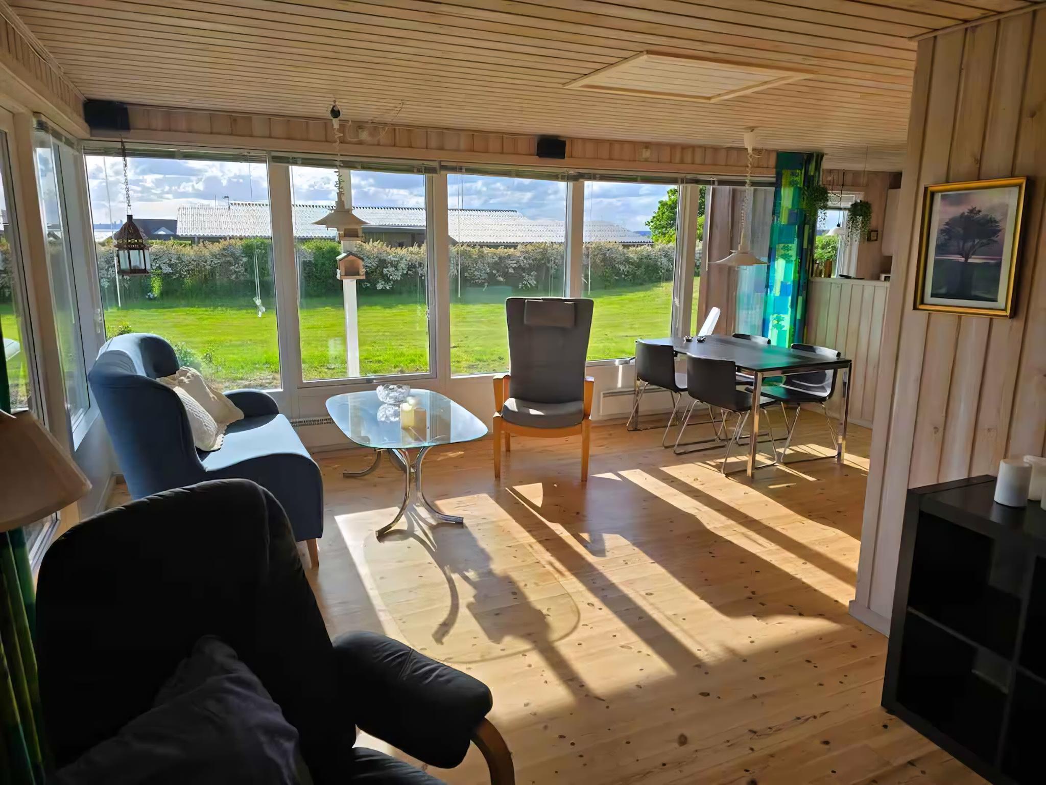 Bright and peaceful 78 m² holiday home with 2 bedrooms, office and sea view. Only 150 m to a child-friendly beach, close to Skødshoved Harbour and Mols Bjerge. Large garden, covered terrace and fast internet. Ideal for couples and small families.