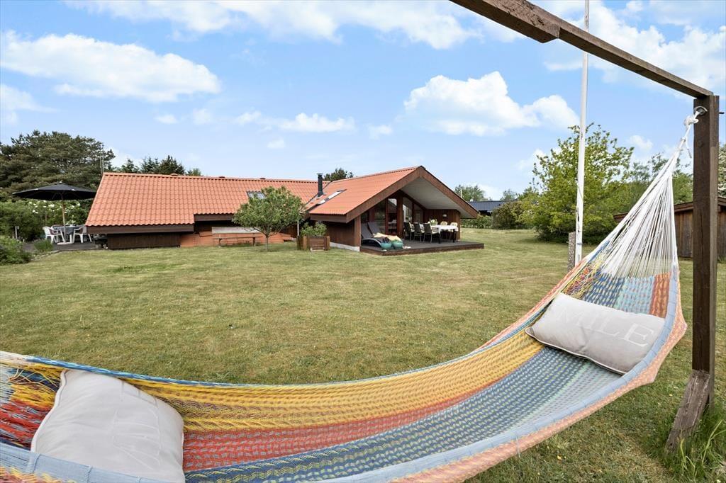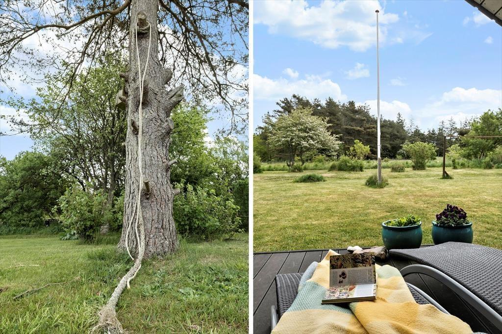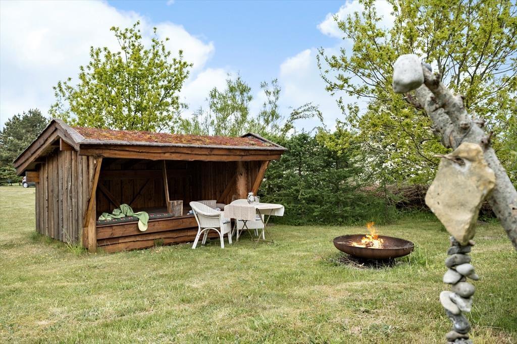Rund um das Ferienhaus findest du viele schöne Ecken zum Entspannen und Genießen. Besonders der Shelter mit angrenzender Feuerstelle im hinteren Teil des Gartens ist ein echtes Highlight – hier spürst du die Ruhe der Natur, hörst das Knistern des Feuers und das Zwitschern der Vögel. Auf der großzügigen Terrasse kannst du morgens deinen Kaffee trinken oder den Tag mit einem Grillabend ausklingen lassen. Das Haus liegt eingebettet in die natürliche Umgebung und grenzt direkt an die Kollerup Klitplantage – ideal für alle, die gerne draußen sind.