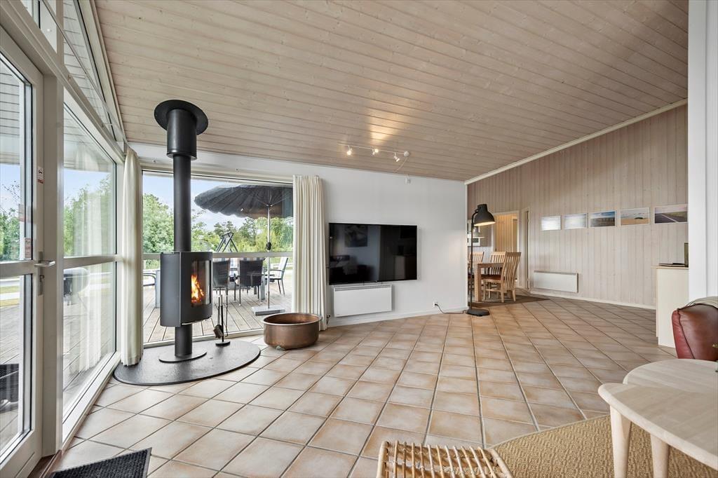 Das Ferienhaus wurde 2006 gebaut und präsentiert sich als wohlproportioniertes Gebäude mit insgesamt 140 m², das unter anderem mit einem Whirlpool und einer Sauna, die sich in einem der zwei Badezimmer befinden, ausgestattet ist. Im Inneren des Hauses herrscht eine helle, luftige und einladende Atmosphäre, denn in allen Räumen gibt es helle Holzwände und hohe Zimmerdecken, und die vielen Fenster sorgen für einen hervorragenden Lichteinfall. Gleichzeitig geben die großen Fenster den Blick ins Grüne frei und nicht zuletzt vom Wohnzimmer und der Küche aus ist der Panoramablick über die weite Landschaft atemberaubend. Wenn du es schaffst, deinen Blick von der Umgebung abzuwenden, gibt es im Wohnzimmer einen Flachbildfernseher mit Satellitenschüssel, Smart-TV und Netflix. Ein Brennofen sorgt an kühlen Abenden für eine gemütliche Stimmung. Der Wohnraum geht in die offene Küche über, sodass du, auch wenn du getrennten Beschäftigungen nachgehst, wie beispielsweise Kochen oder Lesen, trotzdem das Gefühl hast, gemeinsame Zeit zu verbringen. Wenn sich der Tag dem Ende neigt, kannst du dich in einem der vier guten Schlafzimmer zur Ruhe begeben, in denen insgesamt acht Schlafplätze zur Verfügung stehen.