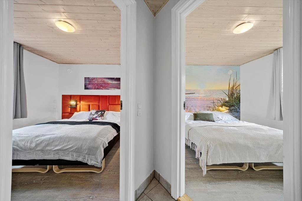 Das Ferienhaus befindet sich in Kongsmark, inmitten von Rømø, und wurde laufend renoviert, um mit der Zeit Schritt zu halten. Im Jahr 2022 wurden umfangreiche Verbesserungen vorgenommen, bei denen die sieben Schlafzimmer des Hauses eine gründliche Renovierung bekommen haben – es fühlt sich fast wie der Check-in in ein Boutique-Hotel an, in dem jedes Zimmer seinen eigenen einzigartigen Stil hat. Ein gemeinsames Merkmal der Schlafzimmer sind die komfortablen Doppelbetten, die auch in Einzelbetten umgewandelt werden können, und es ist außerdem praktisch, dass sie in zwei separaten Bereichen mit jeweils eigenem Badezimmer angeordnet sind. Wenn viele von Ihnen zusammenkommen, können Sie das Loft nutzen, denn hier ist Platz für weitere vier Personen. Das dritte Badezimmer des Hauses befindet sich im schönen Poolbereich, wo Sie das Leben im Swimmingpool, im Whirlpool und in der Sauna genießen können. Der Poolbereich wurde im März 2025 renoviert, damit er hell und modern erscheint. Ein weiterer gemütlicher Sammelpunkt ist der Aktivitätsraum, wenn du beim Billard, Tischfußball, Tischtennis oder Dart Kräfte messen möchtest. Ansonsten kannst du dich in dem großen, hohen Wohnraum versammeln, der mit einer modernen Küche, einem Brennofen, einem langen Esstisch und einer geräumigen Sofaecke eingerichtet ist. Nach einem aktiven Tag in den inspirierenden Räumen des Hauses können Sie sich darauf freuen, Zeit in der geräumigen Küche zu verbringen. Die zuletzt in 2024 renovierte Küche bietet viel Platz für gemütliche Kochmomente und gemeinsame Mahlzeiten, wo alle hungrigen Münder satt werden können.