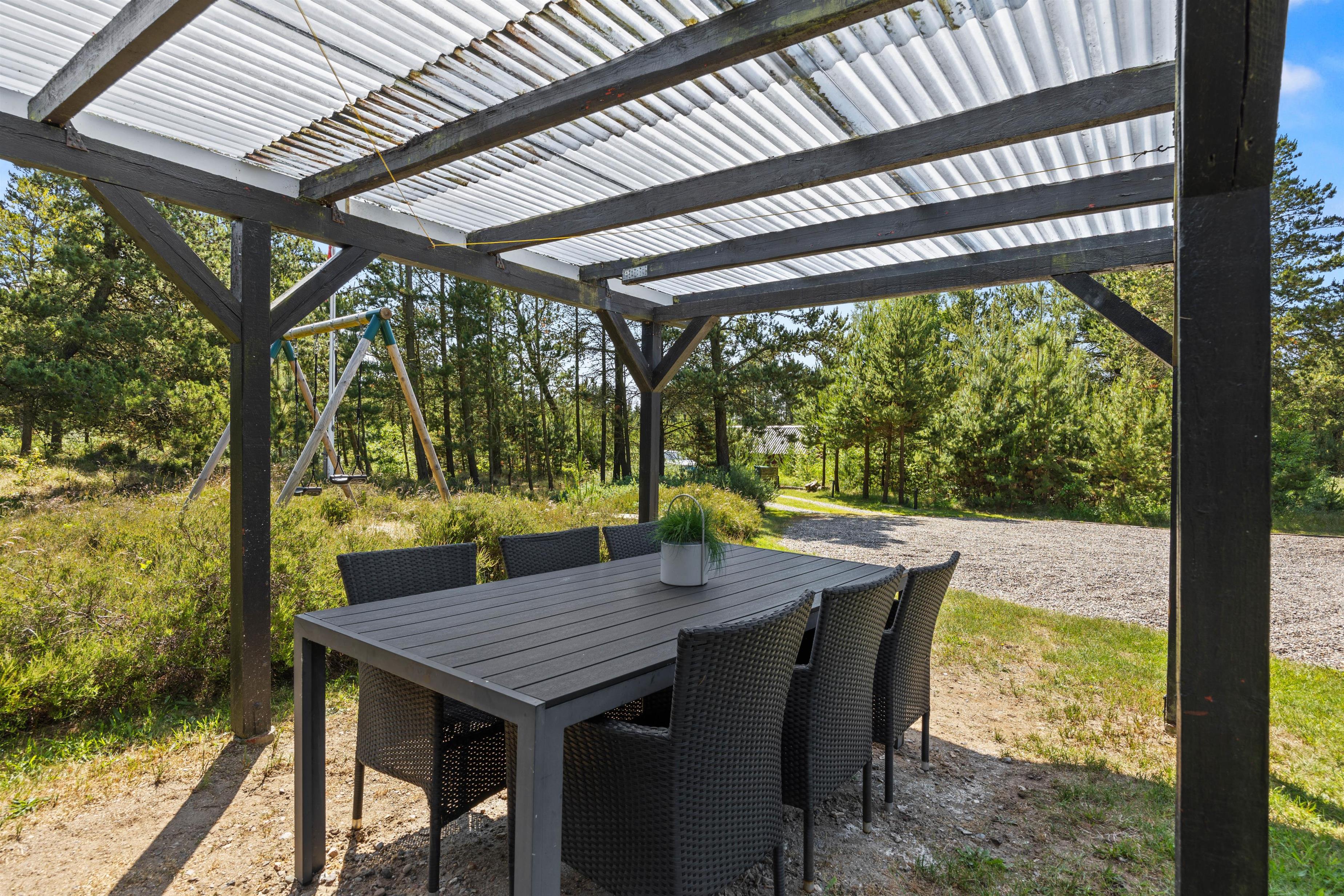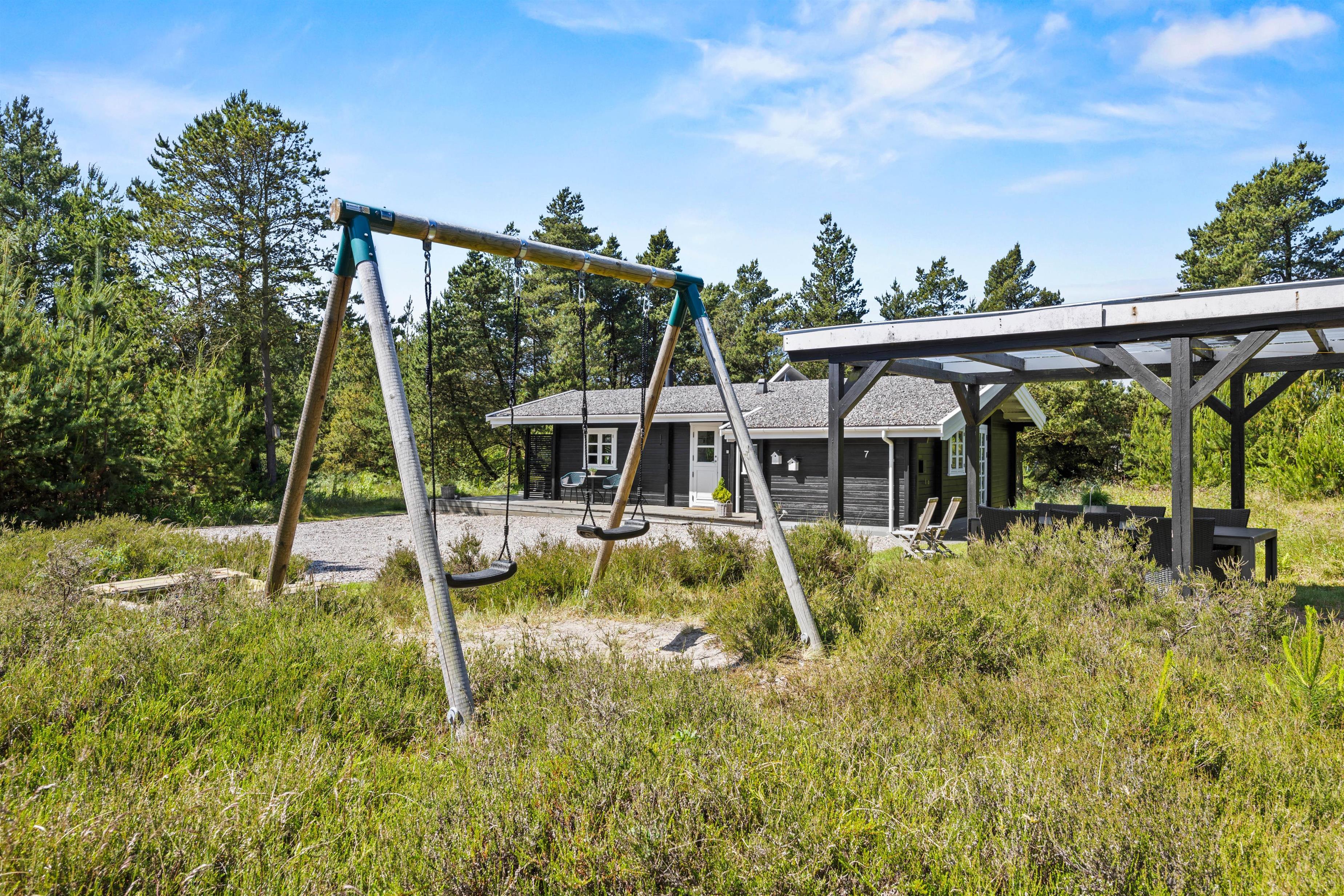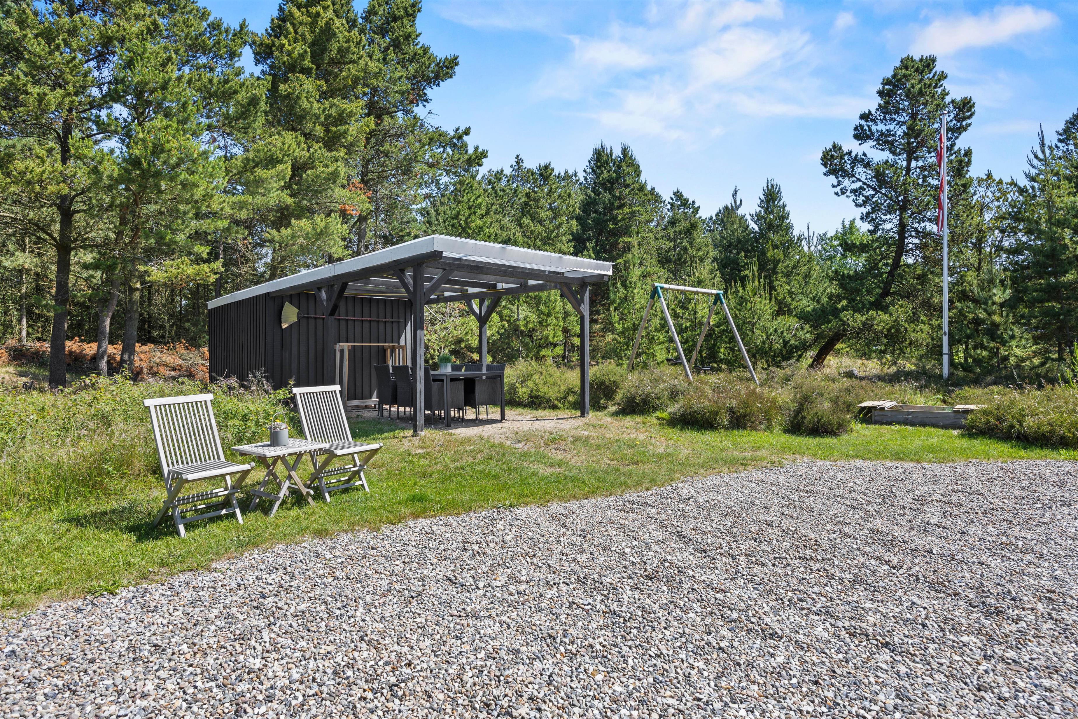 Draußen erwartet euch ein großzügiges Naturgrundstück von 2500 m² mit offener und überdachter Terrasse, bequemen Gartenmöbeln, Sonnenschirm und Gasgrill. Ideal für sonnige Tage und laue Abende in absoluter Ruhe. Kinder können sich im Sandkasten oder auf der Schaukel austoben, während die Erwachsenen mit einer Tasse Kaffee den Blick über die Dünenlandschaft und den weiten Himmel genießen. Ein Geräteraum bietet Platz für Fahrräder oder Strandutensilien. Das Haus liegt idyllisch – nur etwa 3,3 km von Kongsmarks breitem Sandstrand an der Nordsee und den nächsten Einkaufsmöglichkeiten entfernt. Die friedliche Umgebung lädt zu entspannten Strandtagen ebenso ein wie zu Spaziergängen in der Natur.