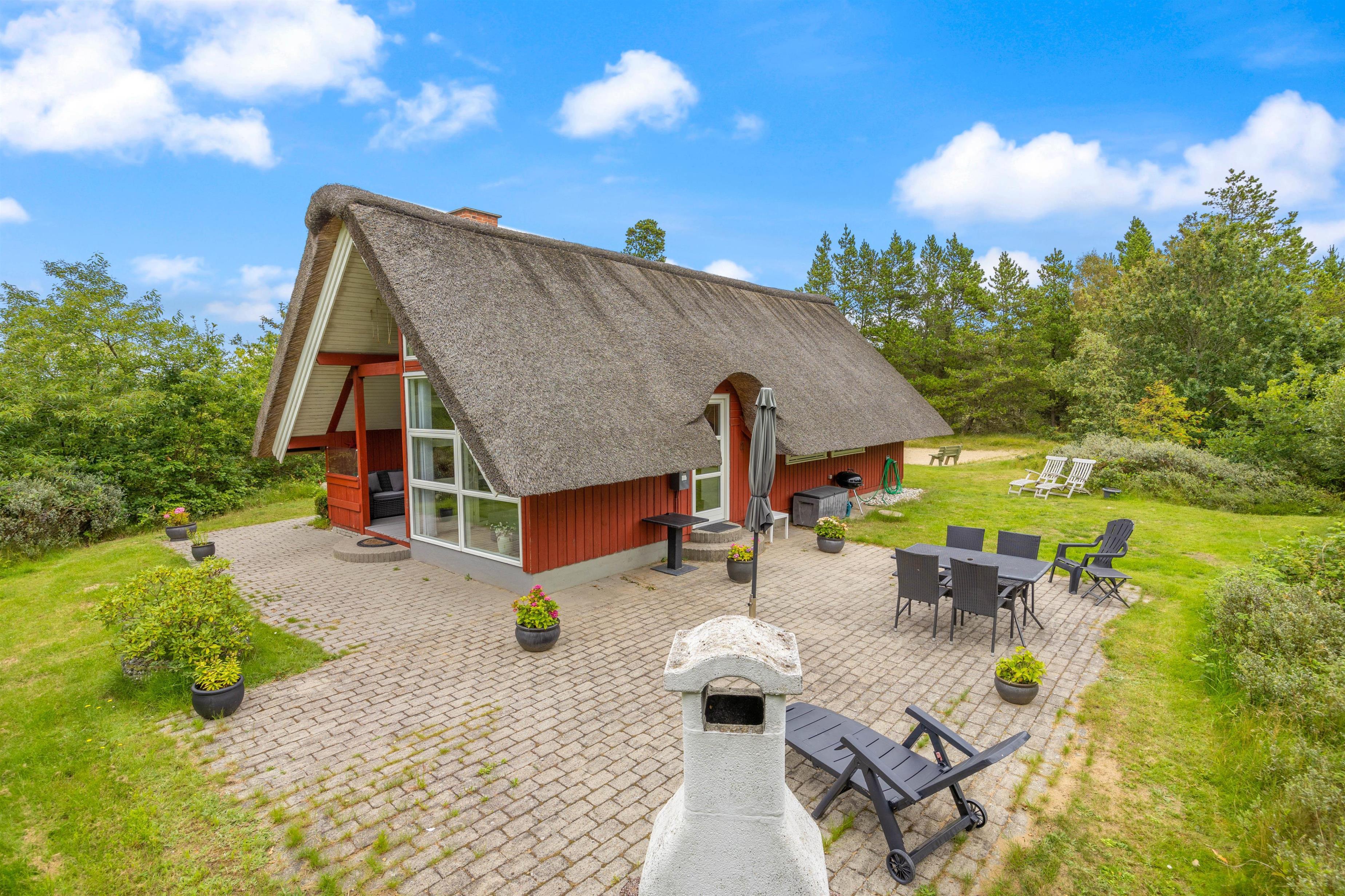 Attractive thatched wooden holiday home at Råbjergvej 88 on Rømø. This holiday home offers excellent comfort and outdoor amenities. You'll enjoy beautiful green views and plenty of space between neighbouring properties.