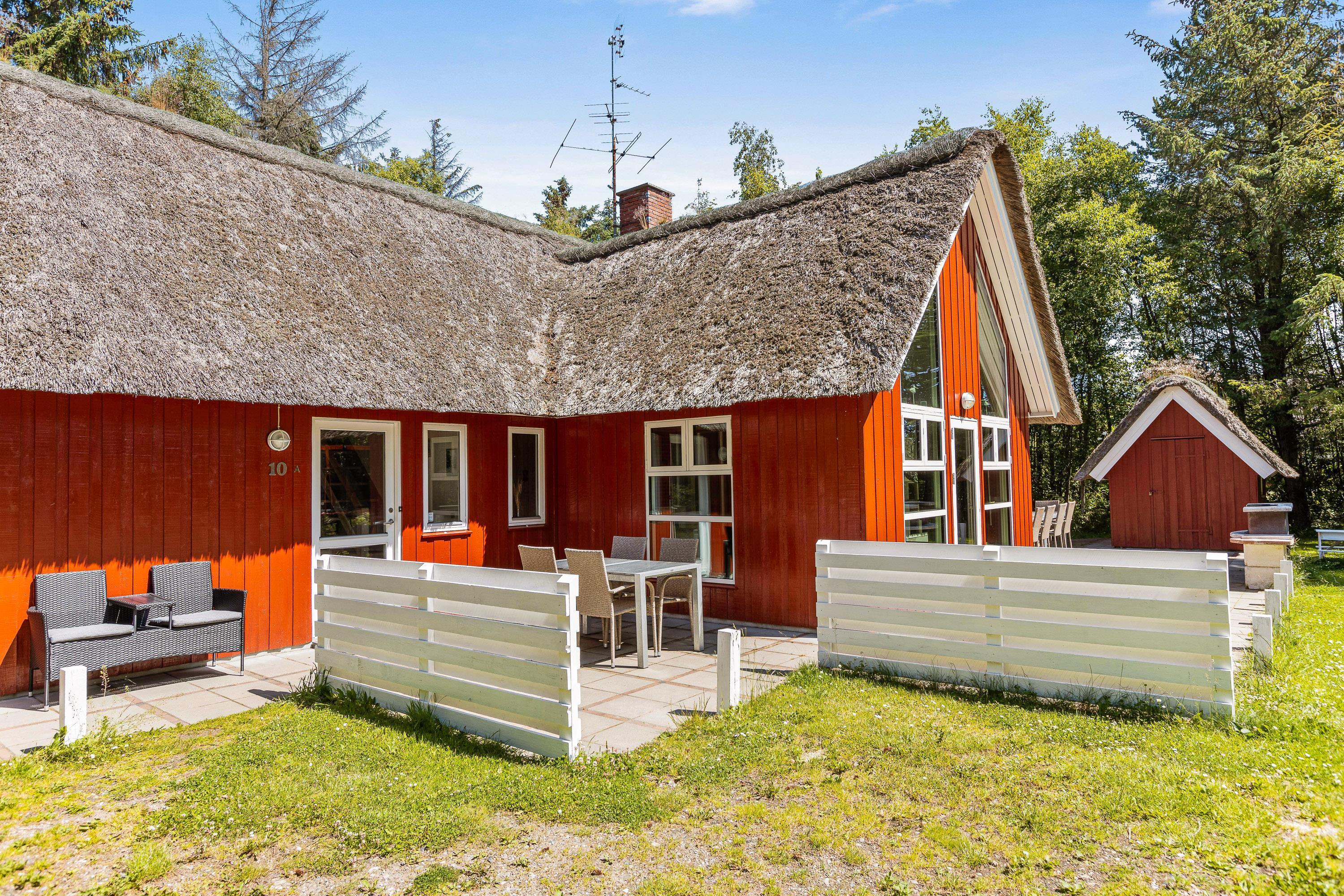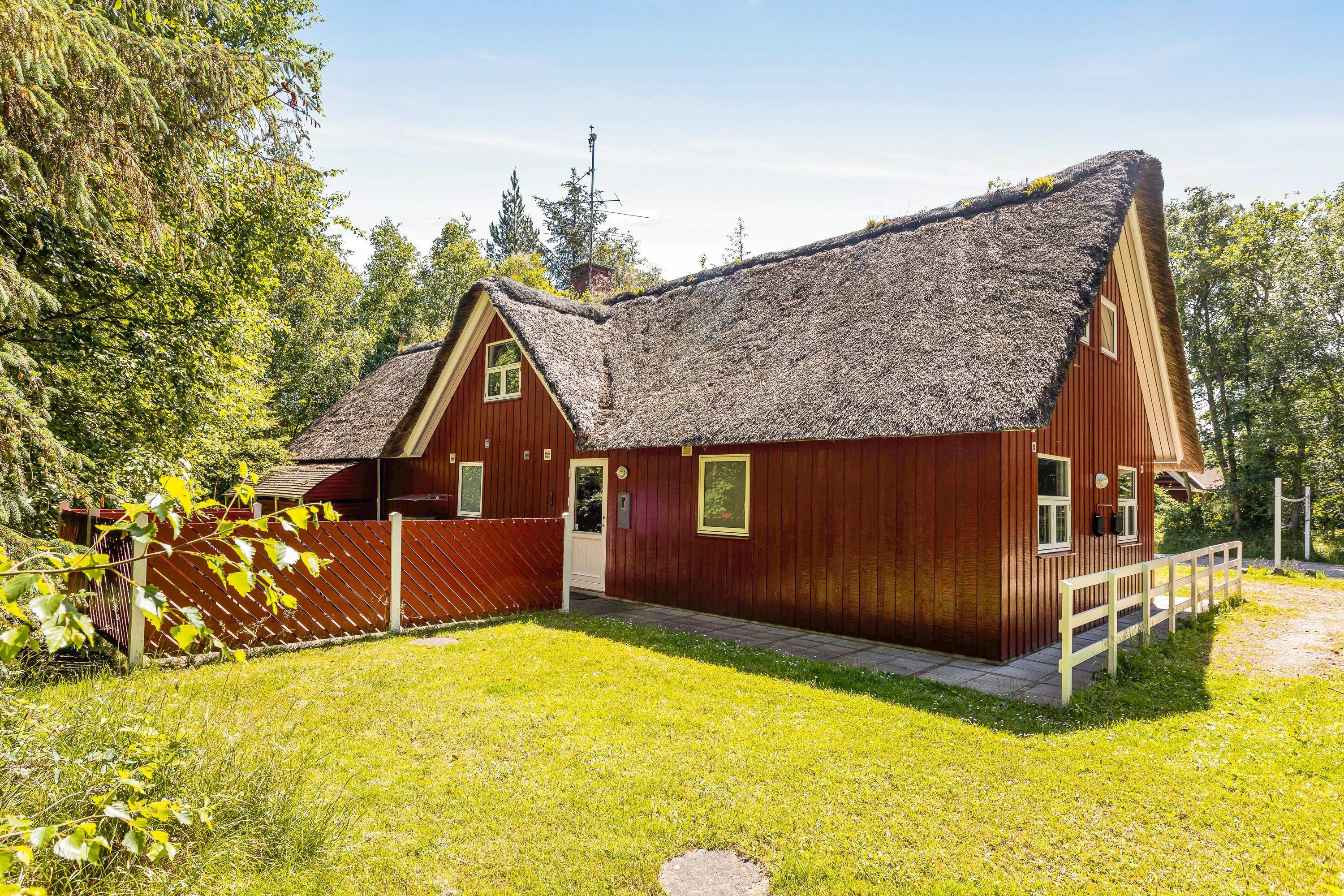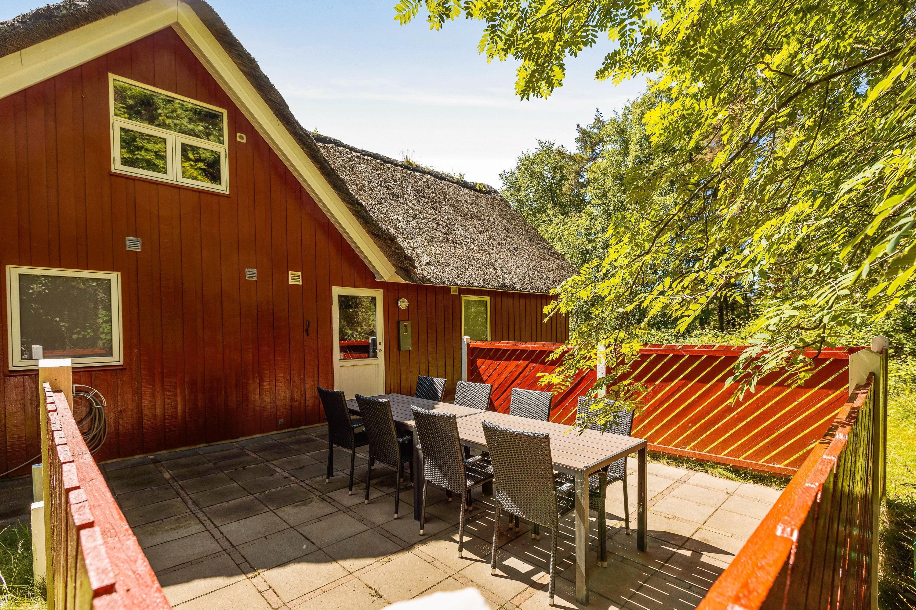 This well-equipped, thatched wooden holiday home enjoys a unique location at the end of a road, nestled against a fenced embankment in a woodland clearing. Protected by tall trees that still allow sunlight to reach the 107-square-metre grounds and terrace, the holiday home offers both morning and evening sun. Quality garden furniture and a large stone barbecue create perfect settings for outdoor dining.