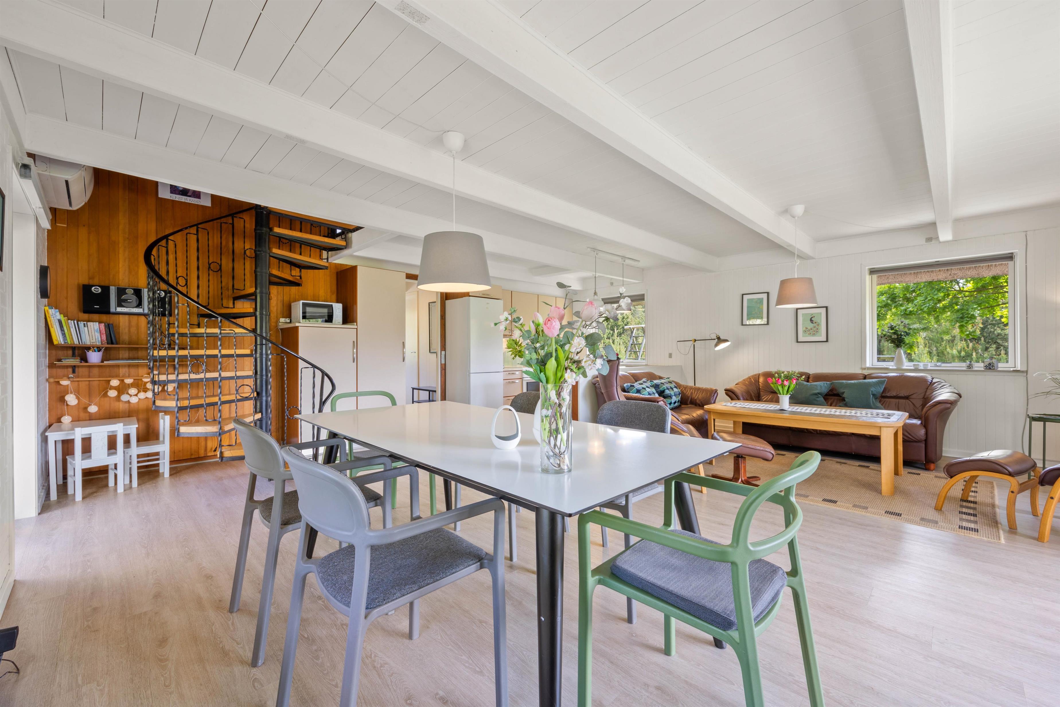 The summer house features 4 bedrooms, all with double beds. The sofa bed provides additional sleeping space for 2 people. The holiday home has 2 bathrooms, both with underfloor heating. The ground floor bathroom includes a shower.