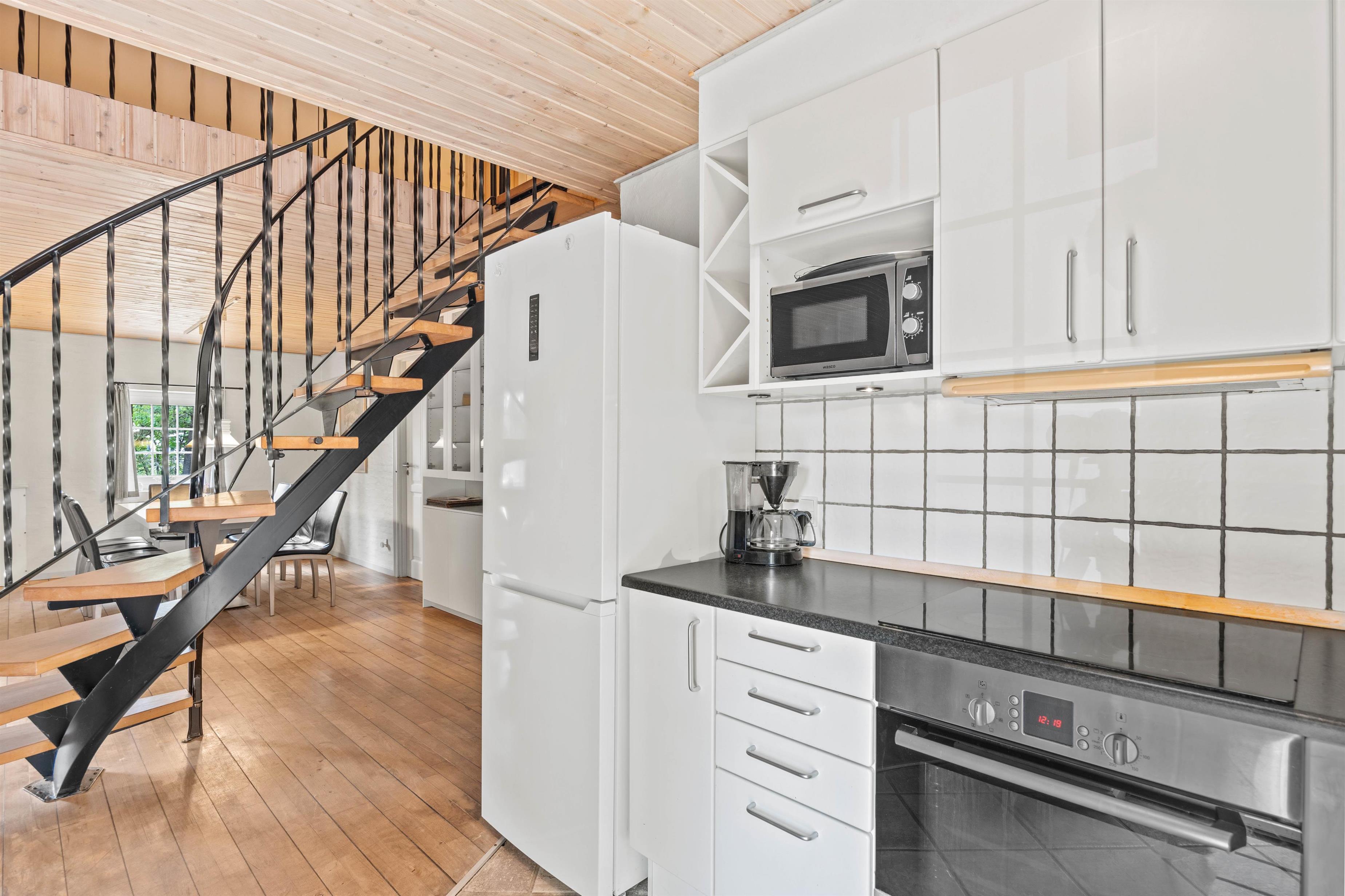 The open-plan kitchen is well-equipped for entertaining, perfect for sociable cooking evenings. You can enjoy your home-cooked meals at the dining table, and afterwards, the dishwasher takes care of the cleaning up. This leaves more time to enjoy the holiday home's other amenities.