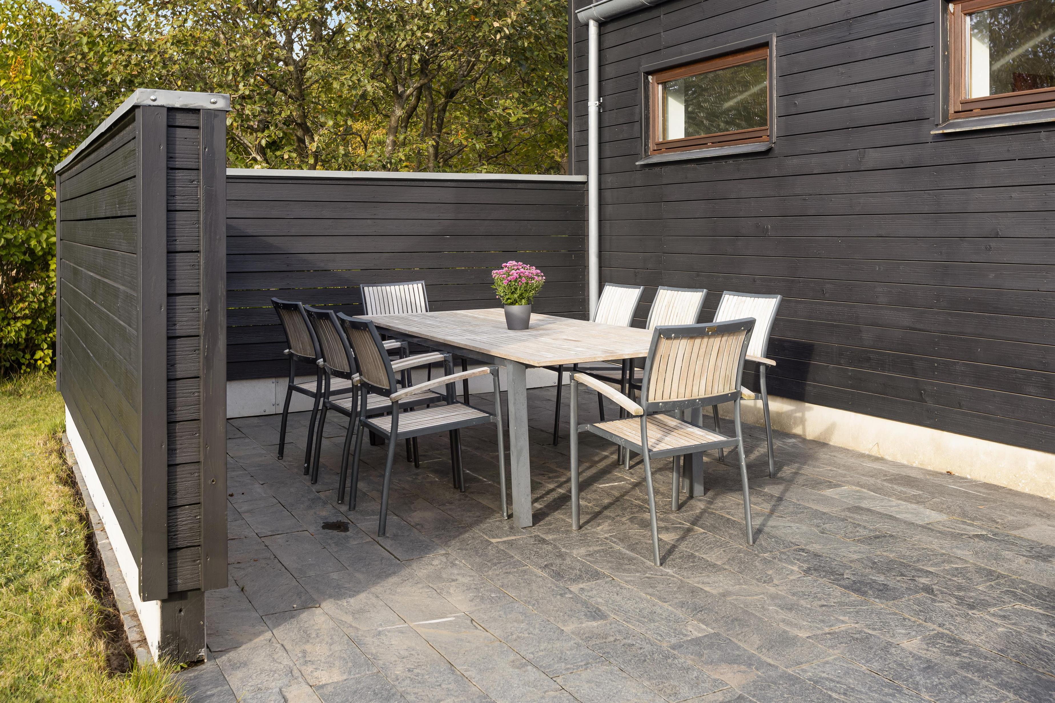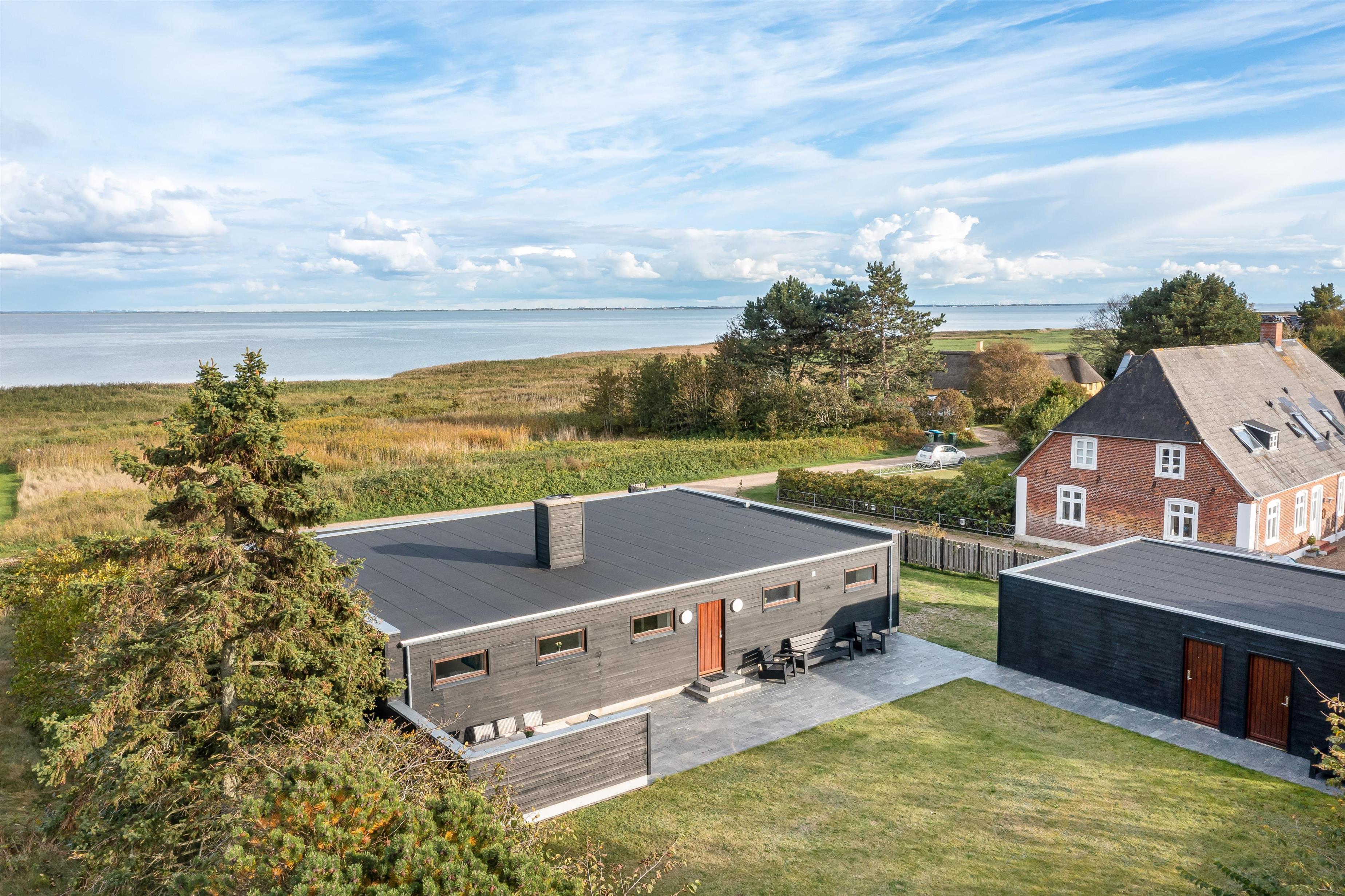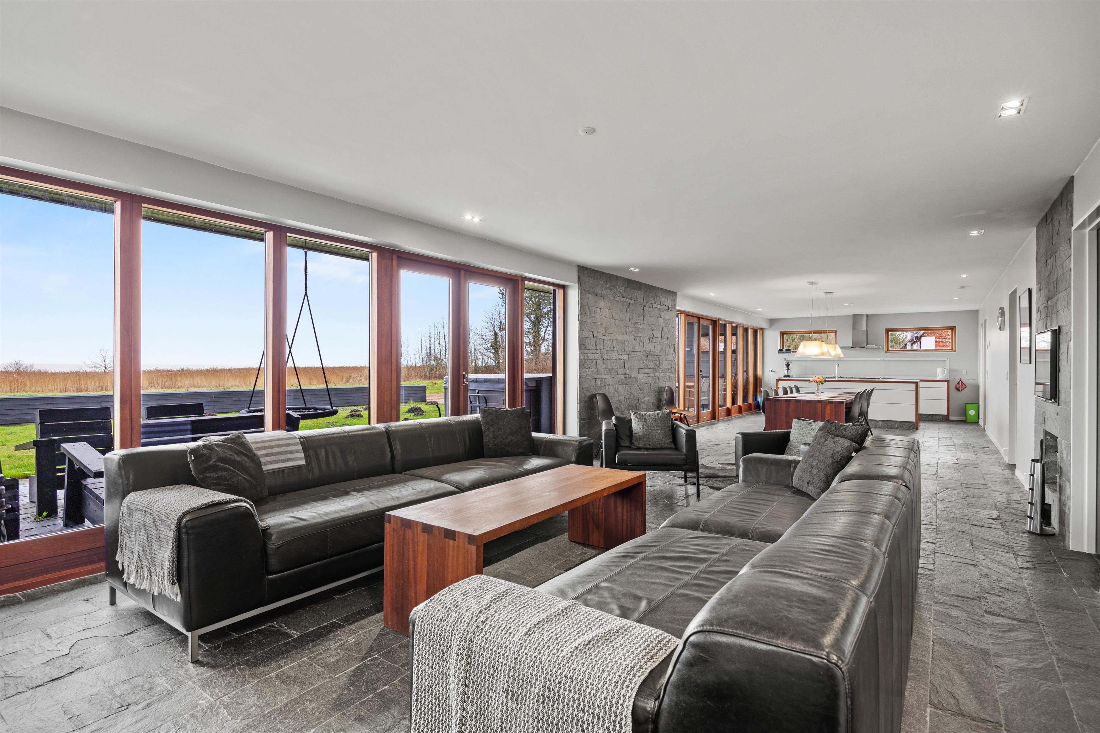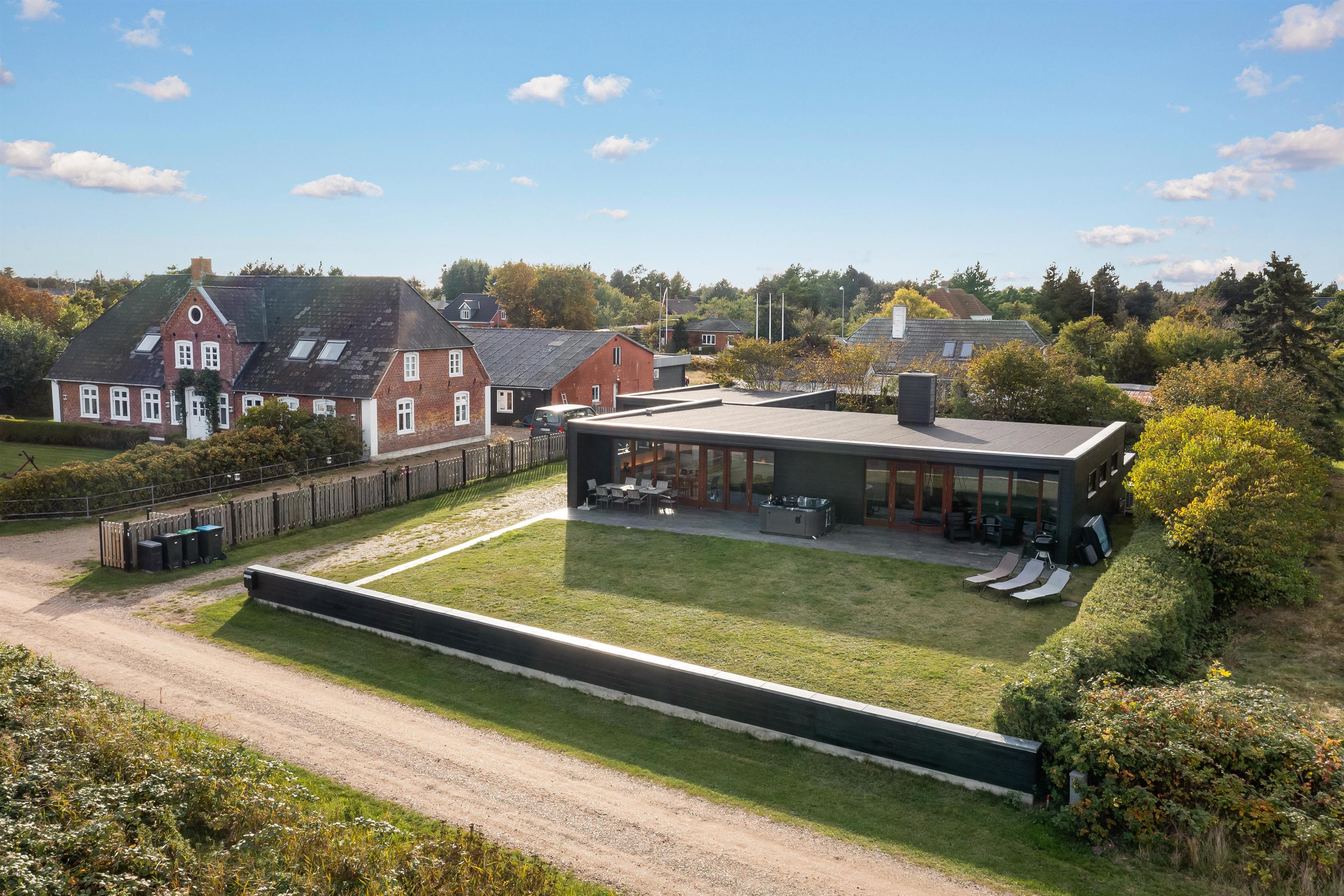 The spacious outdoor area features an extensive lawn, perfect for activities or a game of Viking chess (Kubb). The partially covered terrace is ideal for a family barbecue. In the evening, you can unwind in the outdoor hot tub with a glass of wine, enjoying beautiful views of the water and starlit sky.