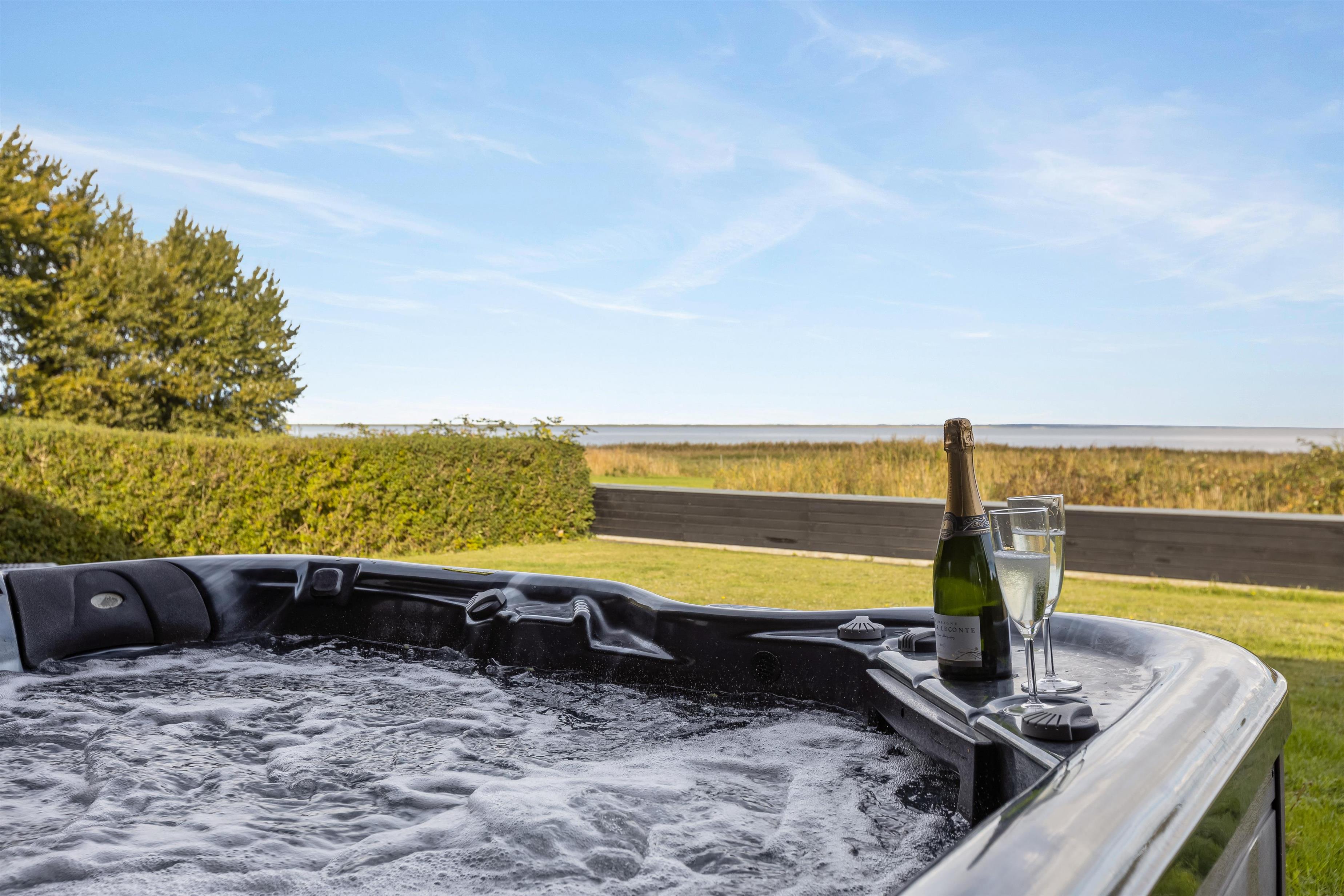 Inviting patio with outdoor hot tub and Wadden Sea views