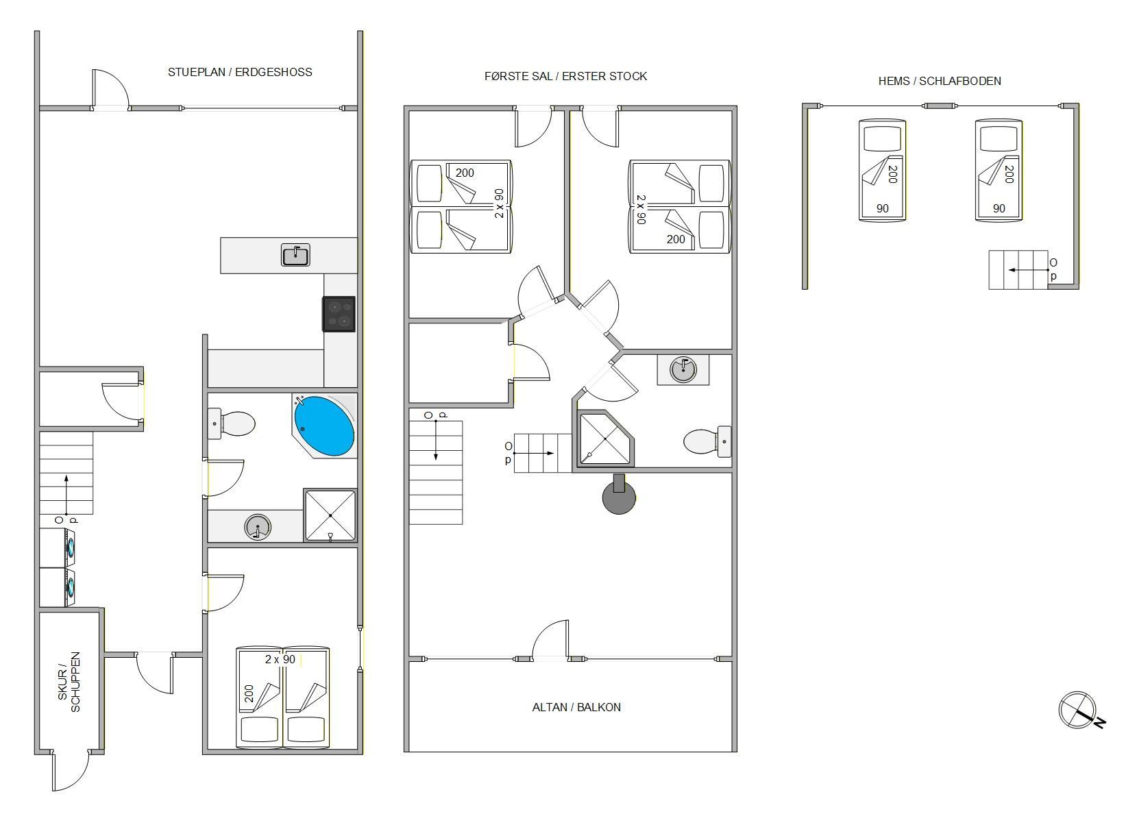 Das 2006 erbaute, reetgedeckte Reihenhaus bietet moderne Annehmlichkeiten gepaart mit klassisch dänischer “Hygge”. Drei geräumige Schlafzimmer mit bequemen Doppelbetten garantieren erholsame Nächte. Zwei Badezimmer, ausgestattet mit Fußbodenheizung, sorgen für höchsten Komfort. Entspannt mit eurem persönlichen Standwasser-Whirlpool und erlebt den puren Luxus direkt vor Ort.