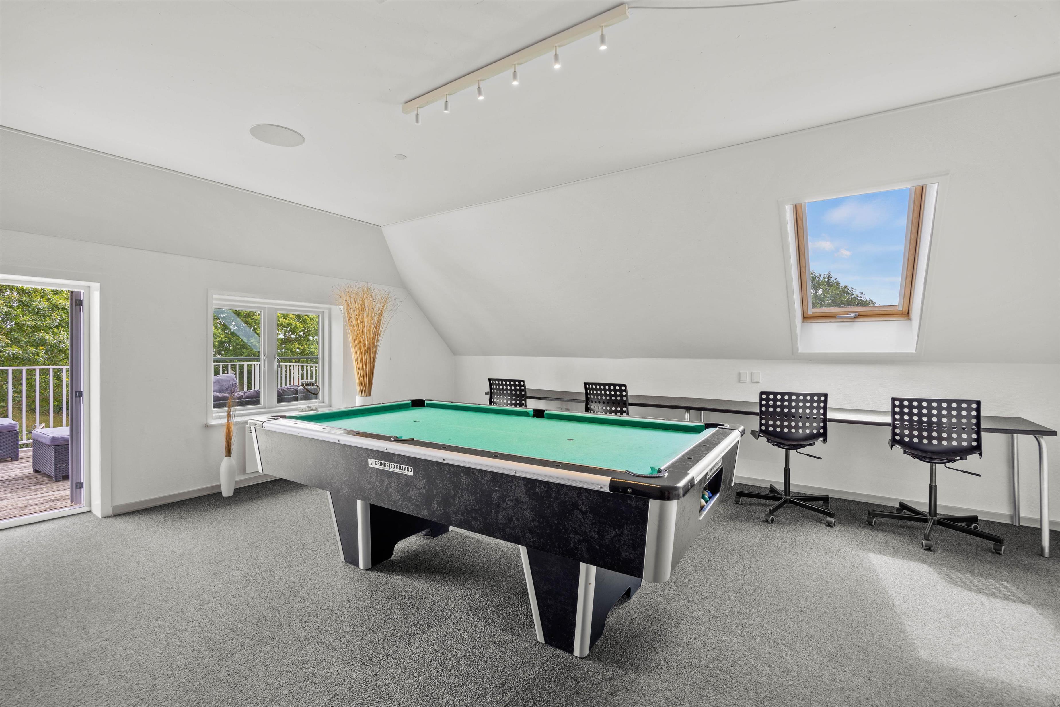 Perfect for active holidays with the whole family, including up to two dogs. Welcome to one of the most exceptional holiday homes on Rømø, situated in the picturesque landscape of Kongsmark. Located at Havnebyvej 81, this spacious residence offers 520 square metres of living space accommodating up to 25 people and your two dogs. Enjoy the benefits of a comprehensively equipped activity centre with swimming pool, sauna and hot tub. Whether you're planning a relaxing family holiday, celebrating a special occasion, or organising an inspiring corporate retreat, this holiday home is designed for your comfort.