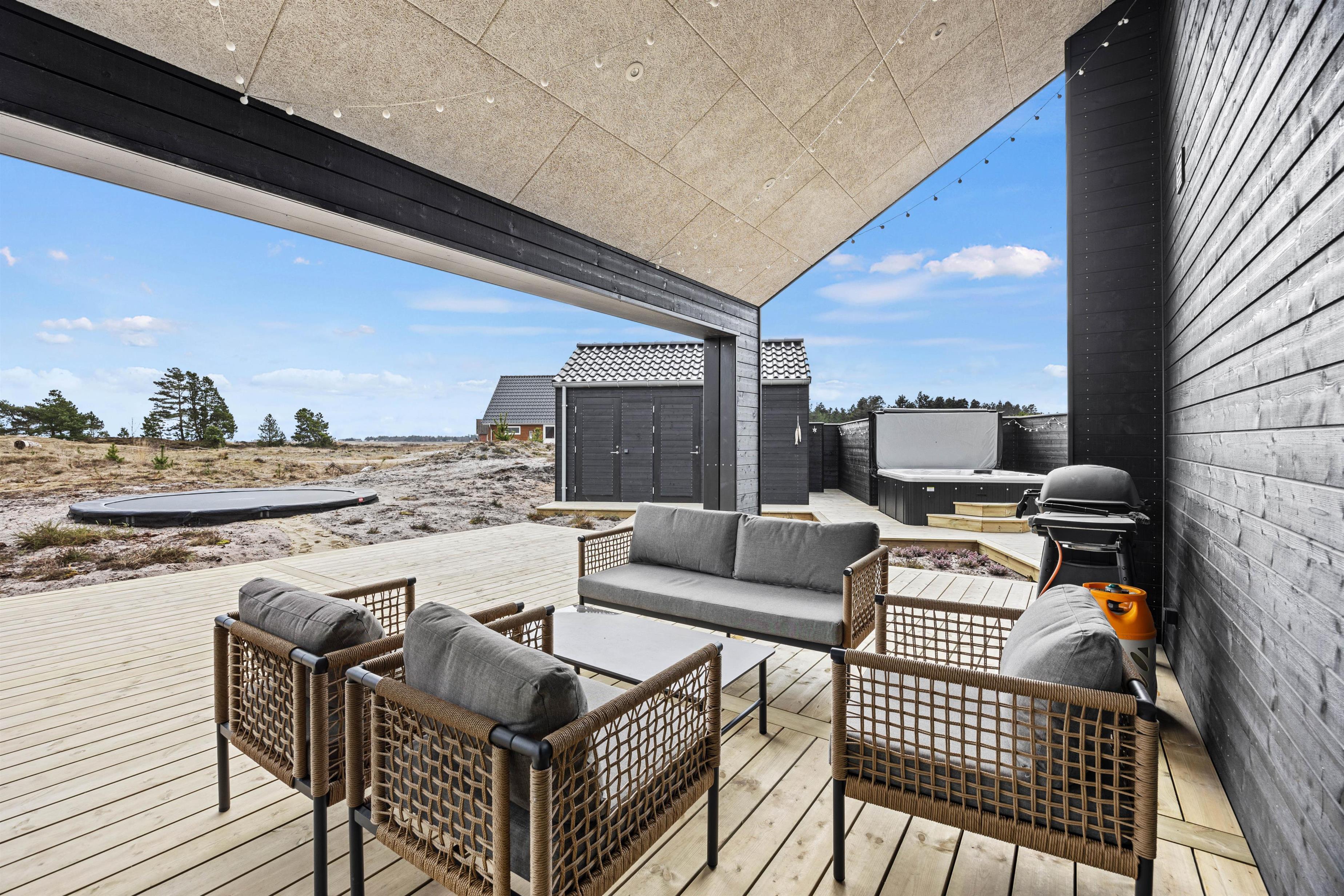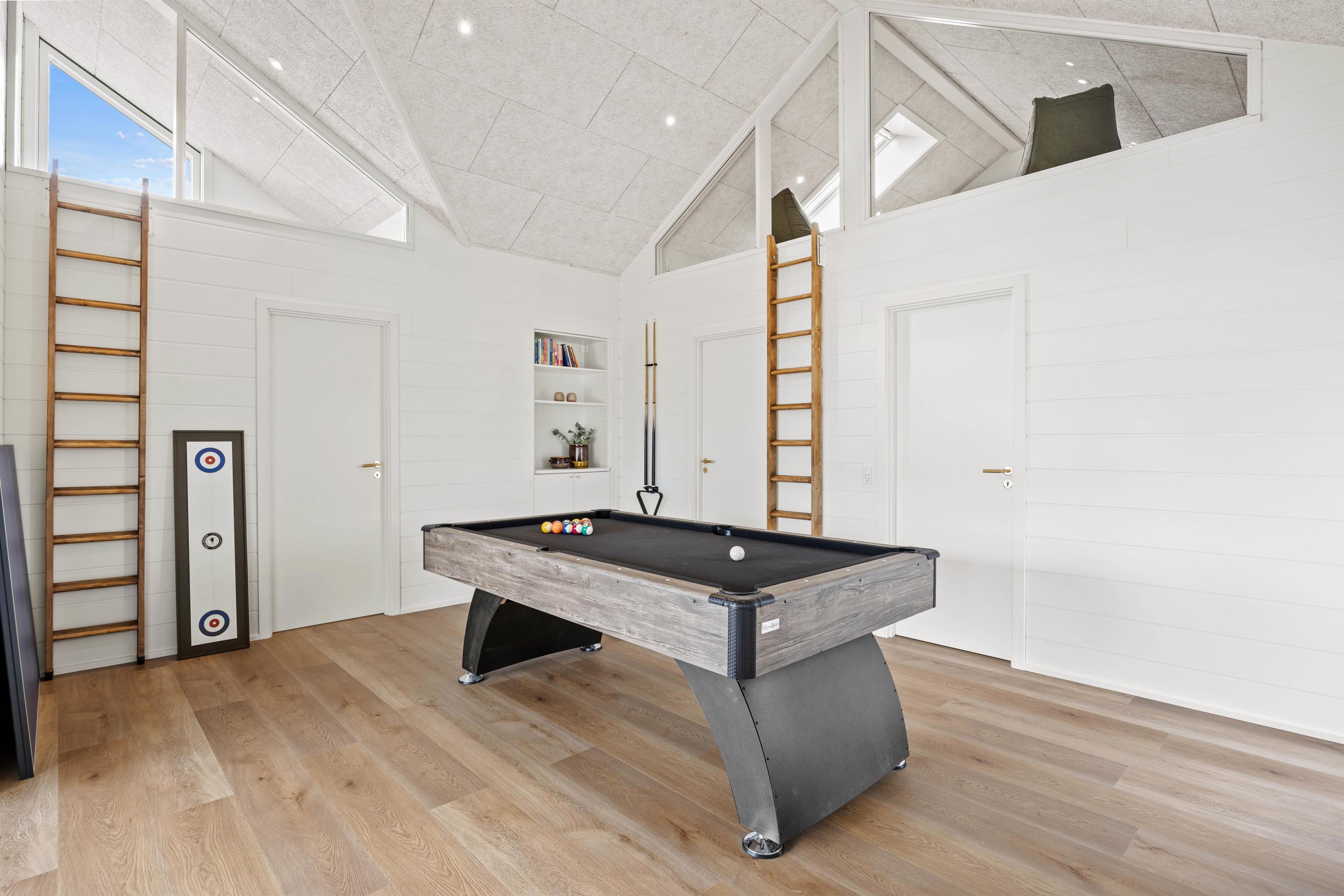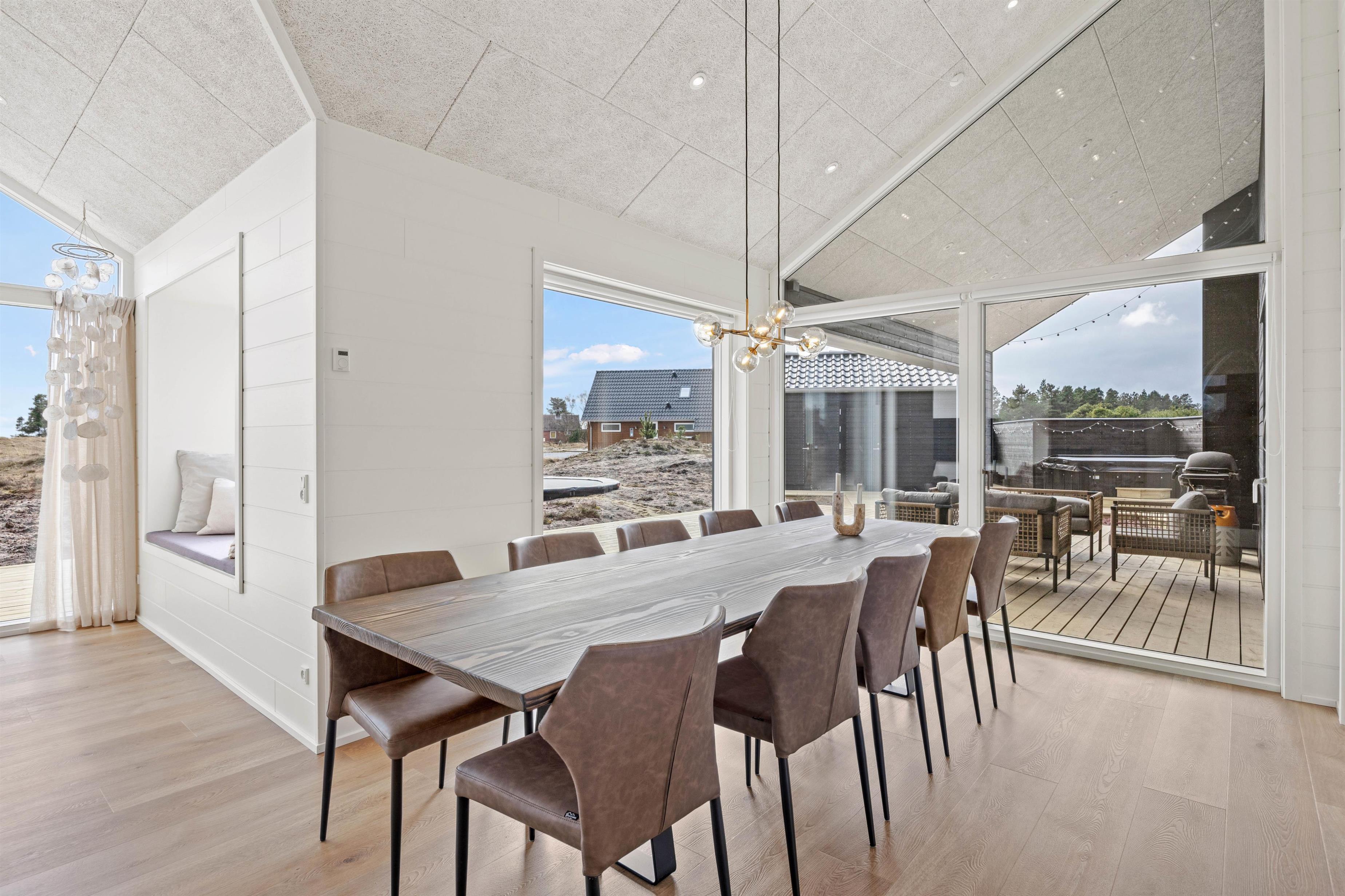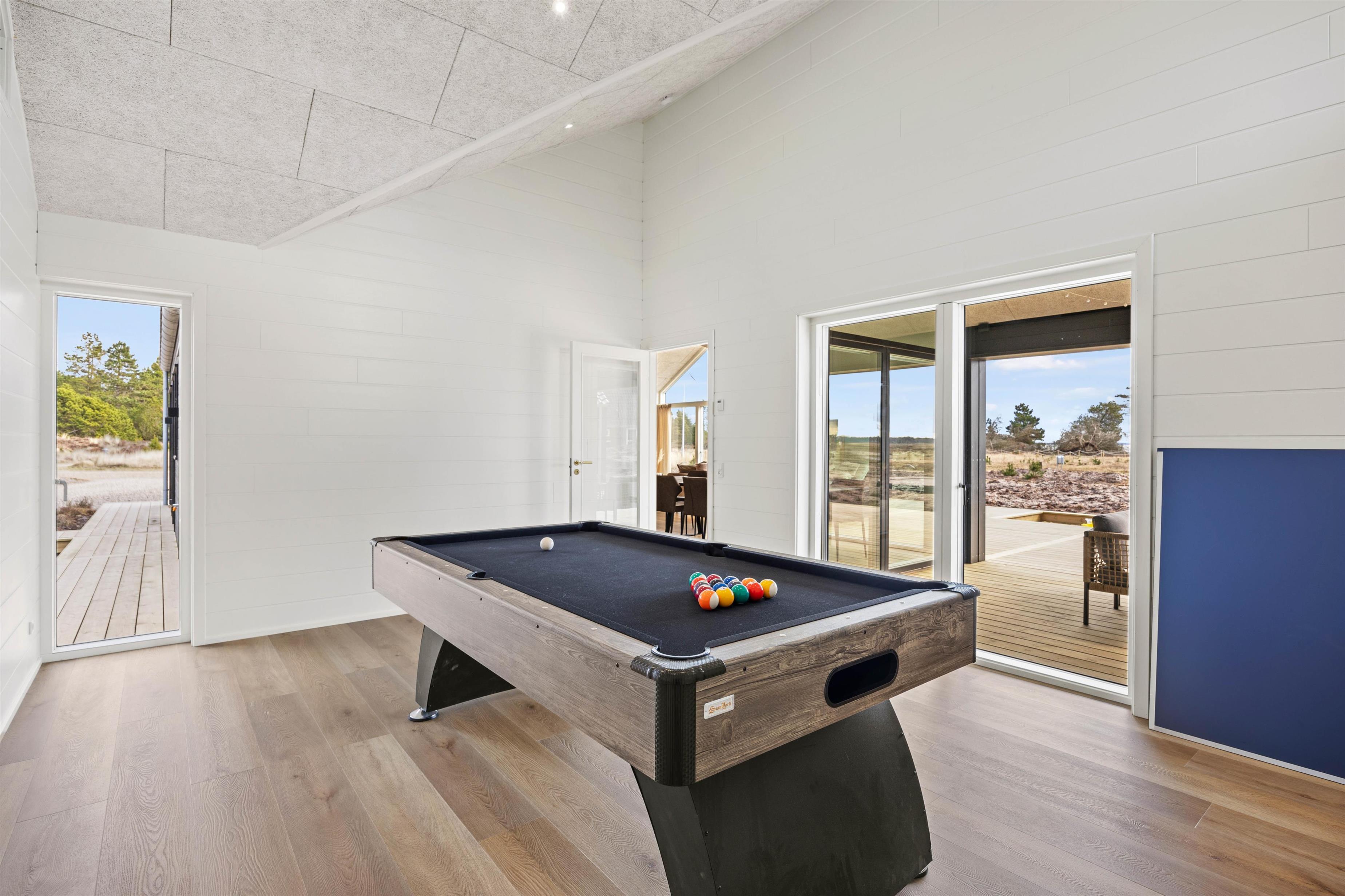 Ready for your next unforgettable holiday in Denmark? This modern holiday home on Rømø awaits you in the picturesque setting of Chresten Krommes Vej 12 in Kromose. Built in 2024, this 150-square-metre activity-focused holiday home offers extensive comfort with stylish, modern furnishings. Enjoy features including a wood-burning stove, modern air-to-water heat pump, and luxury amenities such as an outdoor hot tub and outdoor sauna. With two bathrooms and numerous activities including pool table, beach volleyball, and table tennis, this residence offers everything you could desire. There's even an electric car charging point available. Perfect for families or groups of up to 10 people, the holiday home is just 150 metres from the Wadden Sea.