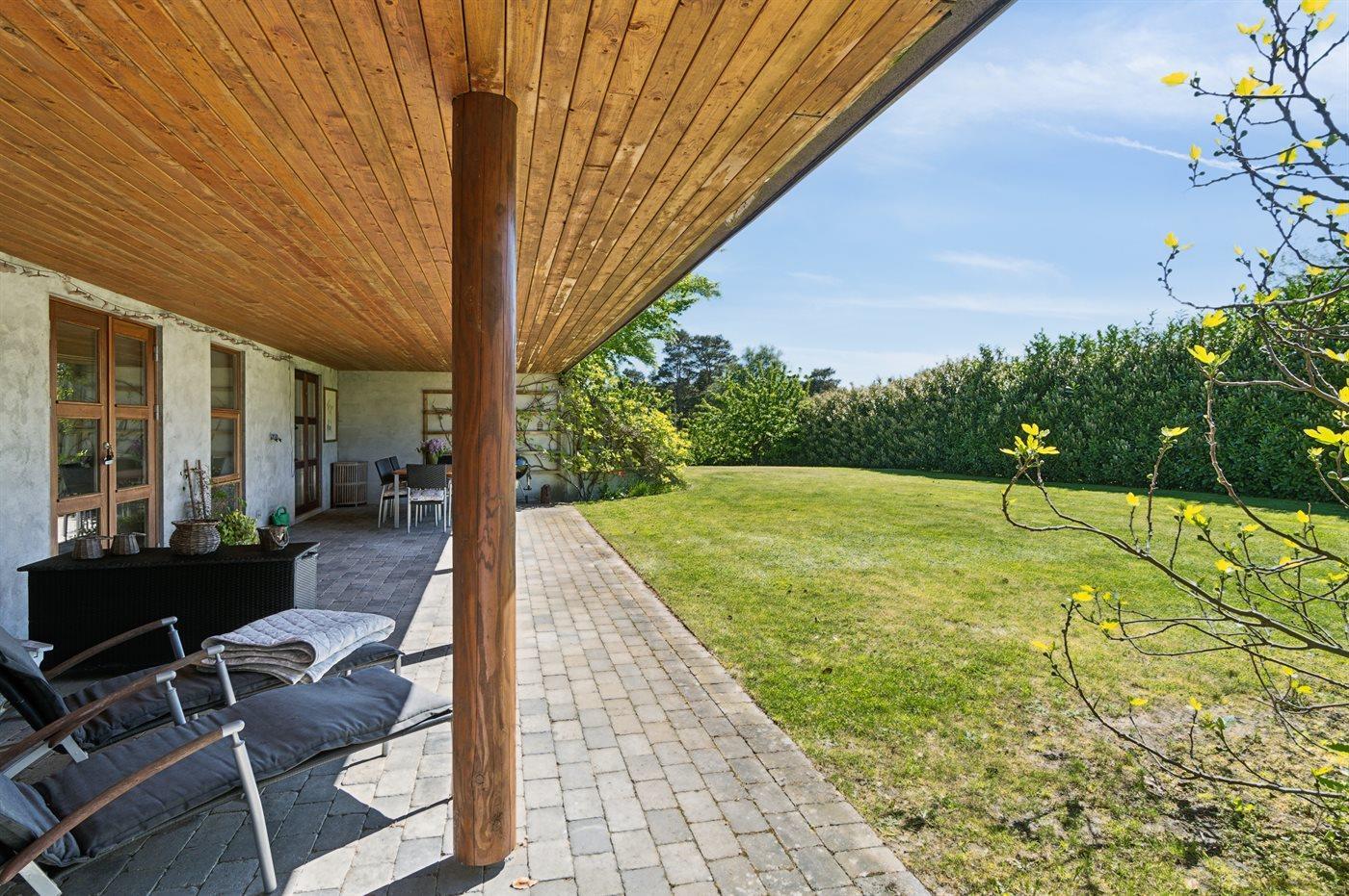 The holiday home is situated on a 1500 m² garden site. Situated 560 m from inlet. Nearest shop is 800 m away. You will find a golf course in a distance of 12000 m. A terrace and a 60 m2 covered terrace belongs to the holiday home. Parking place by the holiday home.