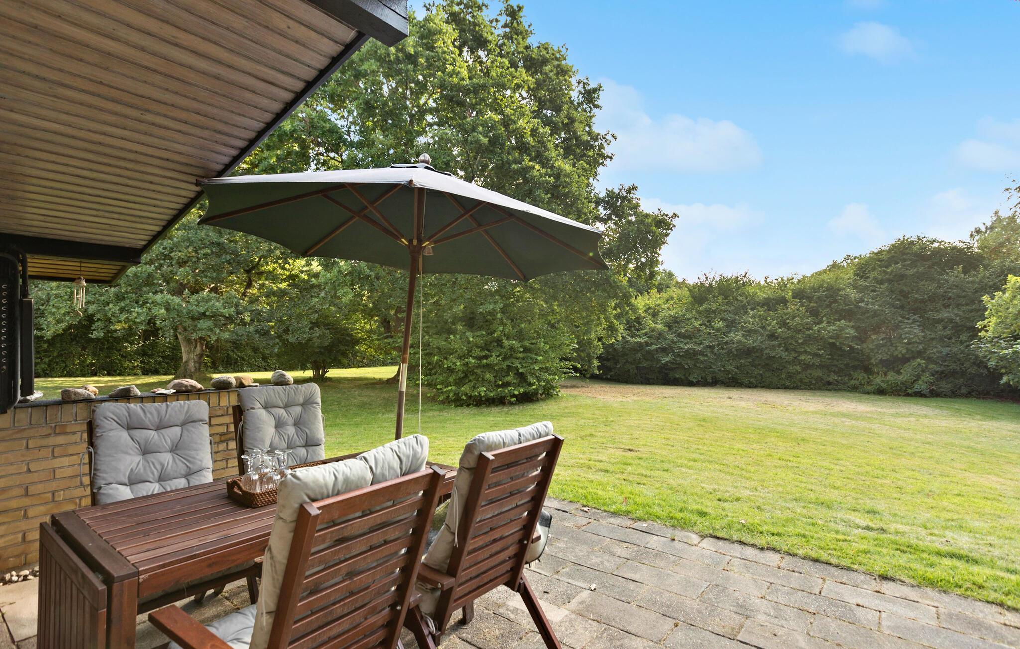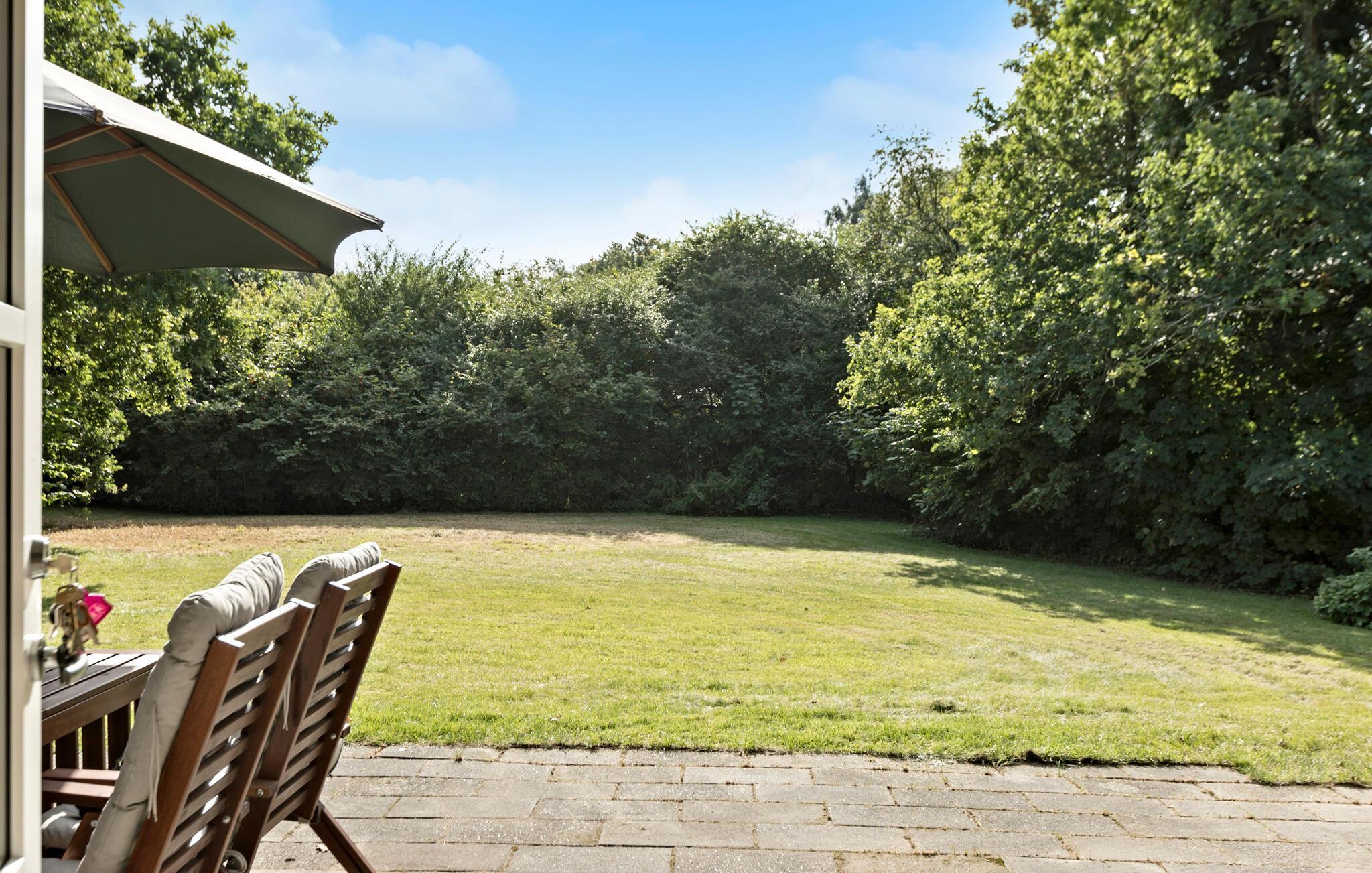 Das Haus liegt auf einem großen Grundstück mit einem parkähnlichen Charakter und großen Bäumen, fast wie eine Lichtung im Wald. Oft kommen Rehe, Fasane und Eichhörnchen zu Besuch, und es gibt hier auch eine reiche Vogelwelt zu bewundern. Genießen Sie die Ruhe und Natur von der Lounge-Sitzgruppe auf der Terrasse aus oder während Sie Ihre Mahlzeit am Gartentisch genießen.