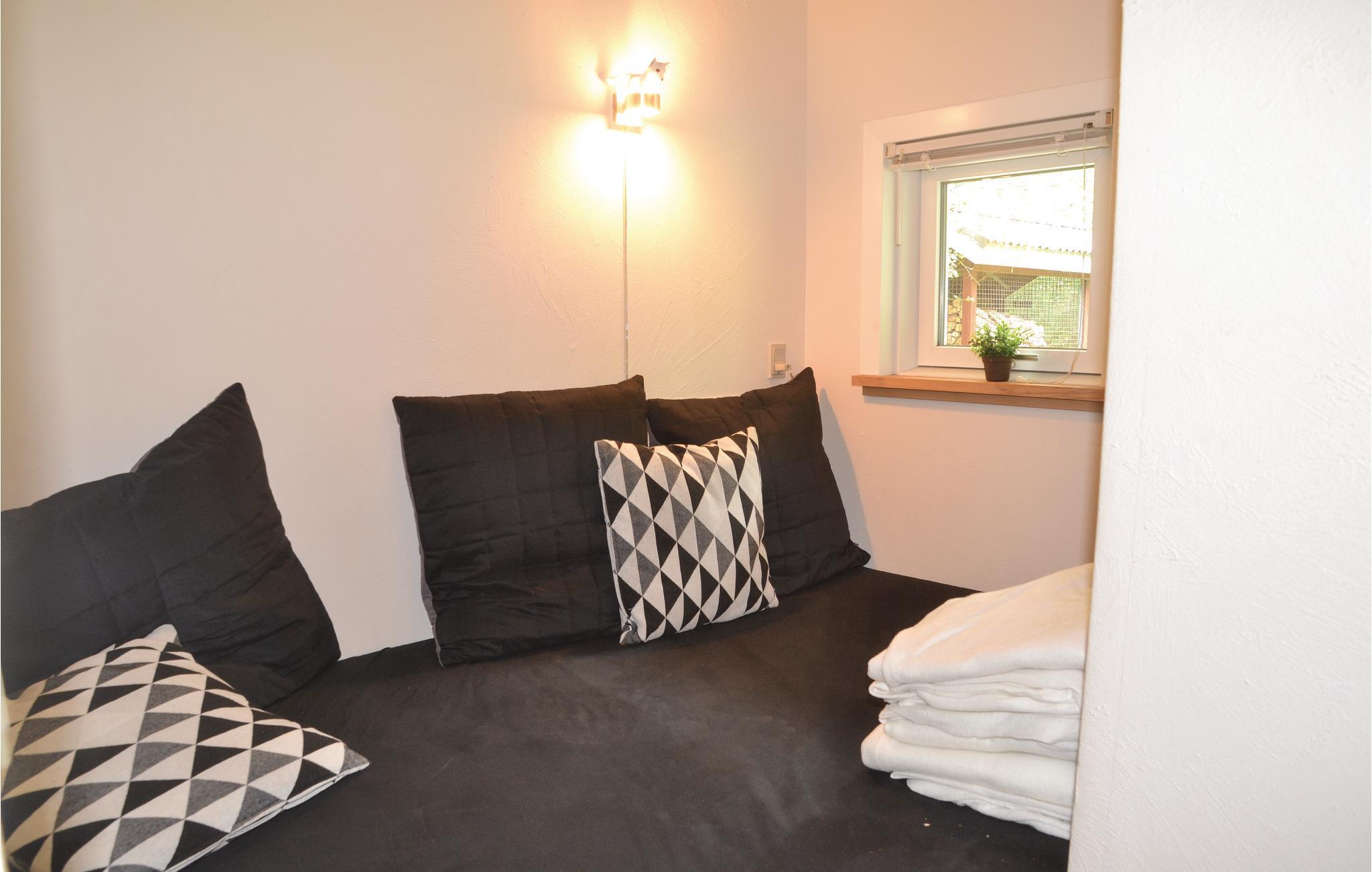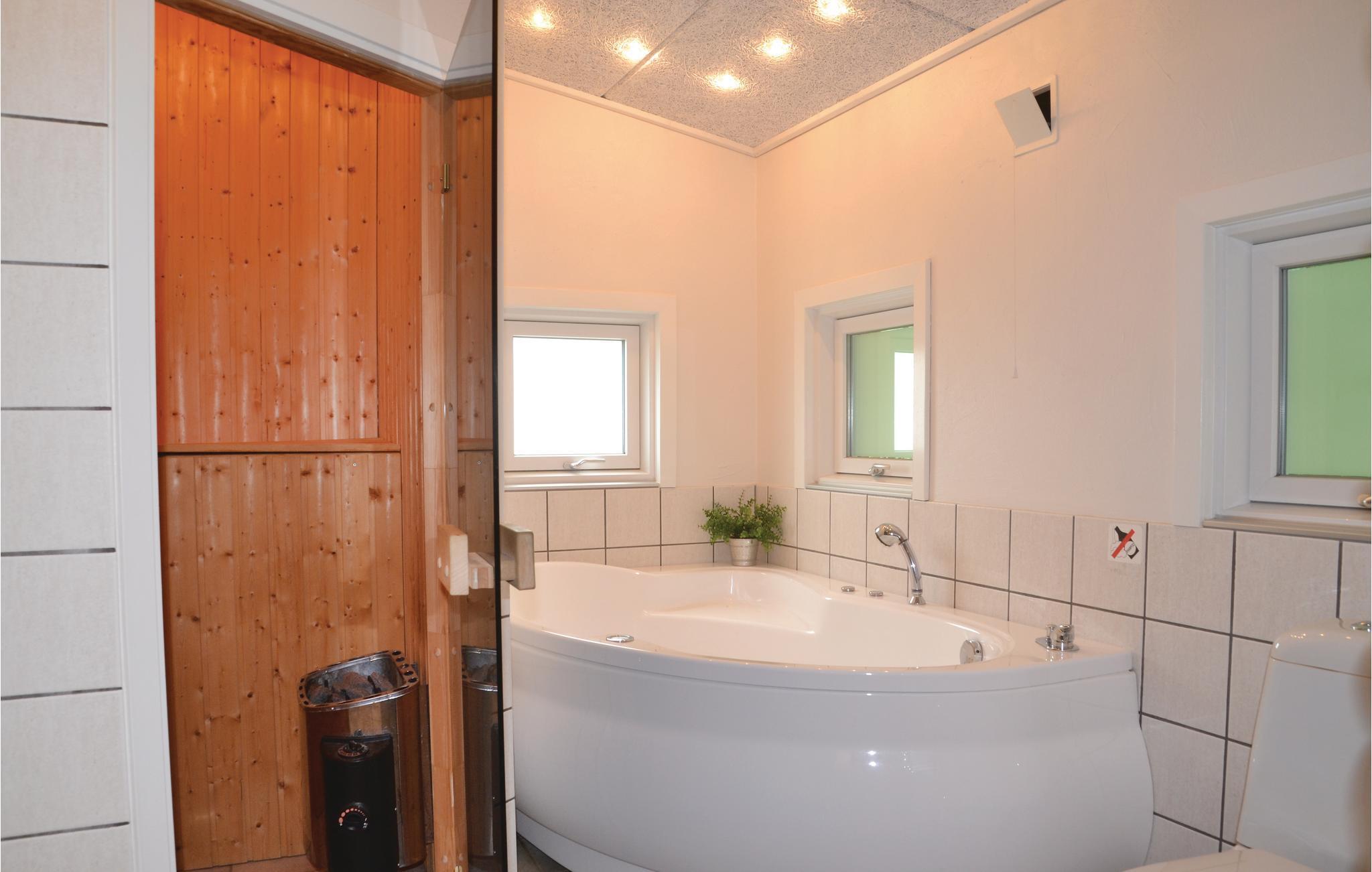 Das gepflegte Ferienhaus liegt auf einem sichtgeschützten Grundstück mitten in einer alten Freizeithaussiedlung Kvies. Die Einrichtung ist persönlich und behaglich. Direkt an das große Badezimmer mit Massagewanne schließt sich die Sauna an. Die Wohnküche hat eine gute Einrichtung und hier ist auch ein Kaminofen. Direkt davor zu erreichen ist eine Terrasse unter Dach. Über Fußwege kommen Sie zum See, wo Sie gut schwimmen und vor allen die kleinen Kinder gute Gelegenheiten zum Planschen finden werden. Das Wasser ist nicht sehr tief. Am See liegt auch das sehr beliebte Pfannkuchenhaus (Pandekagehuset) mit einer reichen Auswahl an süßen Leckereien, besonder Holländischen Pfannkuchen. Für Ausflüge möchten wir Legoland und den Givskud Zoo empfehlen, sie liegen nur eine halbe Stunde entfernt. Nahe bei Varde liegt auch der Park Tambours Have mit besonderen Pflanzen, Bächlein, Holzfiguren und schönem Ambiente.