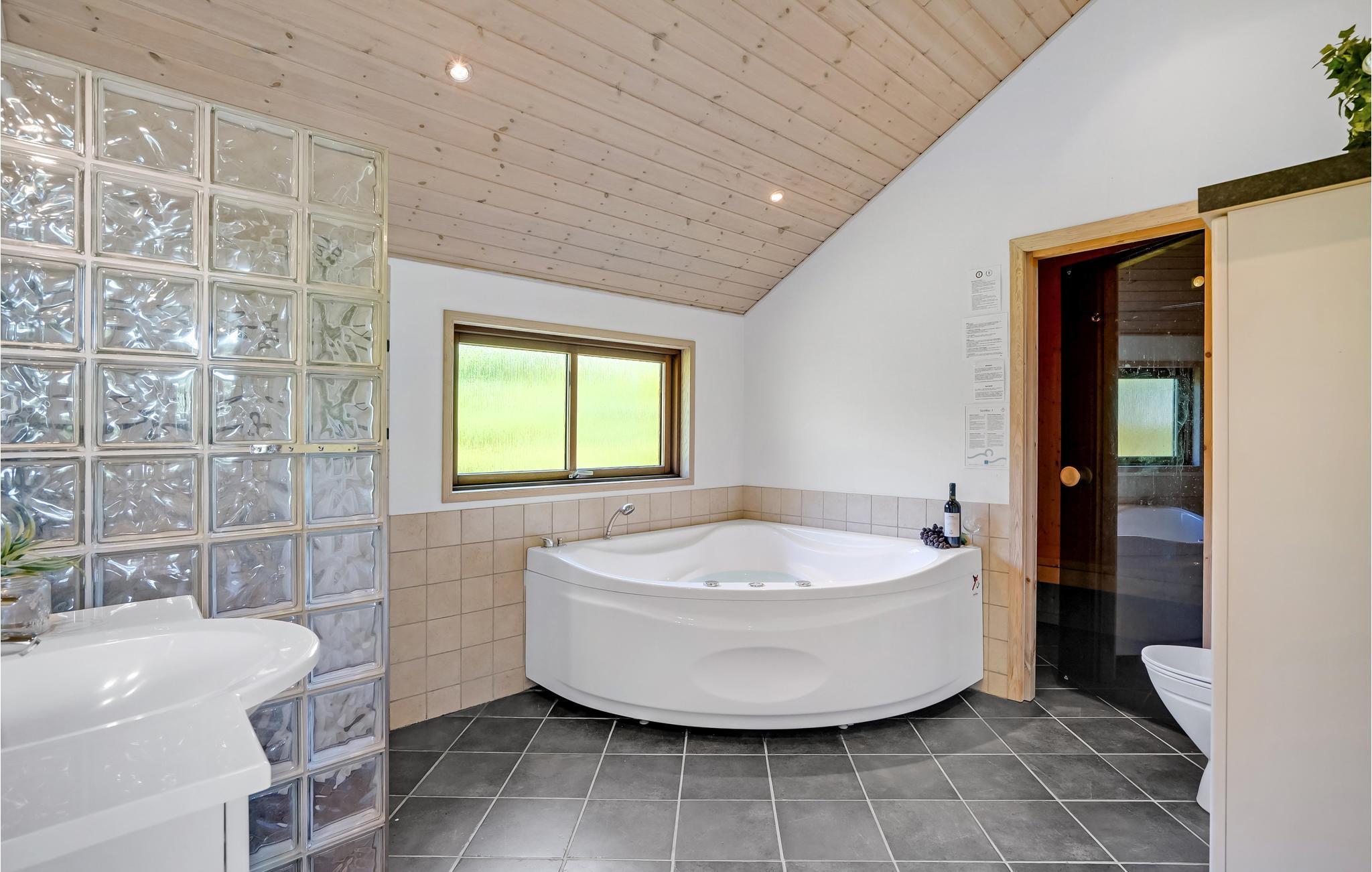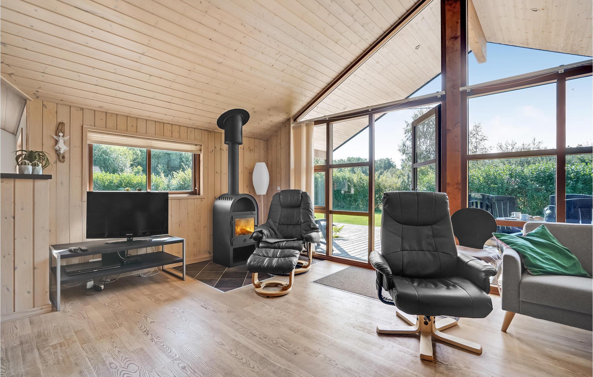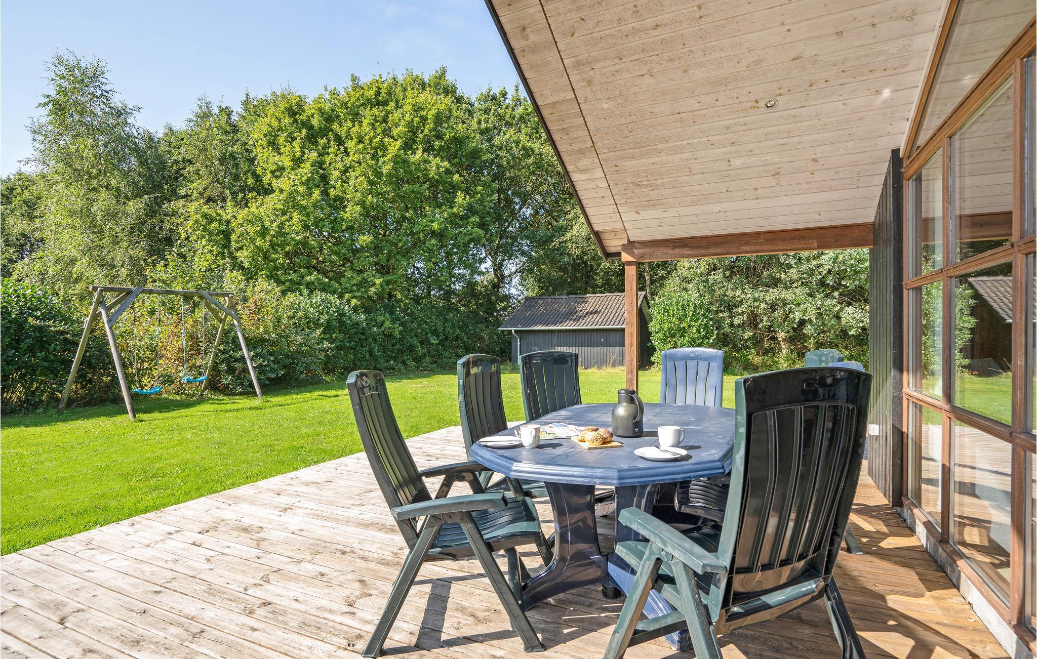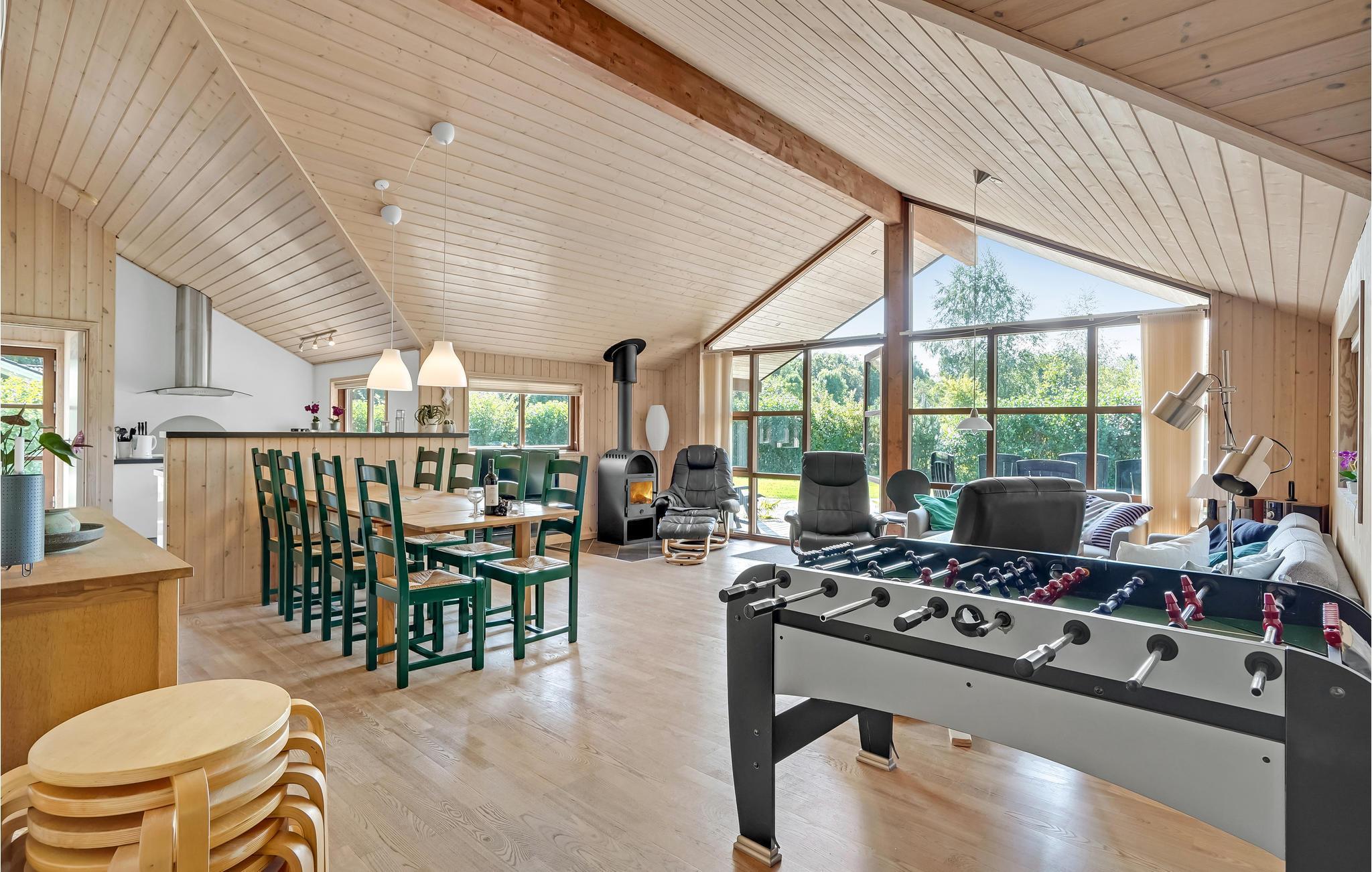 Auf einem sehr schönen und ungestörten Grundstück, das am Rande bewachsen ist, liegt dieses wunderbar große und gut ausgestattete Haus. Hier ist auch für 2 Familien genügend Platz und in der geräumigen Wohnküche haben Sie einen gemütlichen Kaminofen sowie eine Klimaanlage. Das Haus ist drinnen wie draußen sehr kinderfreundlich, mit Schaukel und Sandkasten. Kvie Sø ist ein schönes Urlaubsgebiet, wo alles rings um den See gebaut ist und ein Naturpfad zum Pfannkuchenhaus führt, wo Sie gut essen können. In der gegend gibt es gute Angelmöglichkeiten, und wenn die Fische anbeißen, können Sie ein leckeres Abendessen auf dem Grill zubereiten.