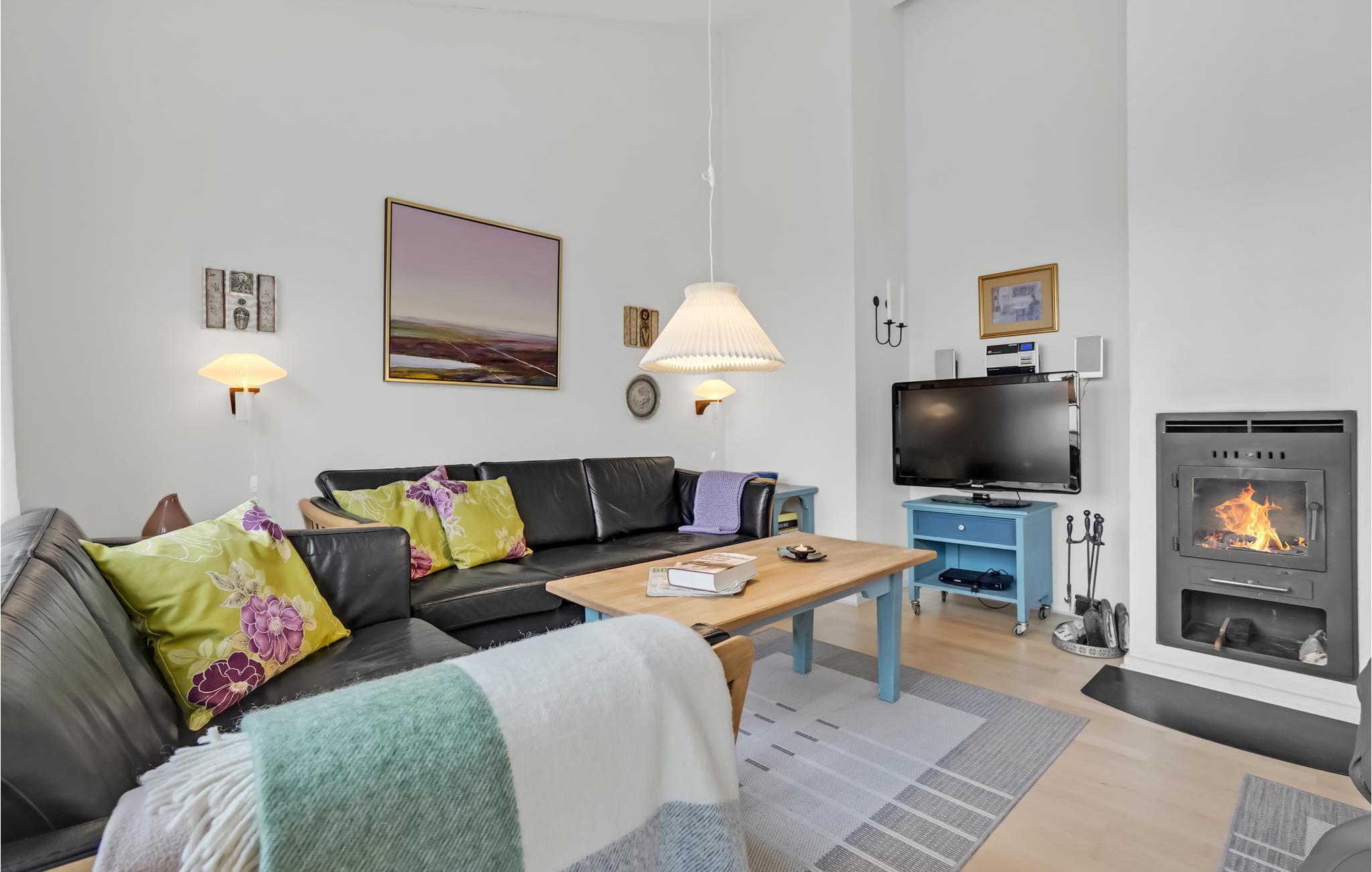 Das Haus empfängt Sie in guter Lage in fußläufiger Entfernung zum Meer. Lassen Sie in den hellen Räumen die Seele baumeln, die mit der wohnlichen Einrichtung und freundlichen Farben den idealen Rahmen für Ihre Entspannung bilden. Der ansprechende Wohnbereich ist dafür eingerichtet, dass Sie hier gemütliche gemeinsame Stunden verbringen können, etwa beim gemeinsamen Essen oder abends auf dem bequemen Sofa beim Prasseln der Flammen im Kaminofen. Entspannen Sie nach einem aktiven Tag in der hauseigenen Sauna.