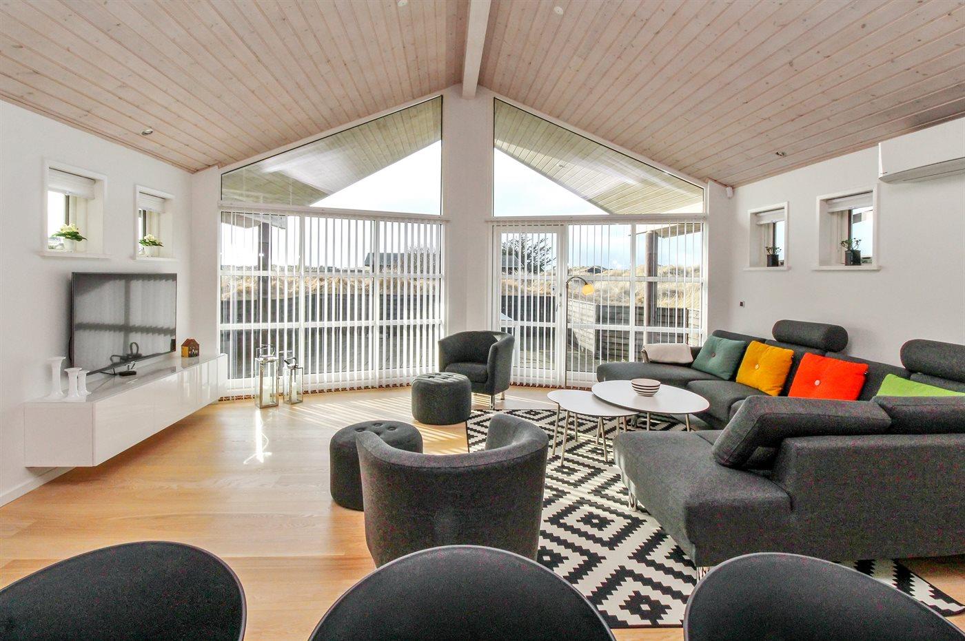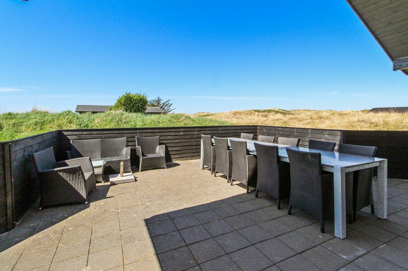 The holiday home is situated on a 2500 m² natural site. Situated 400 m from the sea. Nearest shop is 3000 m away. You will find a golf course in a distance of 3500 m. A 50 m² terrace belong to the holiday home. Furthermore the house has a 15 m² covered terrace. You find a tool shed. Sandbox. Trampoline. Plug for charging electric car is available. Charging socket type 2. With 11 kW power output. Parking place by the holiday home.