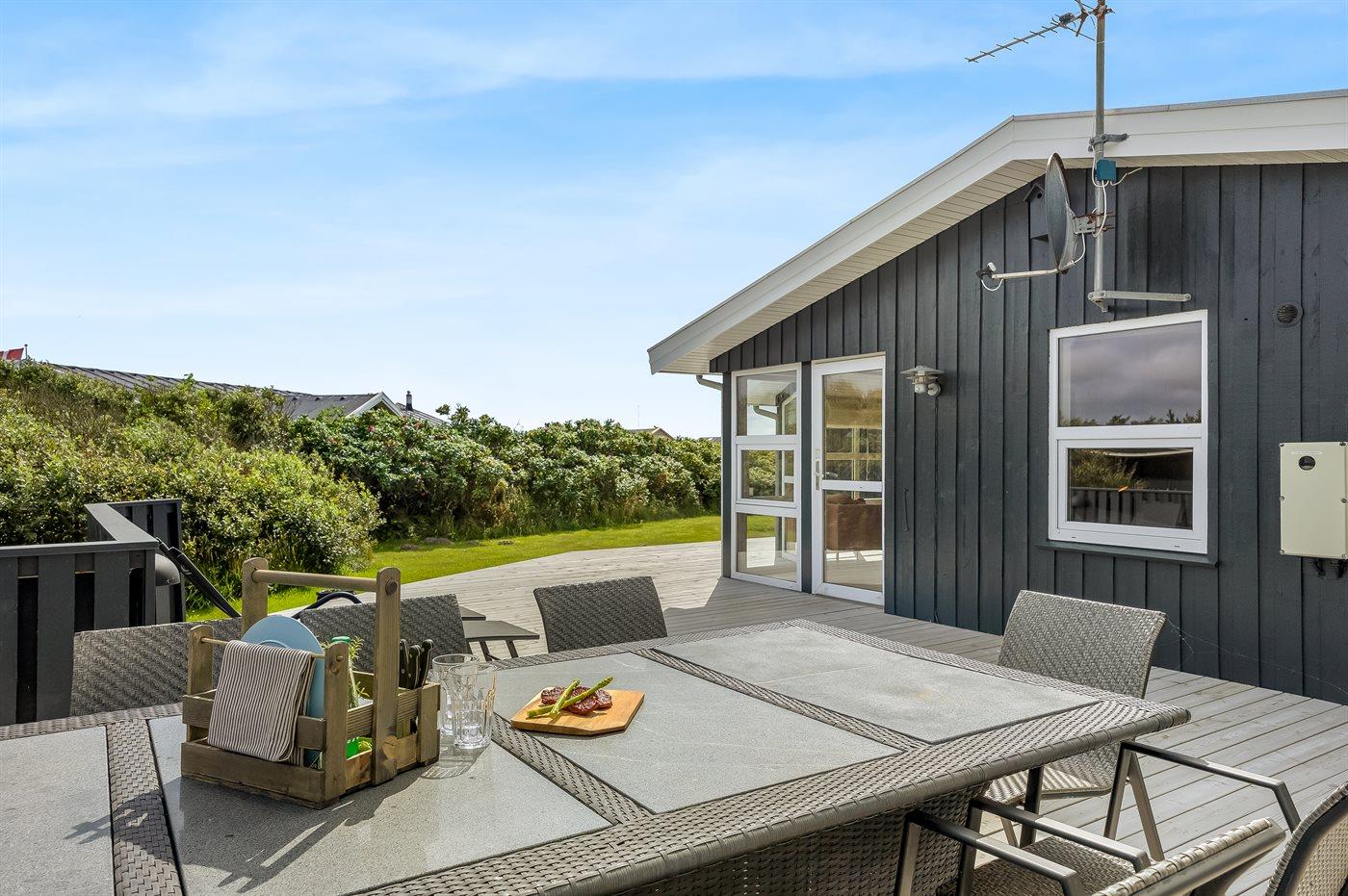 The holiday home is situated on a 2000 m² natural site. Situated 200 m from the sea. Nearest shop is 1000 m away. A 70 m² terrace belong to the holiday home. Parking place by the holiday home.
