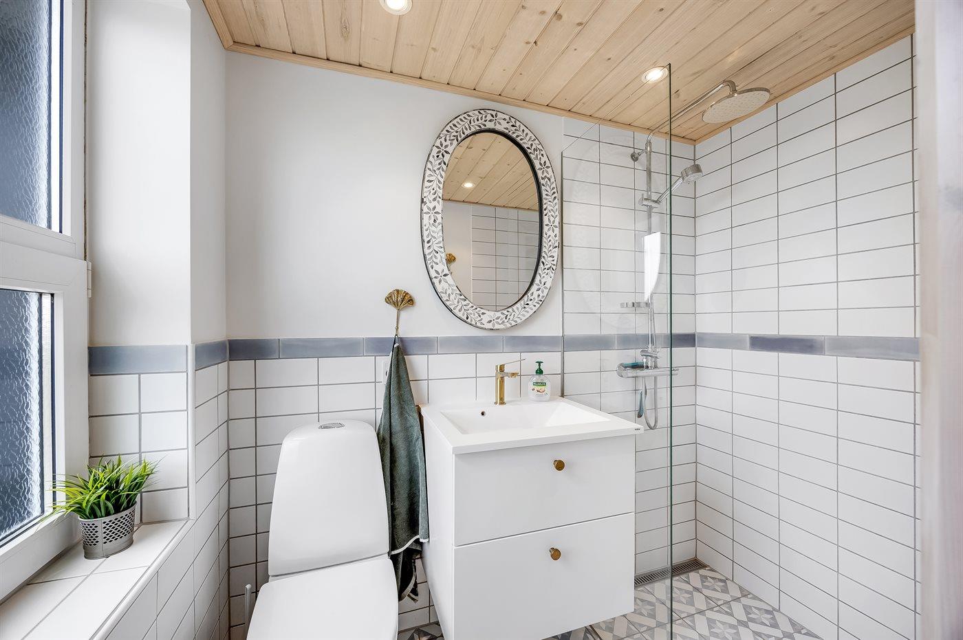 There are 2 bathrooms with shower and 2 toilets. There is floor heating in 2 bathrooms.