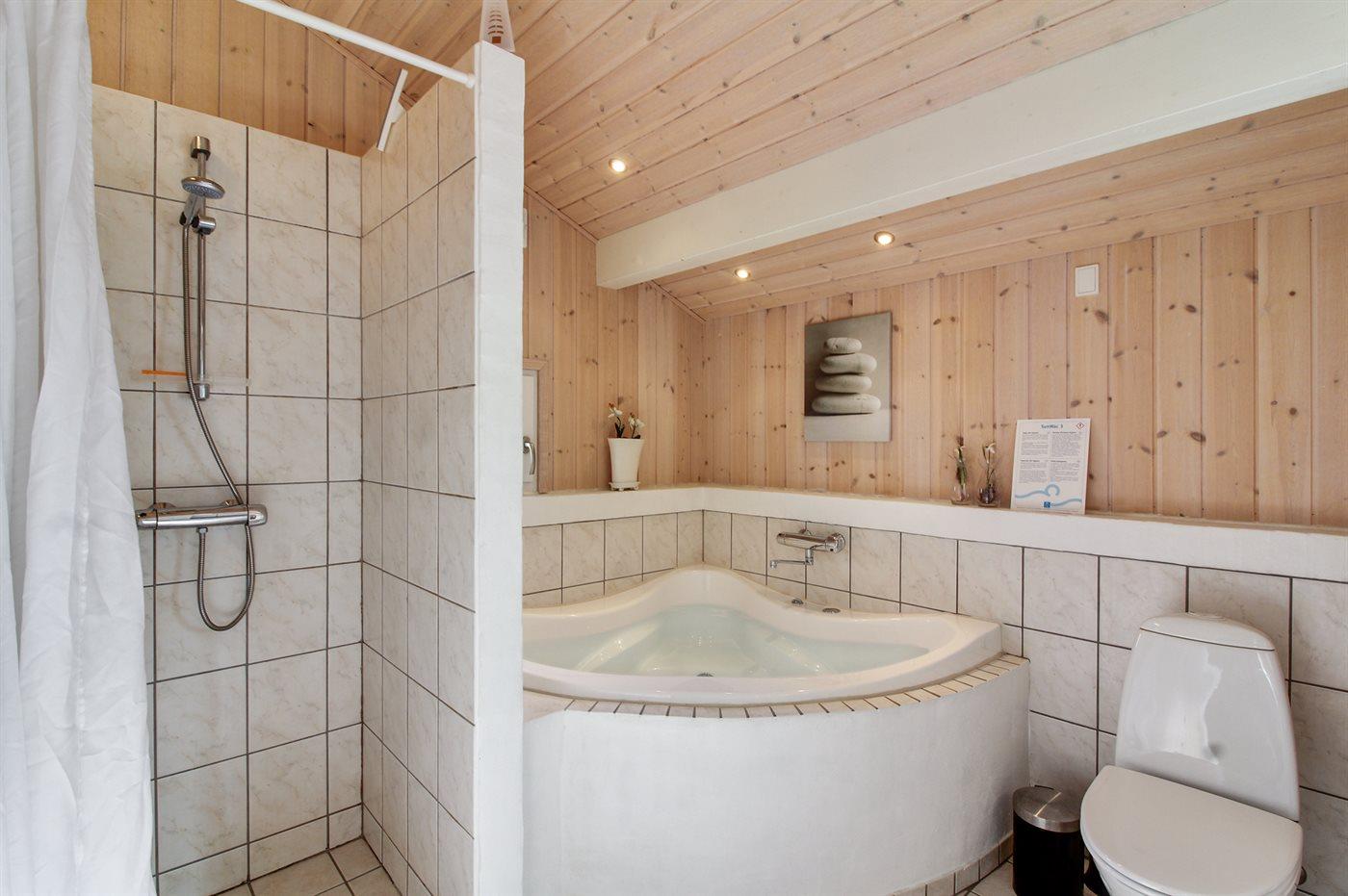 There is 1 bathroom with shower cabinet and 2 toilets, hereof 1 guest bathroom. There is floor heating in 1 bathroom. There is floor heating in the guest bathroom. The sauna offers opportunity for relaxation.
