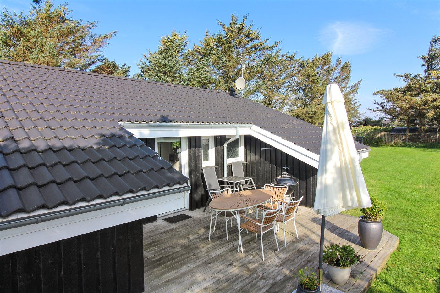 The holiday home is situated on a 800 m² natural site. Situated 400 m from the sea. Nearest shop is 400 m away. A 12 m² terrace belong to the holiday home. Furthermore the house has a 16 m² covered terrace.