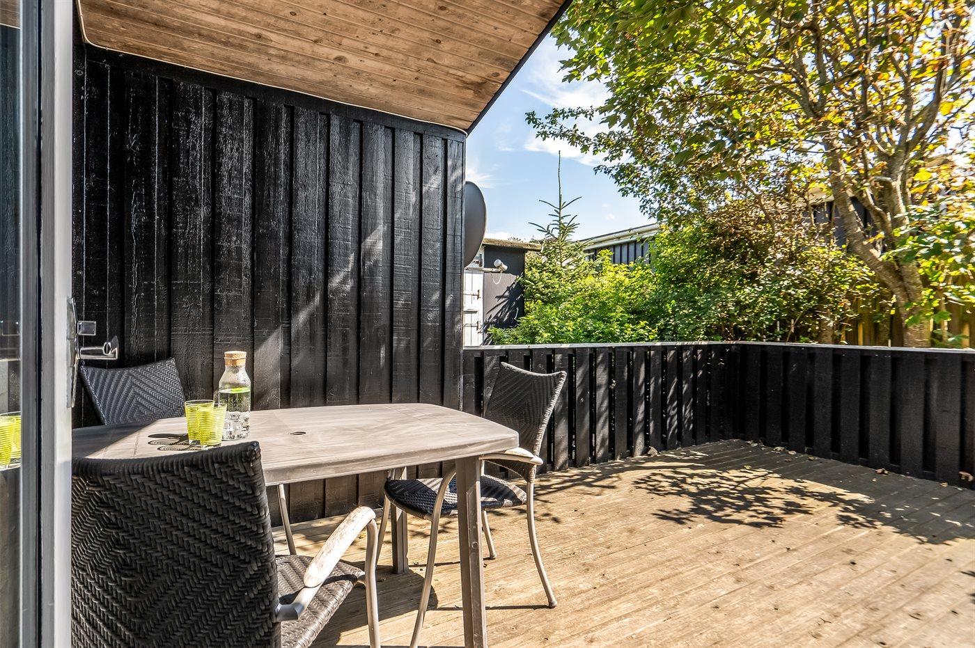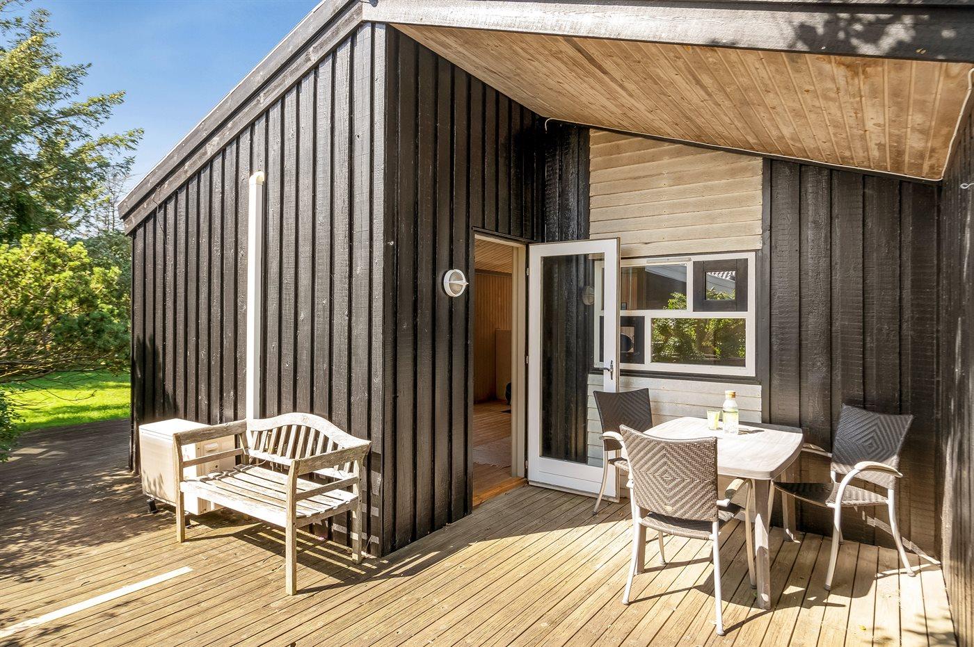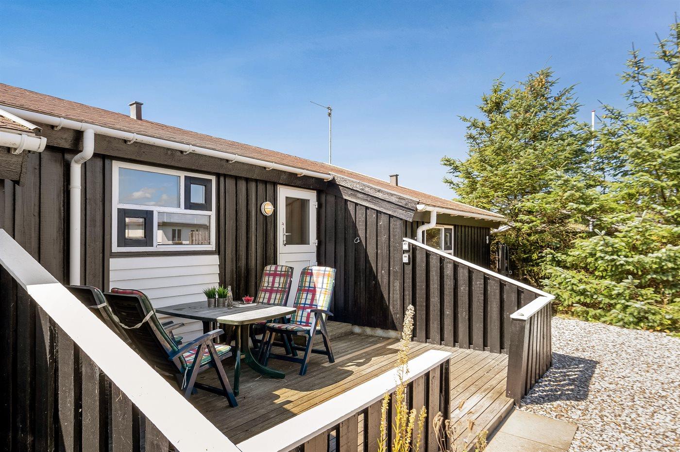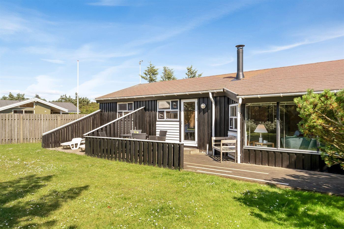 The holiday home is situated on a 952 m² natural site. Situated 450 m from the sea. Nearest shop is 400 m away. A 31 m² terrace belong to the holiday home. Furthermore the house has a 4 m² covered terrace. You find a tool shed. Parking place by the holiday home.