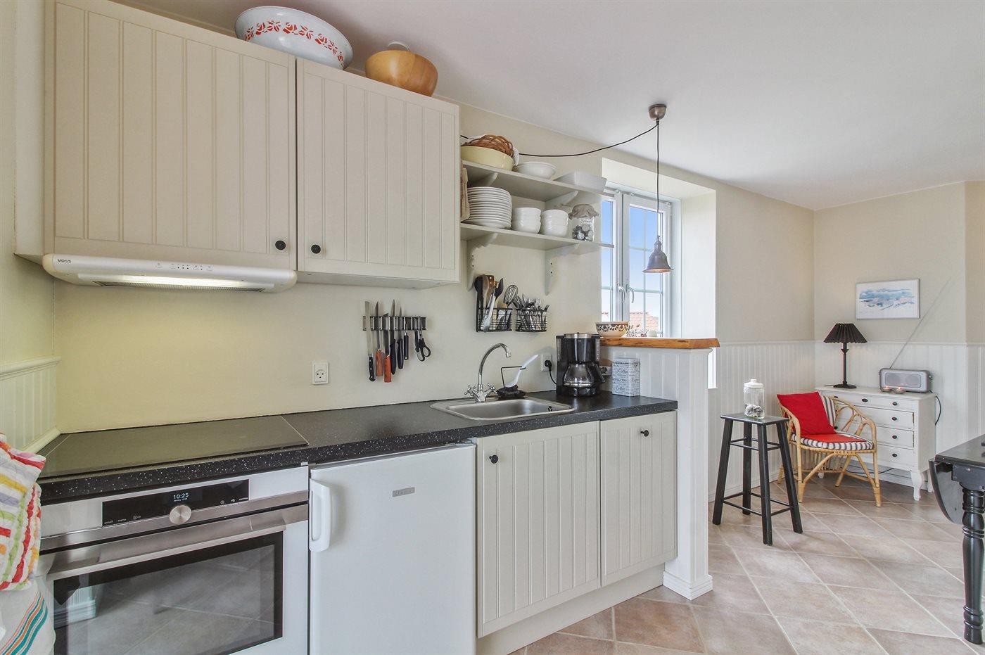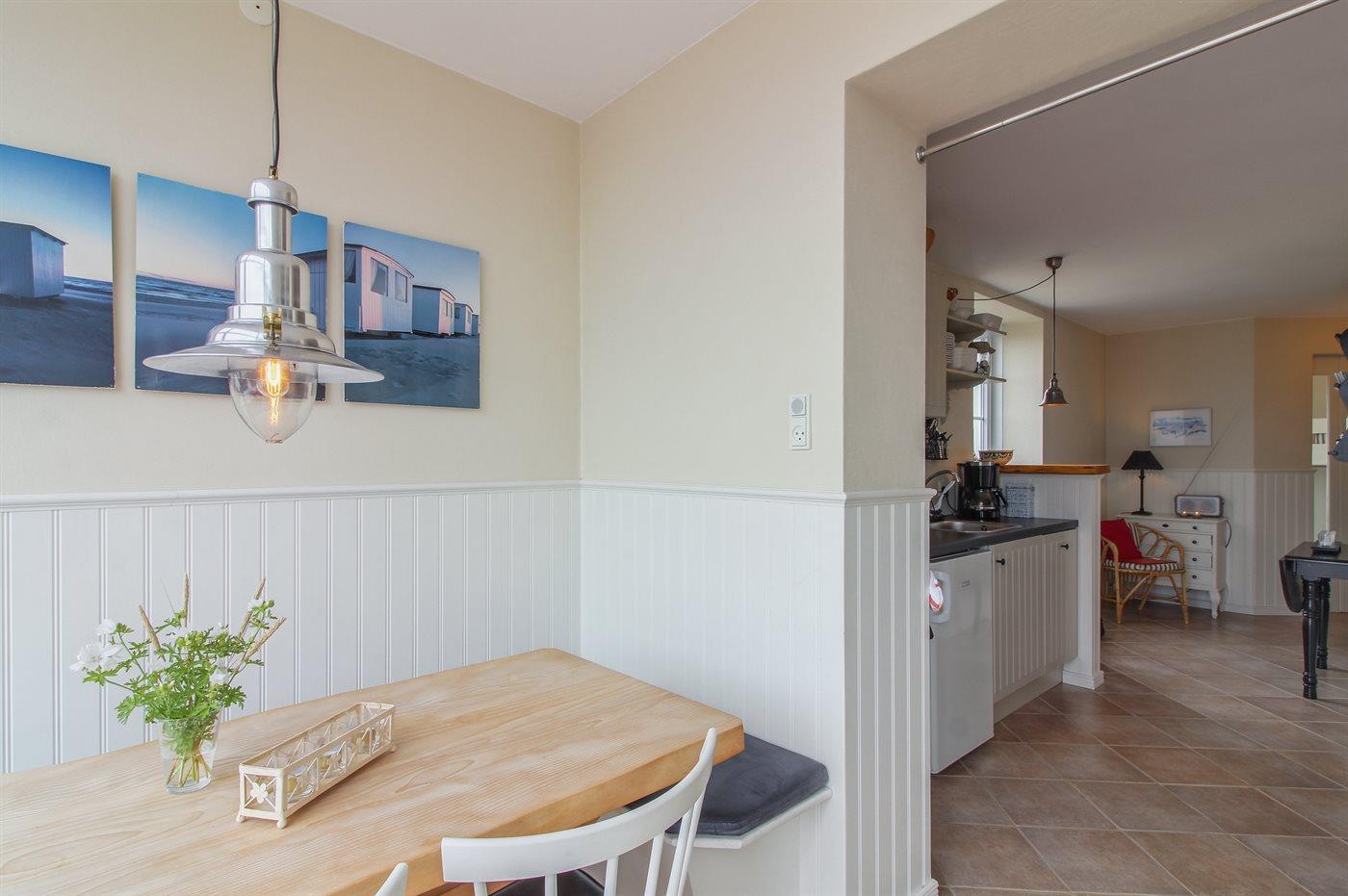 Holiday flat suitable for 4 persons . 2 of the beds is only suitable for older children (4-11 years). The holiday home is 45 m² and is build in 1922. In 2007 the holiday home was partial renovated. You can bring along 1 pet. Floor heating in all tiled floors. Freezer capacity of 8 litres.