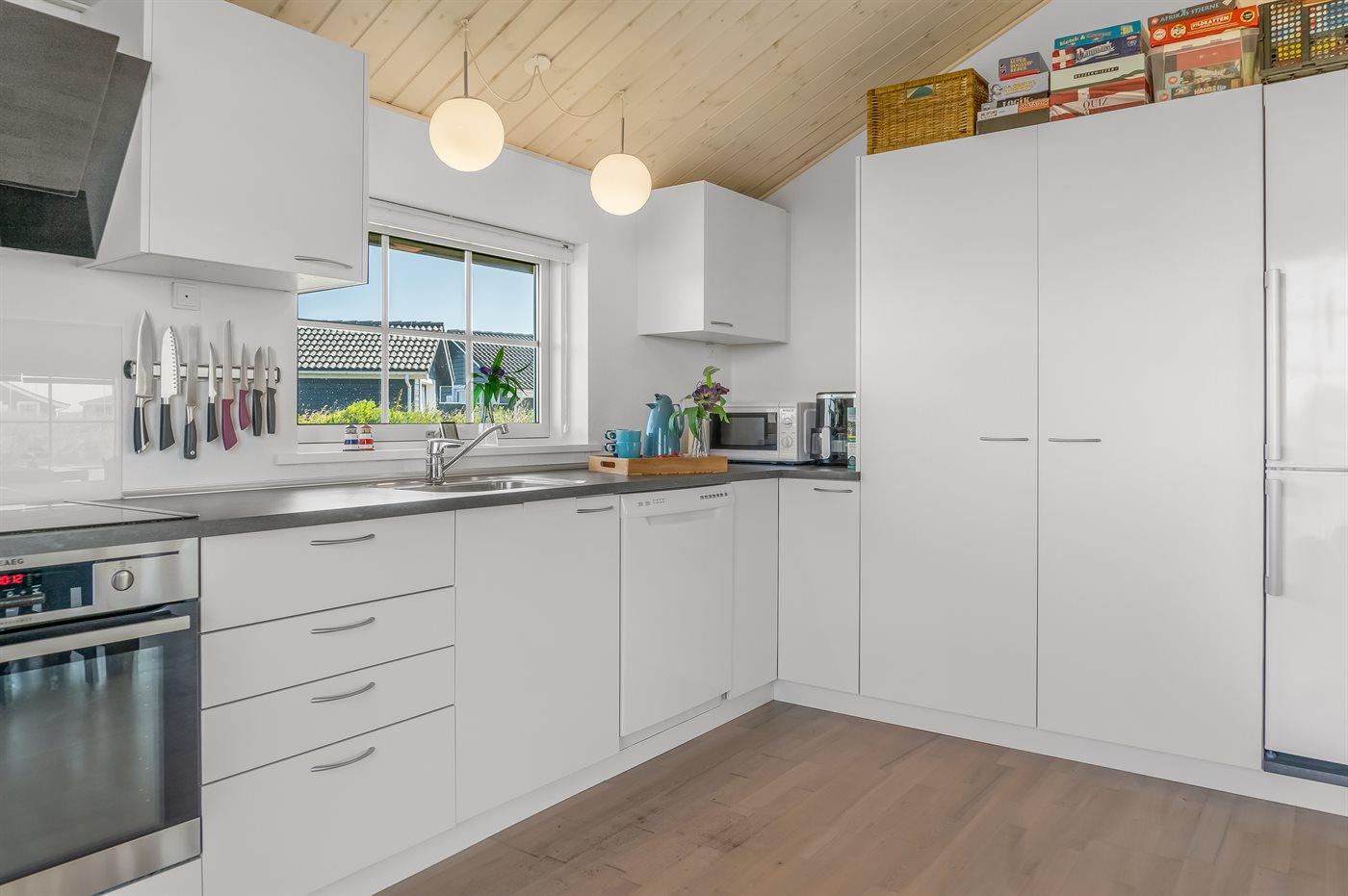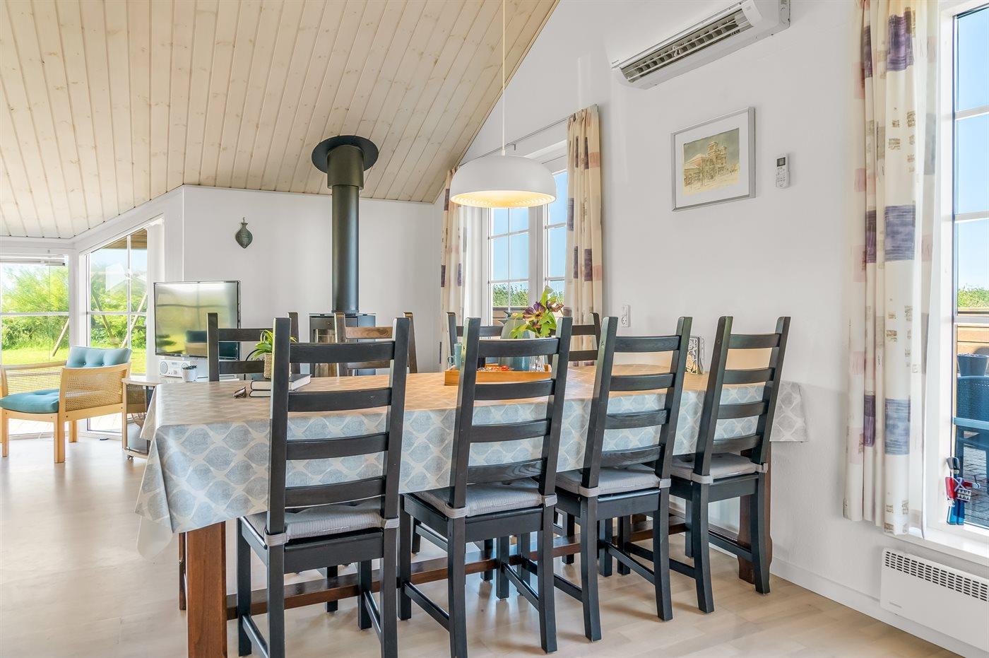Holiday home suitable for 6 persons as well as 1 child up to 3 years. The holiday home is 94 m² and is build in 2002. You can bring along 1 pet. The holiday home is equipped with energy-saving heat pump. Floor heating in all tiled floors. The holiday home has washing machine. Tumble dryer. Freezer capacity of 98 litres. Further more there is 1 wood-burning stove. For the youngest ones there is 1 high chair.
