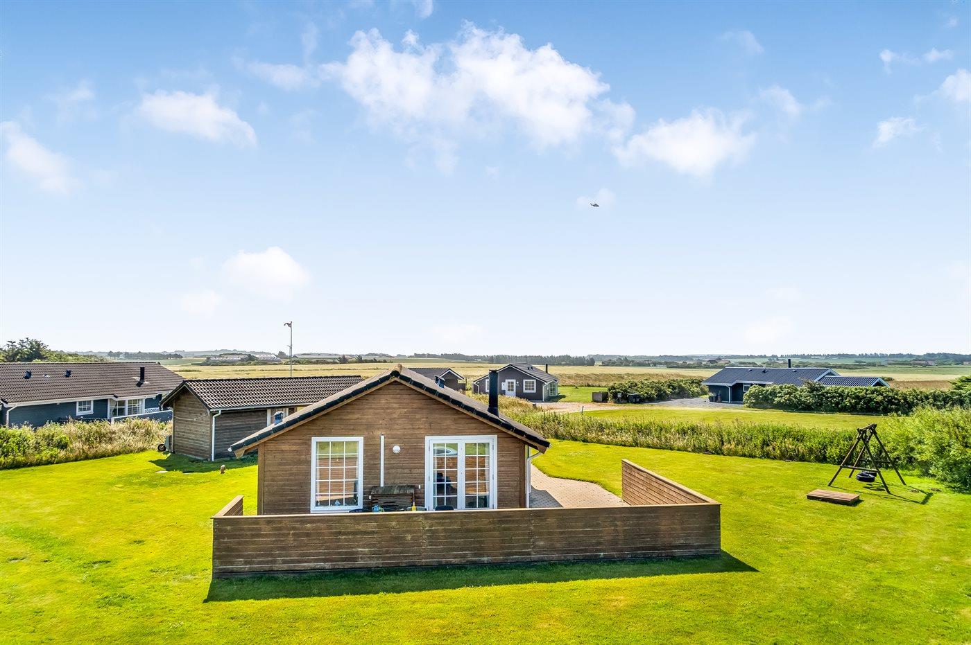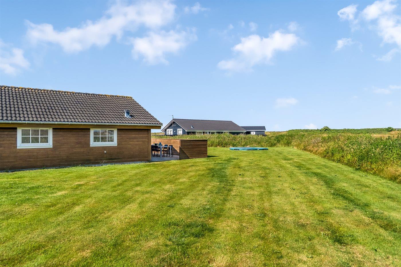 The holiday home is situated on a 1260 m² natural site. Situated 650 m from the sea. Nearest shop is 1400 m away. A 60 m² terrace belong to the holiday home. You find a tool shed. Swing. Sandbox. Trampoline. Carport is at your disposal. Plug for charging electric car is available. Parking place by the holiday home.