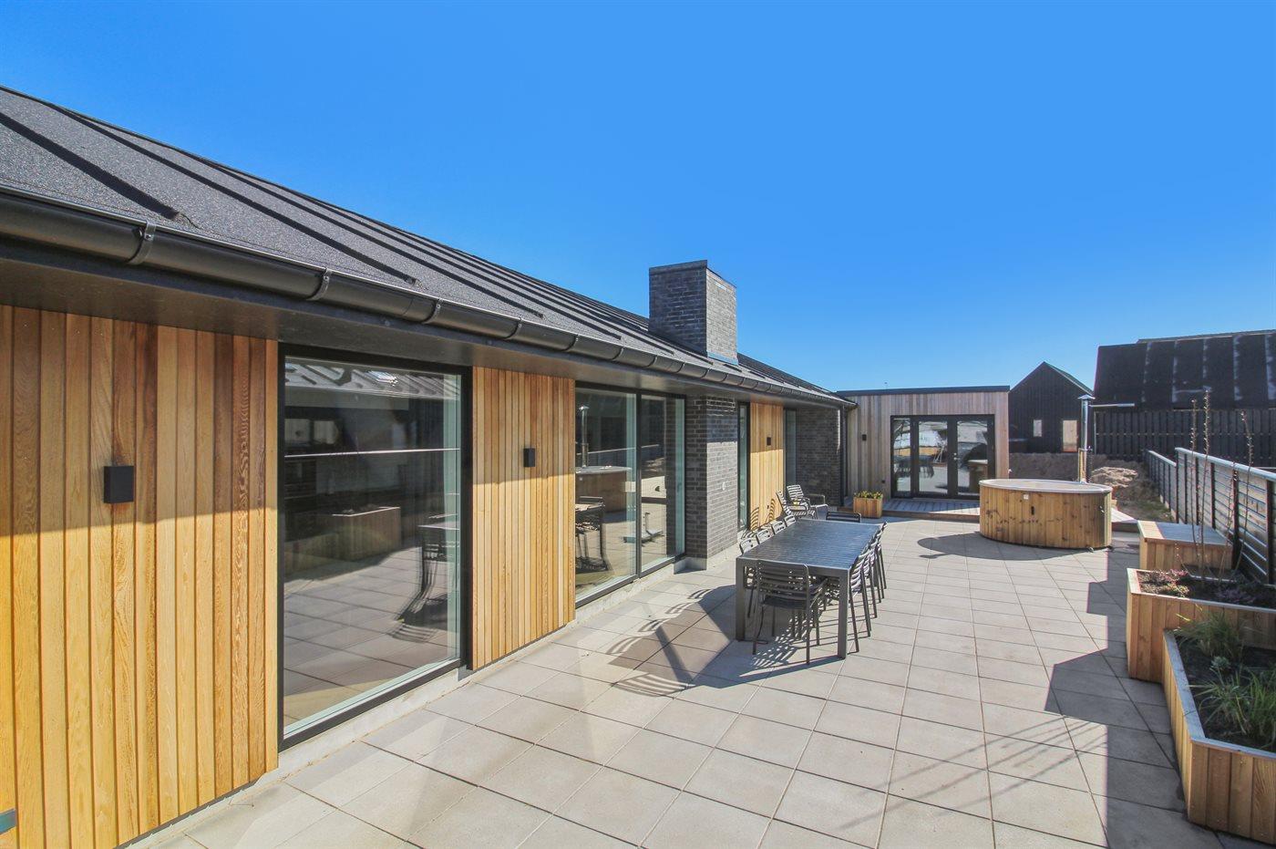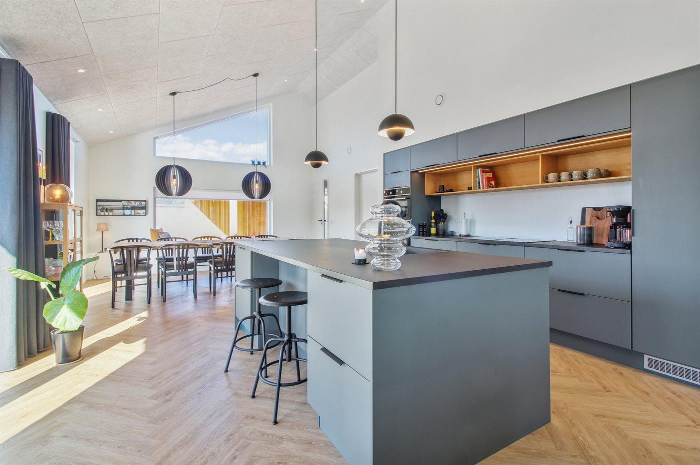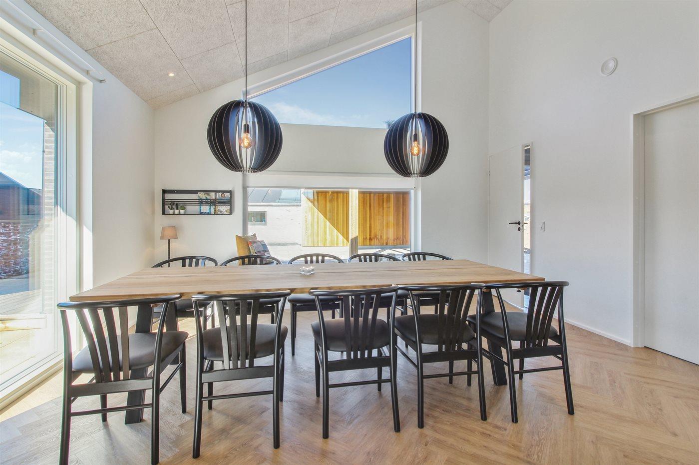 Holiday home suitable for 12 persons as well as 1 child up to 3 years. The holiday home is 175 m² and is build in 2023. No pets allowed. There is floorheating all over the holiday home. The holiday home has washing machine. Tumble dryer. Freezer capacity of 100 litres. Further more there is 1 wood-burning stove. For the youngest ones there is 1 high chair.