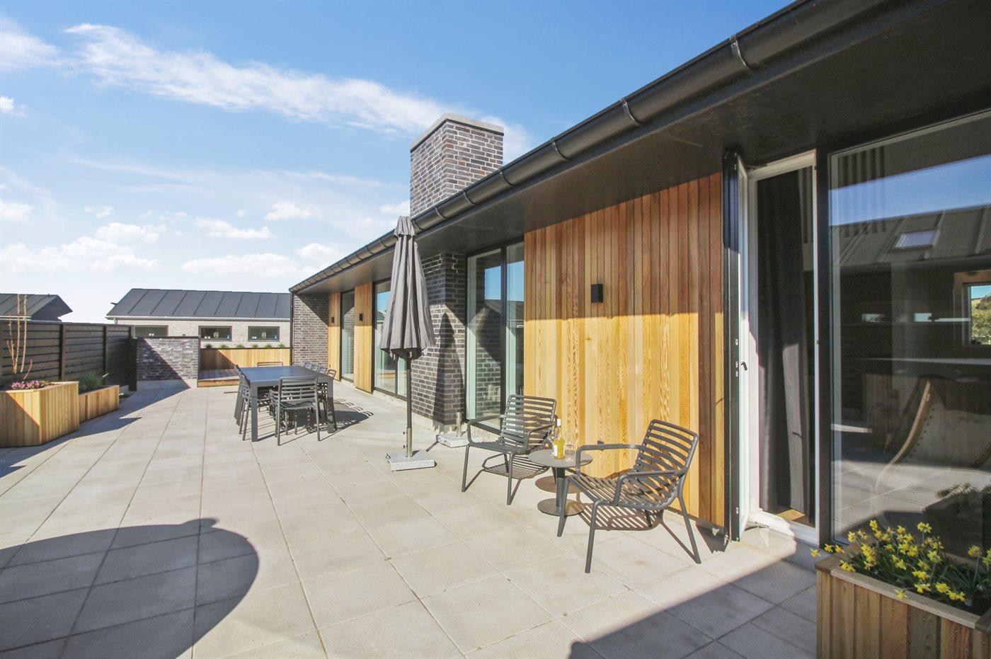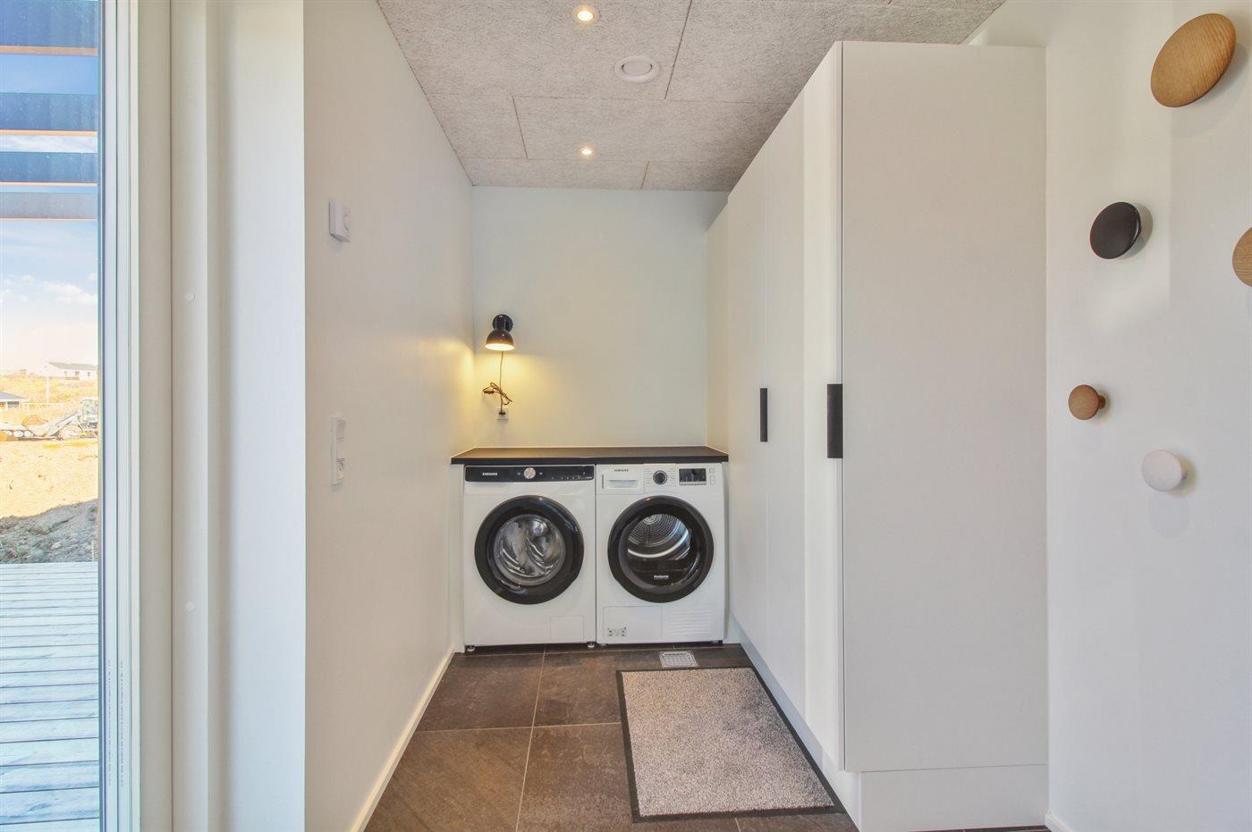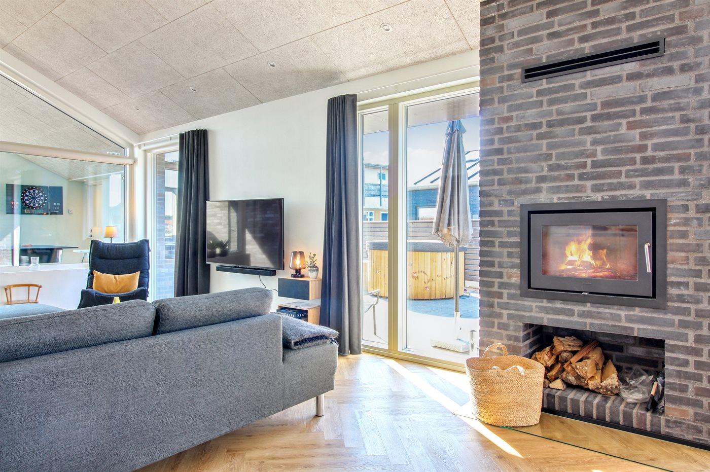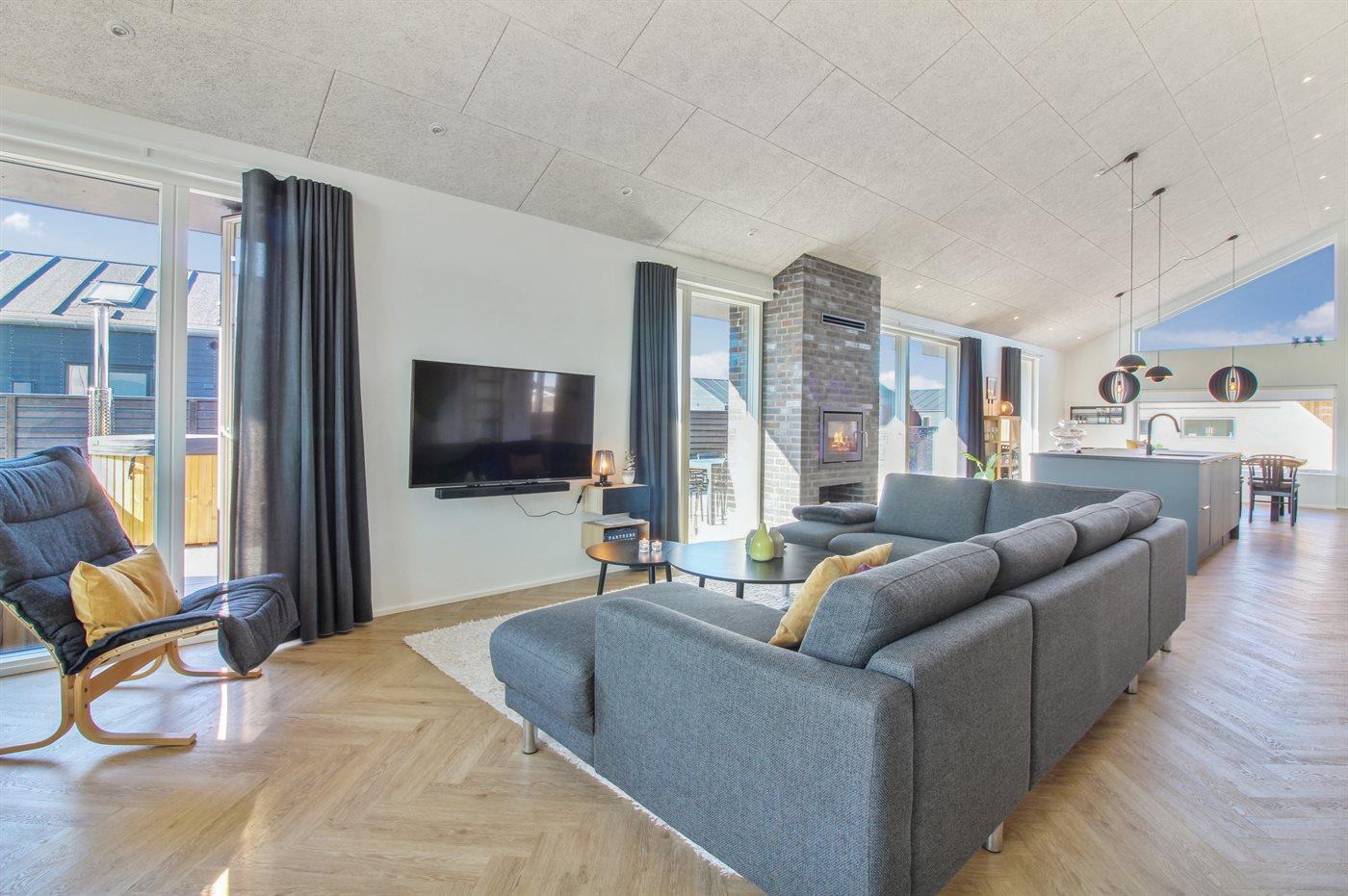 Holiday home suitable for 12 persons as well as 1 child up to 3 years. The holiday home is 175 m² and is build in 2023. No pets allowed. There is floorheating all over the holiday home. The holiday home has washing machine. Tumble dryer. Freezer capacity of 100 litres. Further more there is 1 wood-burning stove. For the youngest ones there is 1 high chair.