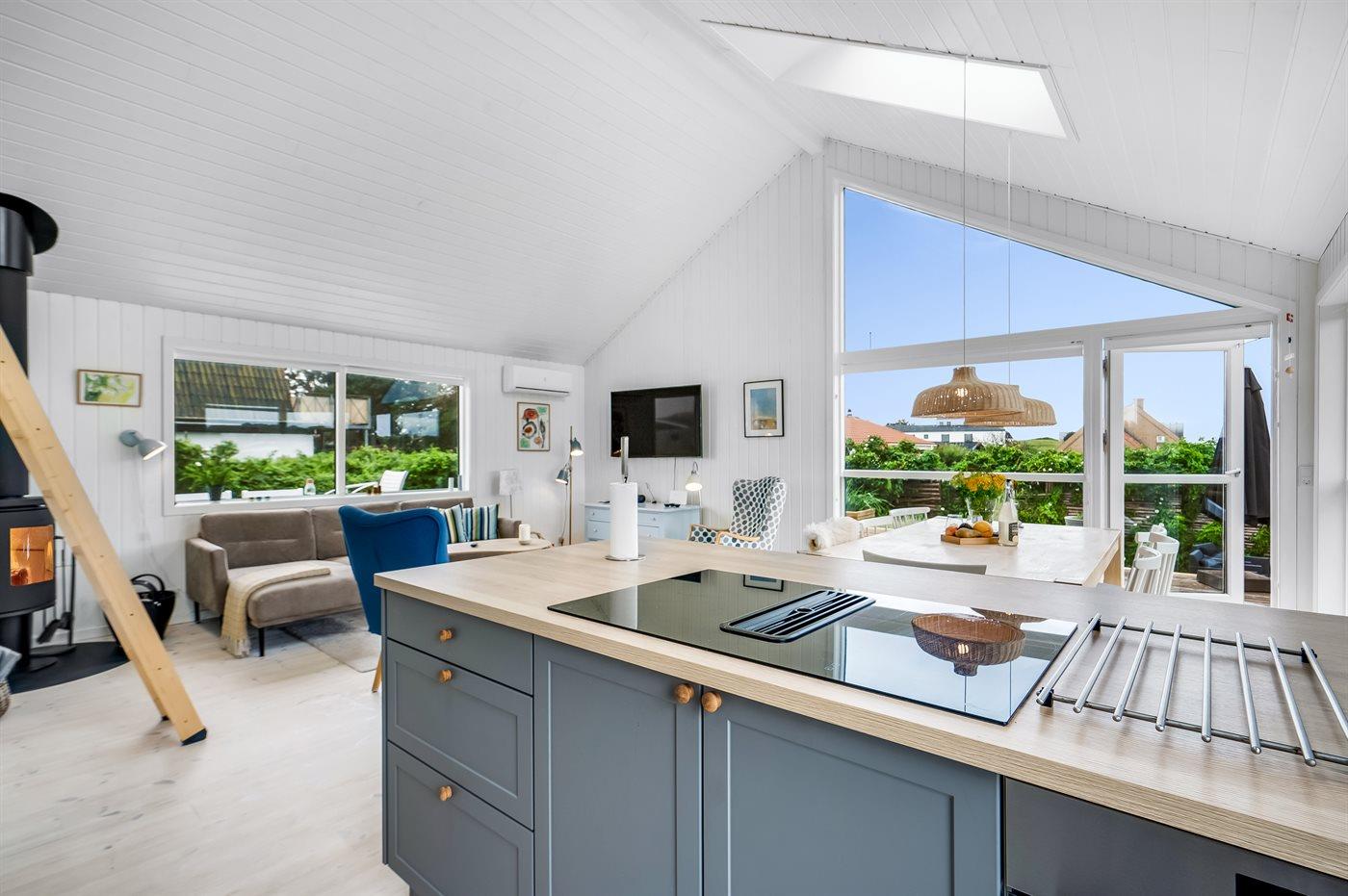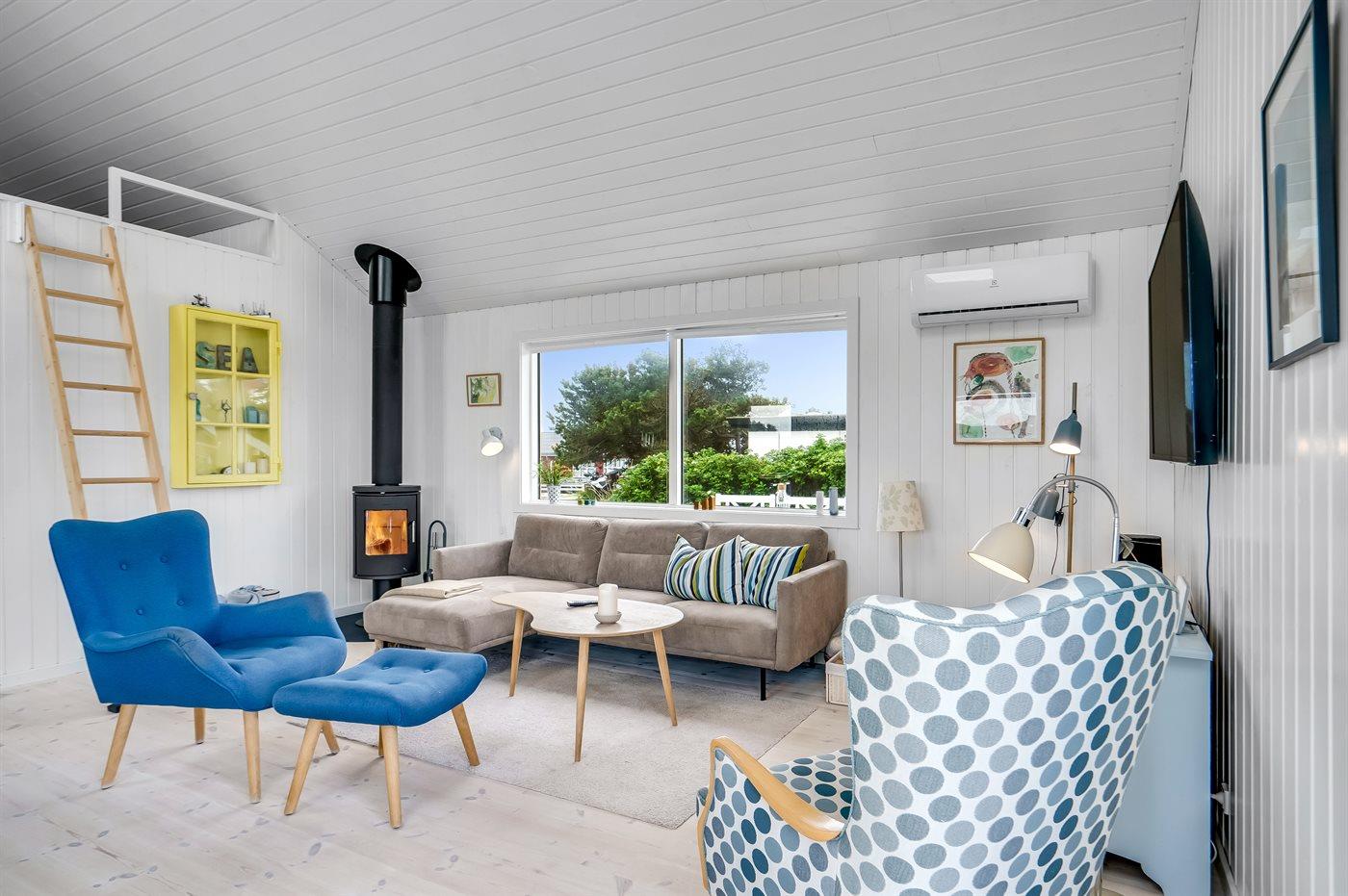 Holiday home suitable for 6 persons as well as 1 child up to 3 years. 2 of the beds is only suitable for older children (4-11 years). The holiday home is 68 m² and is build in 1969. In 2023 the holiday home was partial renovated. No pets allowed. The holiday home is equipped with 1 energy-saving air-to-air heat pump. The holiday home has washing machine. Freezer capacity of 50 litres. Further more there is 1 wood-burning stove. For the youngest ones there is 1 high chair.