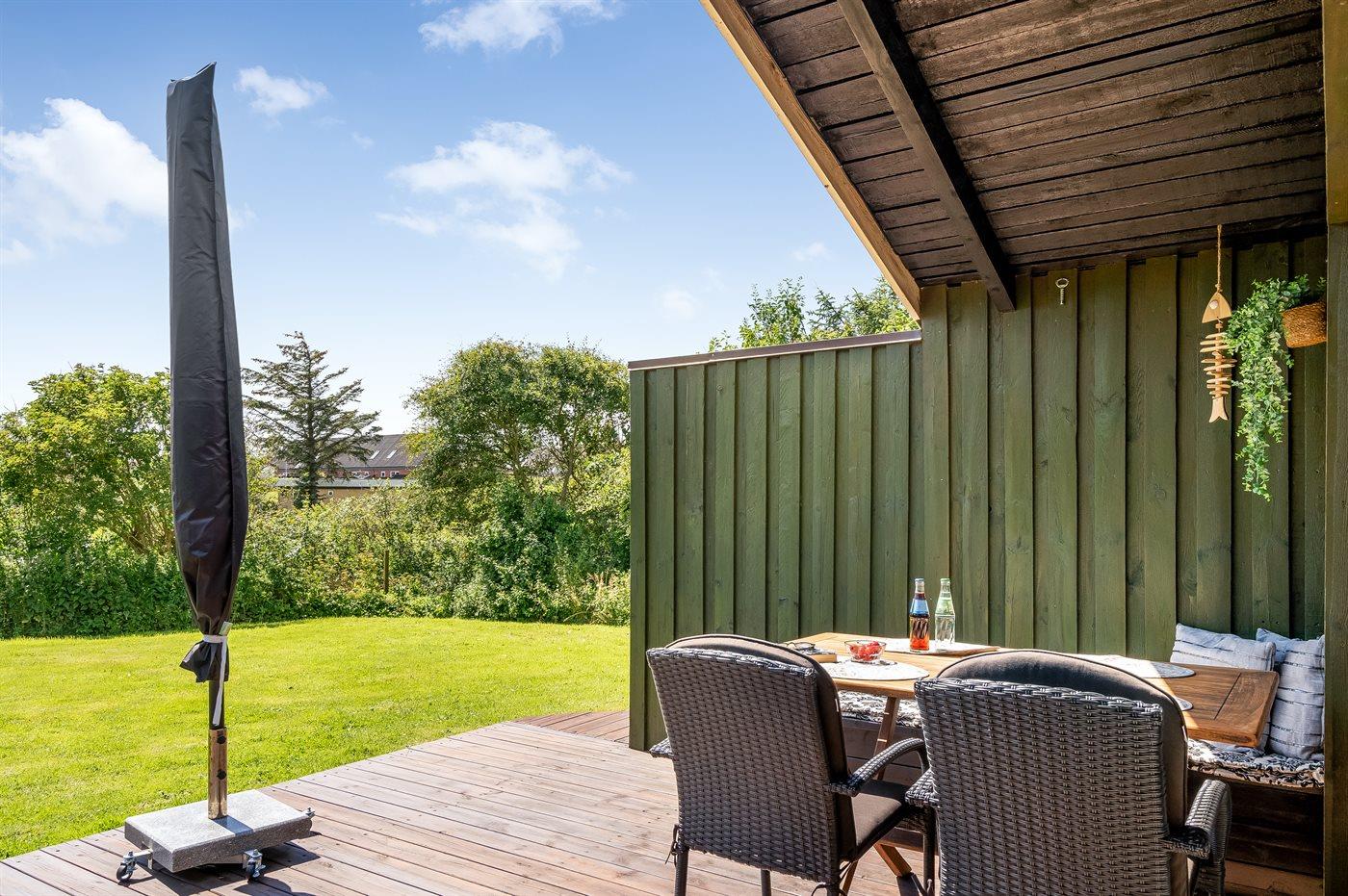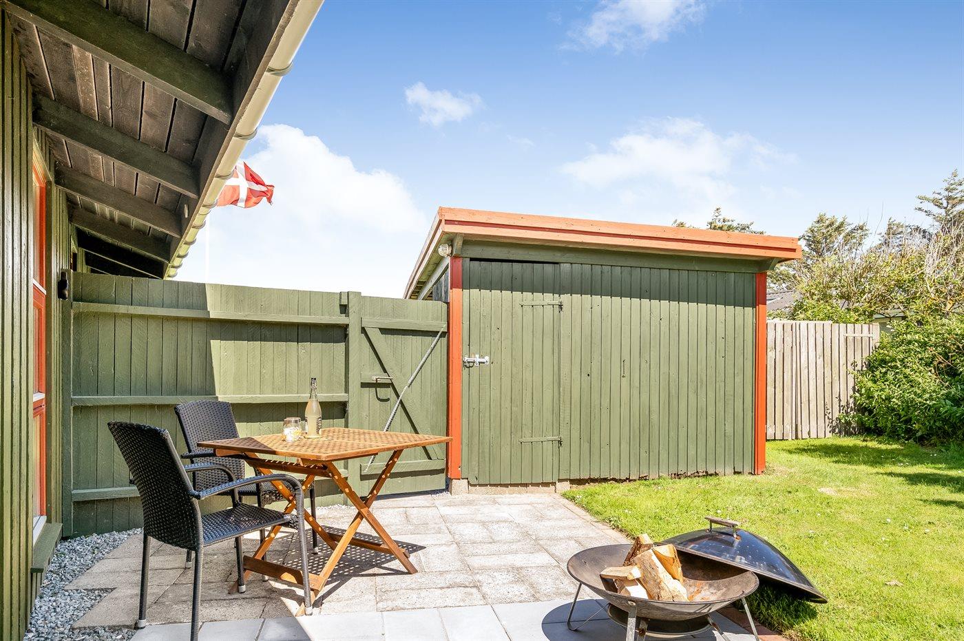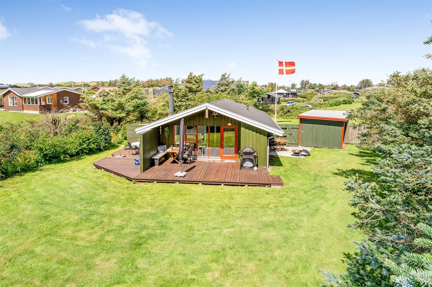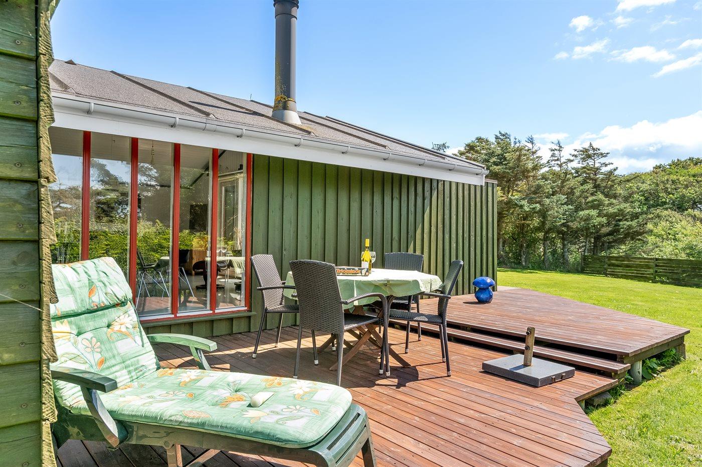 The holiday home is situated on a 1500 m² natural site. The site is fenced in. Situated 600 m from the sea. Nearest shop is 400 m away. A terrace belong to the holiday home. Furthermore the house has a covered terrace. You find a tool shed. Barbecue at your disposal. Parking place by the holiday home.