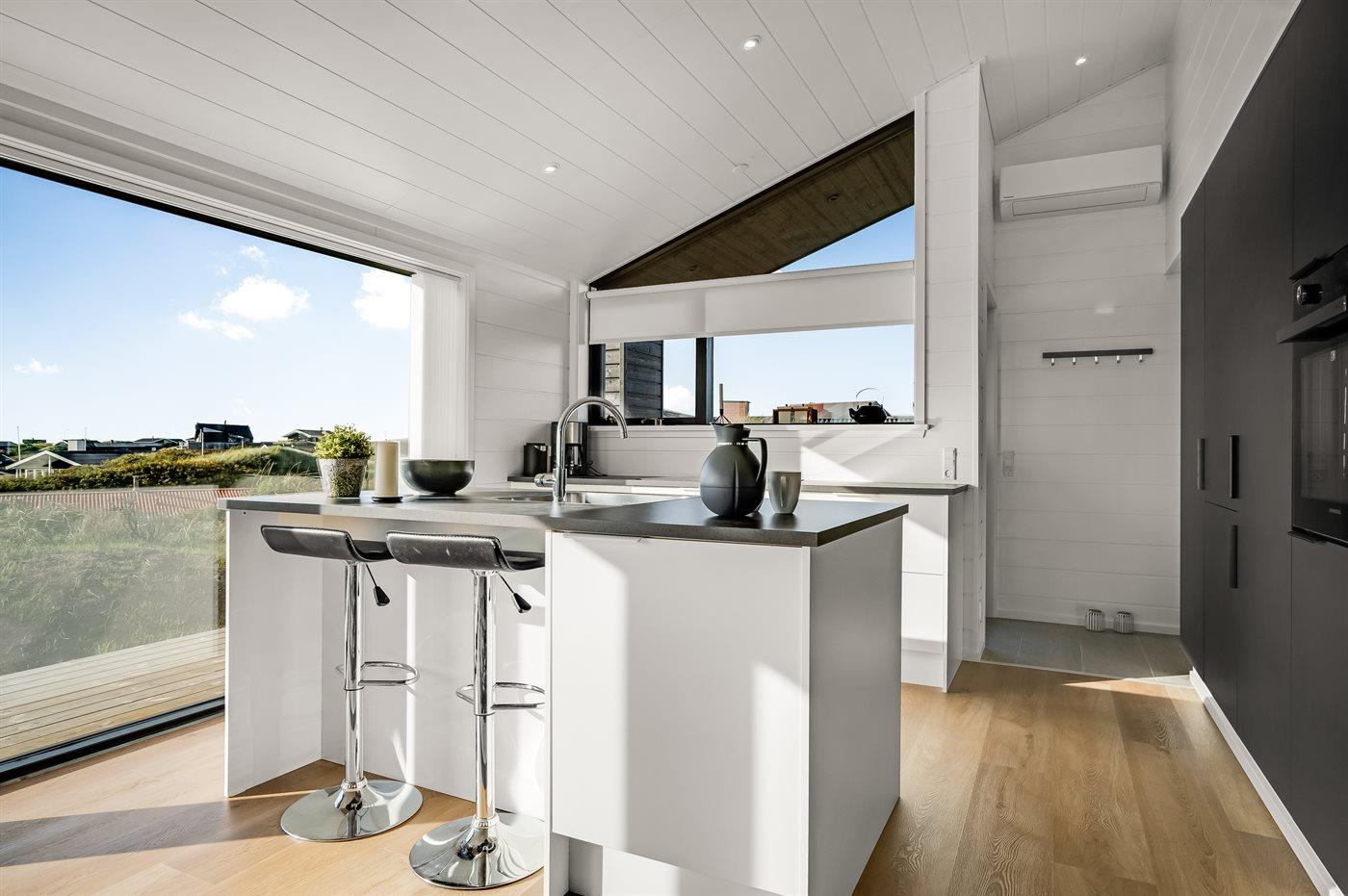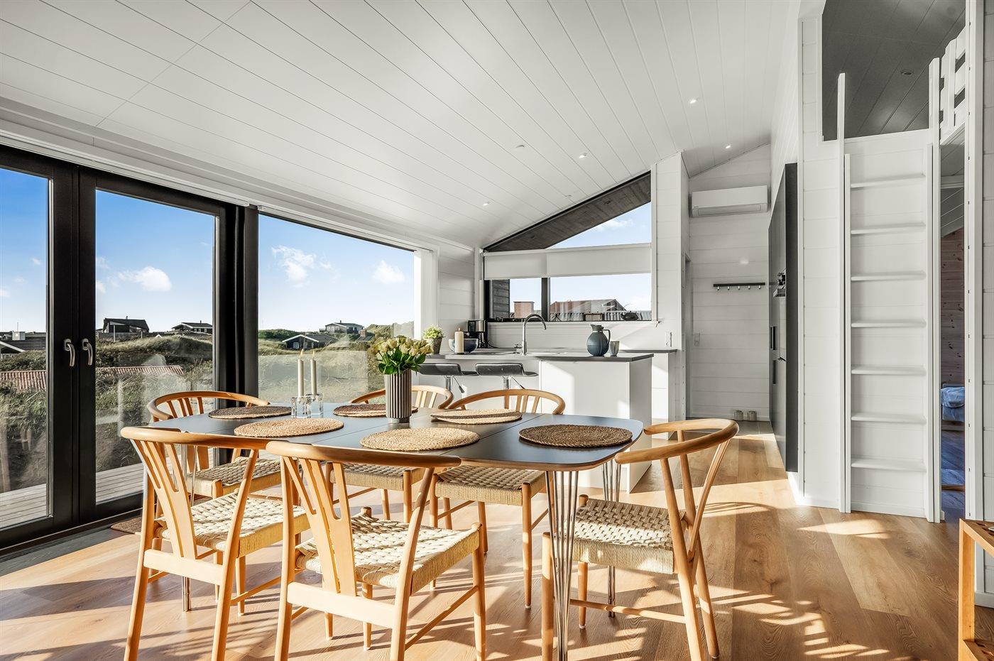 Holiday home suitable for 7 persons . The holiday home is 85 m² and is build in 2024. No pets allowed. The holiday home is equipped with 1 energy-friendly air-to-air heat pump. Floor heating in all tiled floors. The holiday home contains a combined washer and dryer. Freezer capacity of 60 litres. Further more there is 1 wood-burning stove. For the youngest ones there is 1 high chair.