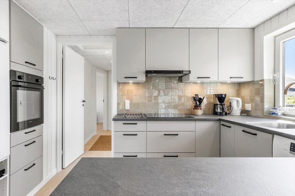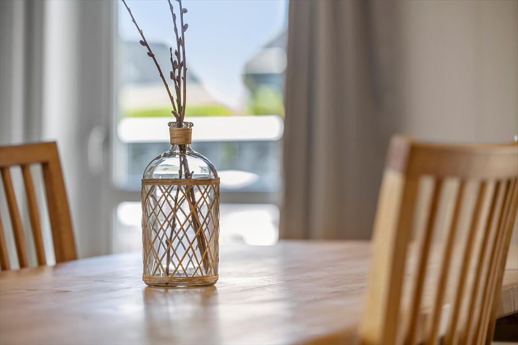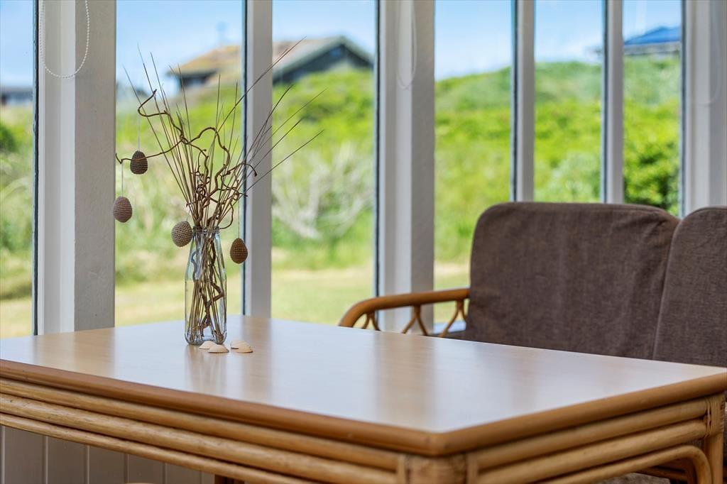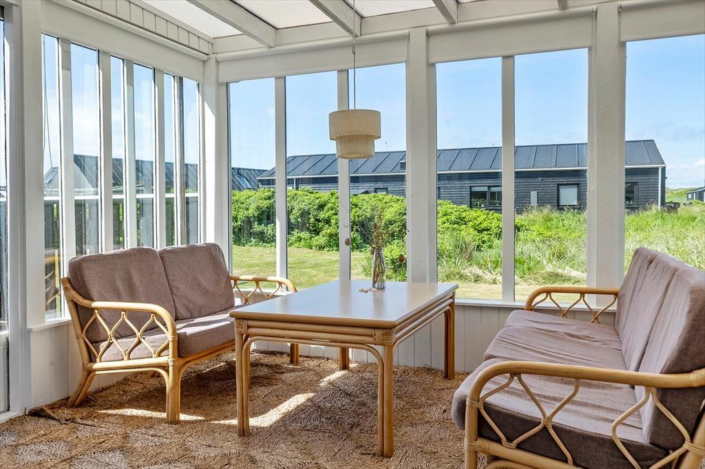 Das Ferienhaus bietet eine klassische Einrichtung mit viel Gemütlichkeit. Im Wohnzimmer, wo du dich vor dem knisternden Kaminofen entspannen kannst, gibt es ausreichend Platz, um nach einem aktiven Tag am Strand zu relaxen. Die gut ausgestattete Küche lädt zu gemeinsamen Kochabenden ein, und durch die offene Verbindung zum Wohnzimmer bleibt immer Raum für Gespräche. Das Ferienhaus verfügt über drei gute Schlafzimmer, die alle auf Komfort ausgelegt sind, sowie ein Badezimmer und ein Gäste-WC. Der Wintergarten mit Glasfenstern bietet einen fantastischen Ausblick auf die umliegende Natur, sodass du das Gefühl hast, mit der Landschaft eins zu sein – egal ob drinnen oder draußen.